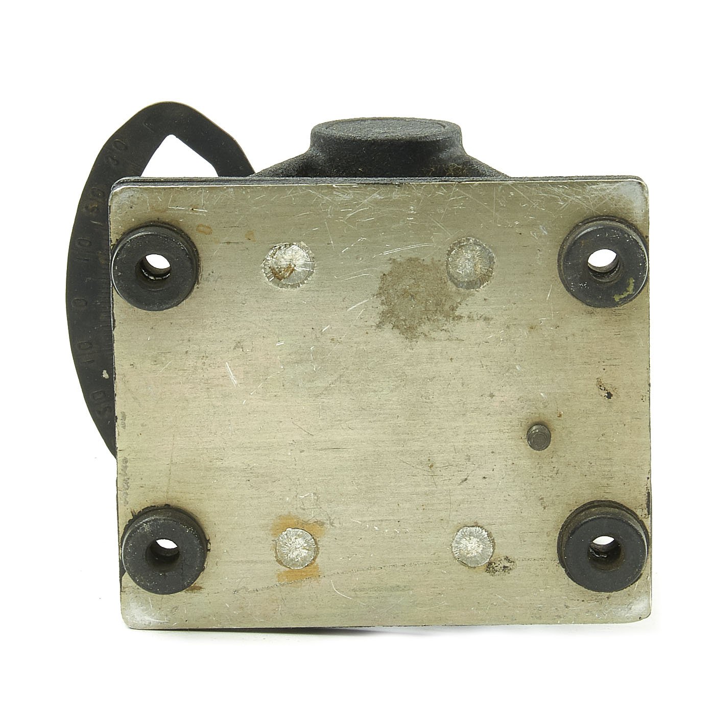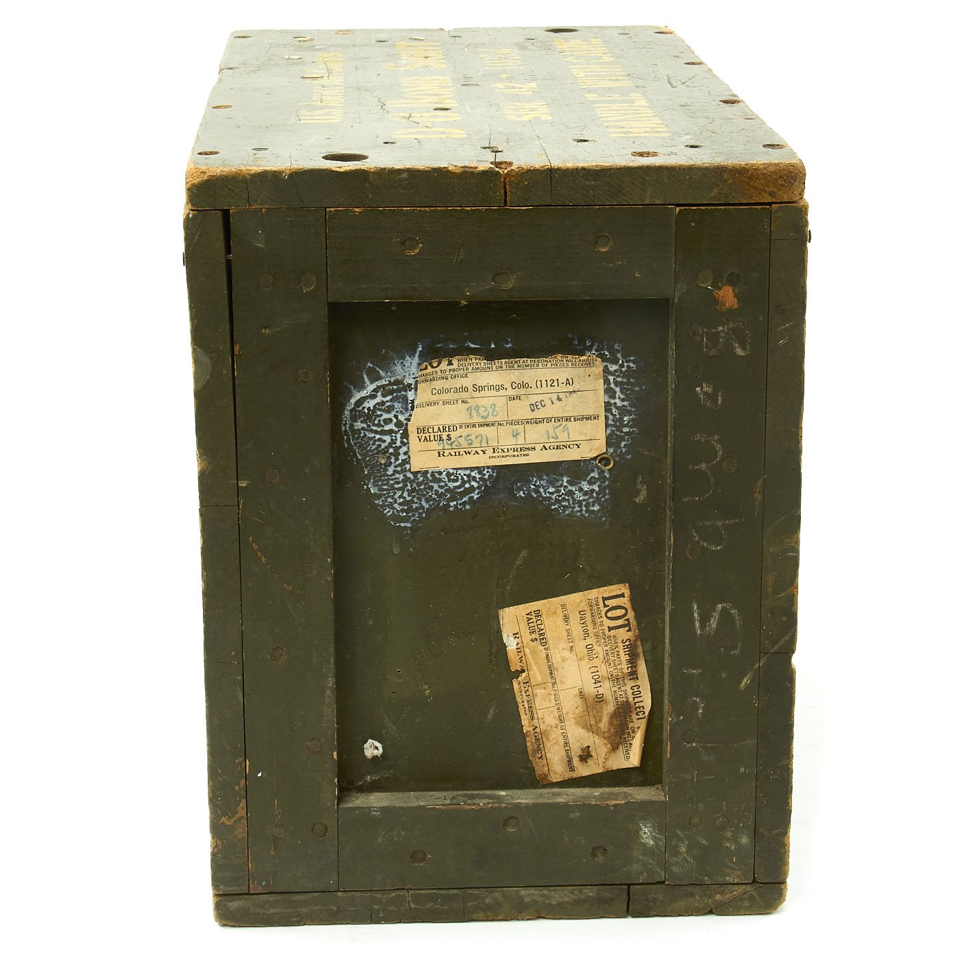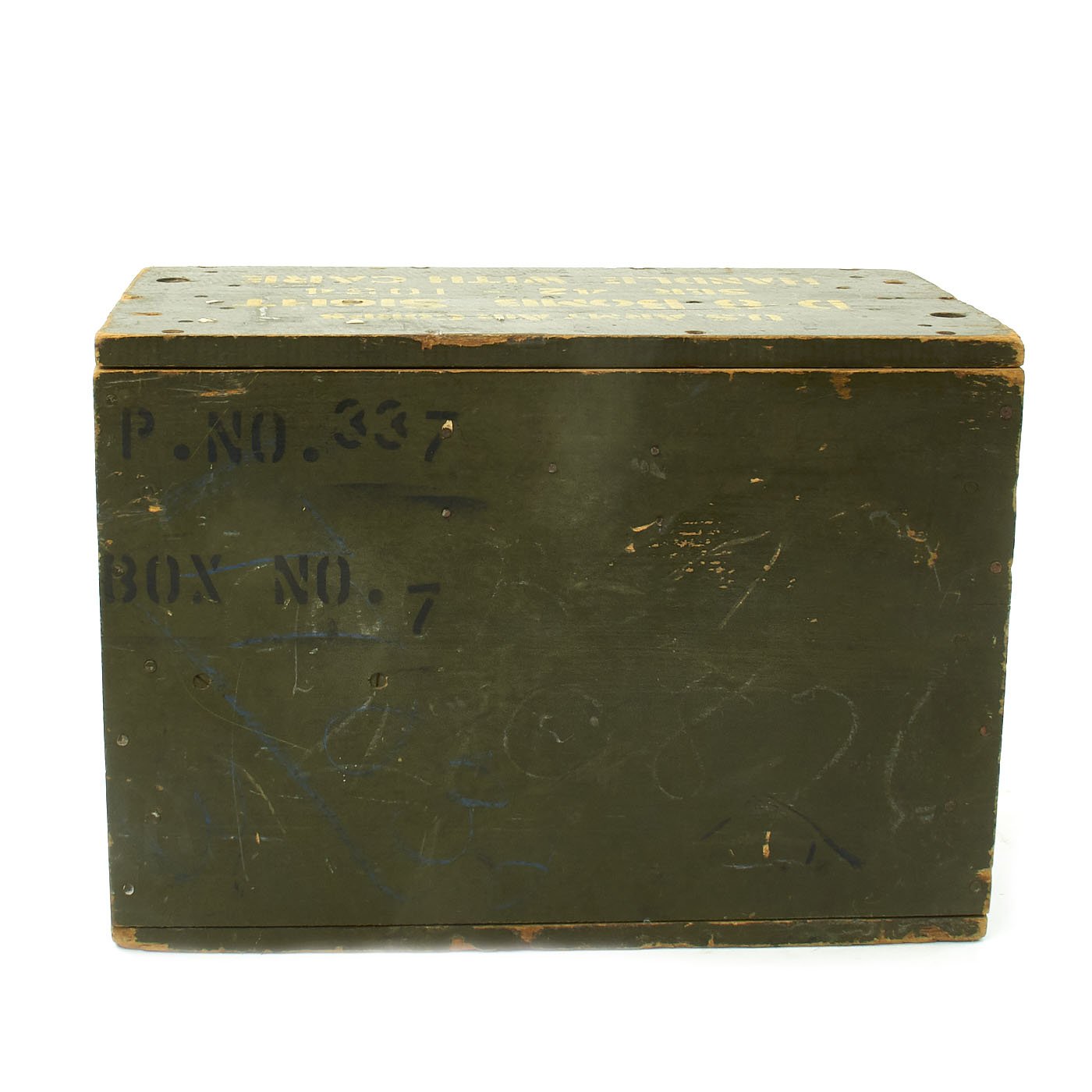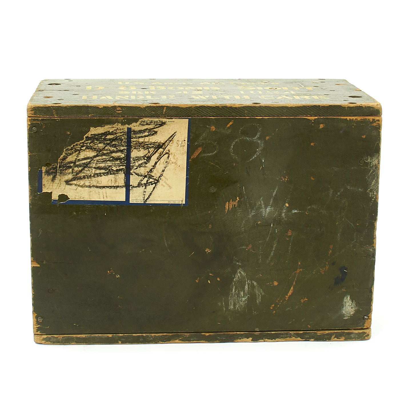 Original Item: Only One Available. This is an exceptionally rare complete and unissued Estoppey D-8 bombsight in transit chest. Only approximately 9,000 Estoppey bombsights were ever produced. The Estoppey bombsight, designed by Georges Estoppey, used a clock timer mechanism to compute the drop angle. This was a much simpler and cheaper device than the Norden or Sperry bomb sights. There was a severe shortage of Norden bombsights just before WWII and in the early years, so Estoppeys were called into heavy production beginning in 1938. The bombardiers would wind the timer up with a crank, set the time of fall information into the front dial, then rotate the crank in the opposite direction to activate the timer. He would then look from the top wire down to the front wire, and rotate the crank so as to keep the front wire on the target. When the timer ran out, the crank was locked out, fixing the wire position. He would then shift to looking from the top wire down to the rear wire. When the target came into view, he would release the bomb. Here is a video of another operational Estoppey D-8 Bombsight: