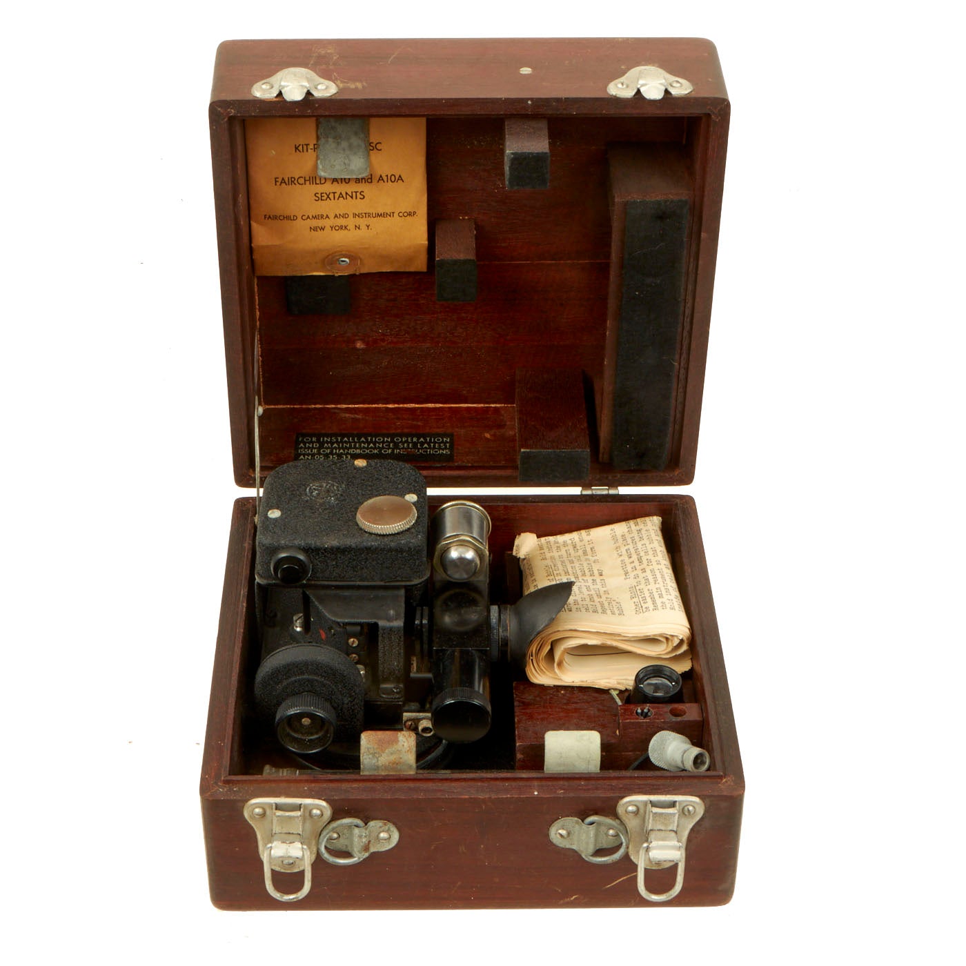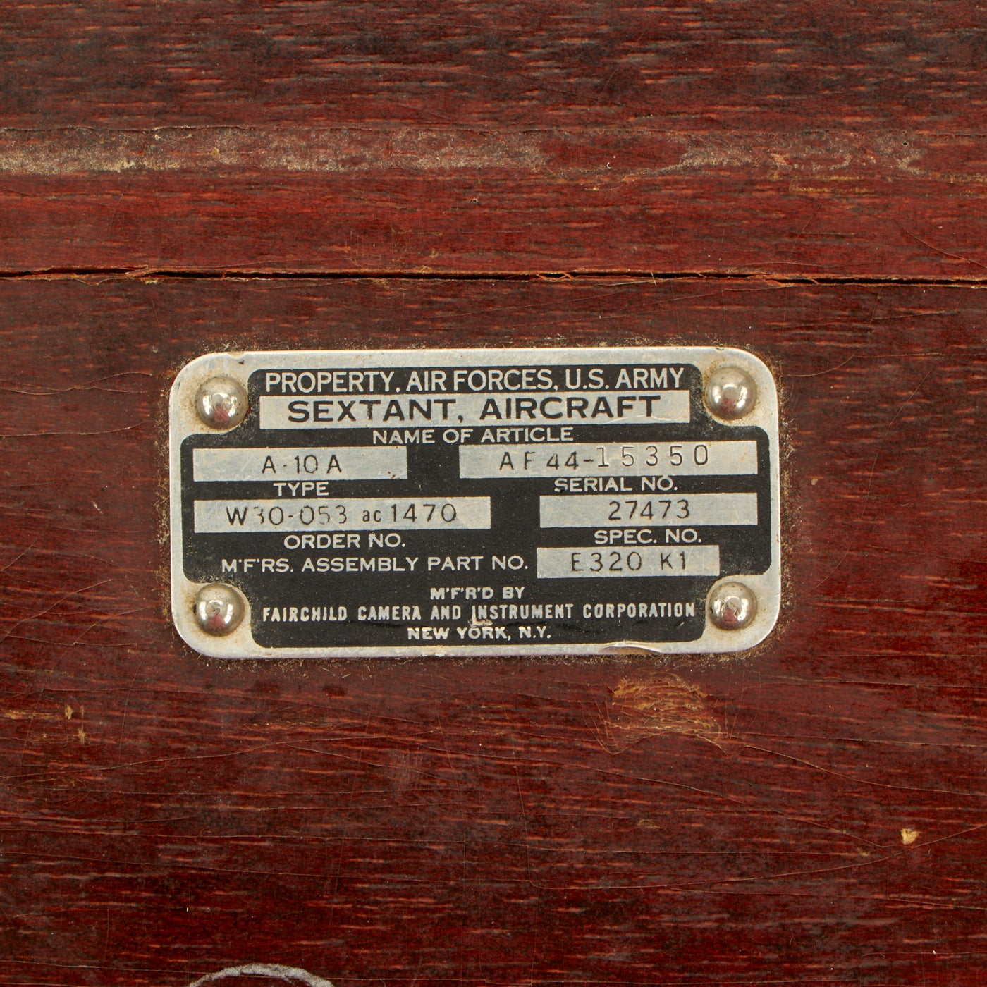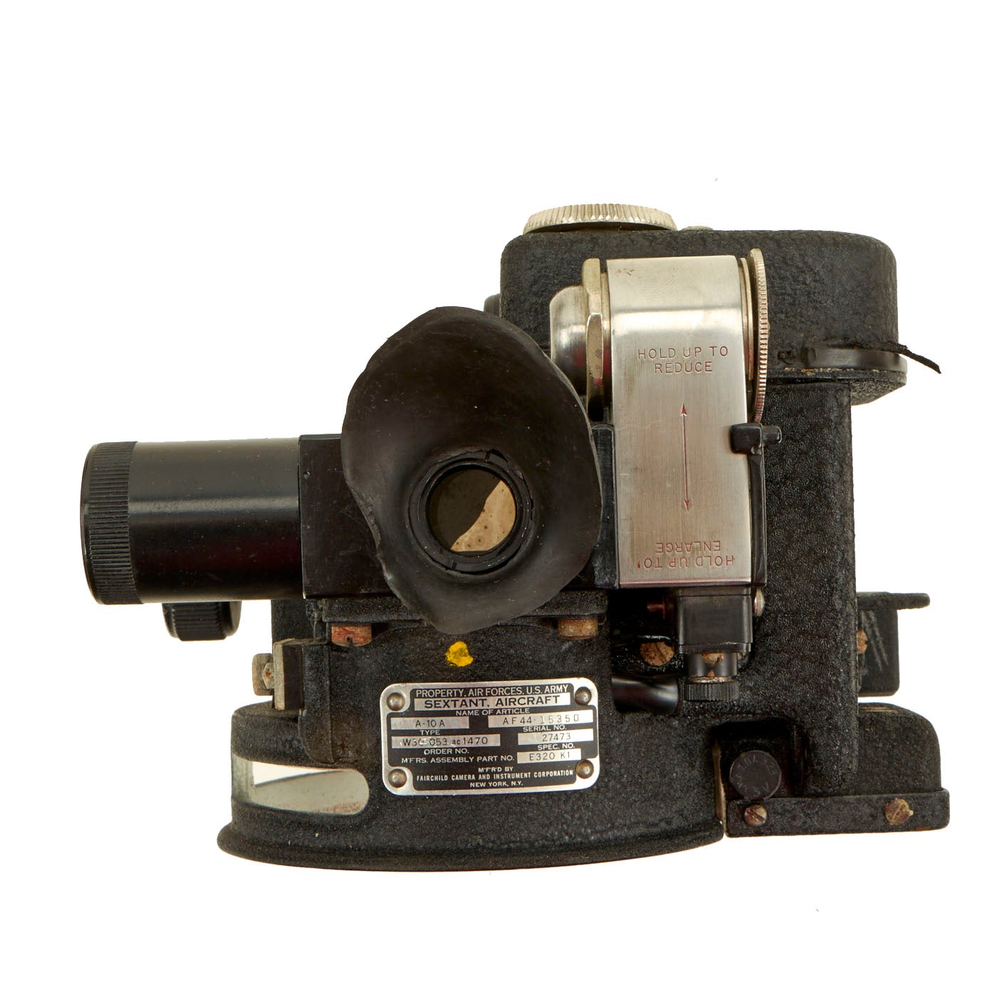 Original Item: Only One Available. WWII US Army Air Force A10 Aircraft Sextant. This WWII Fairchild USAAF A-10 Sextant was issued during World War two to personnel from the U.S. Army Air Forces (USAAF). It has an original data plate, which can be clearly read.