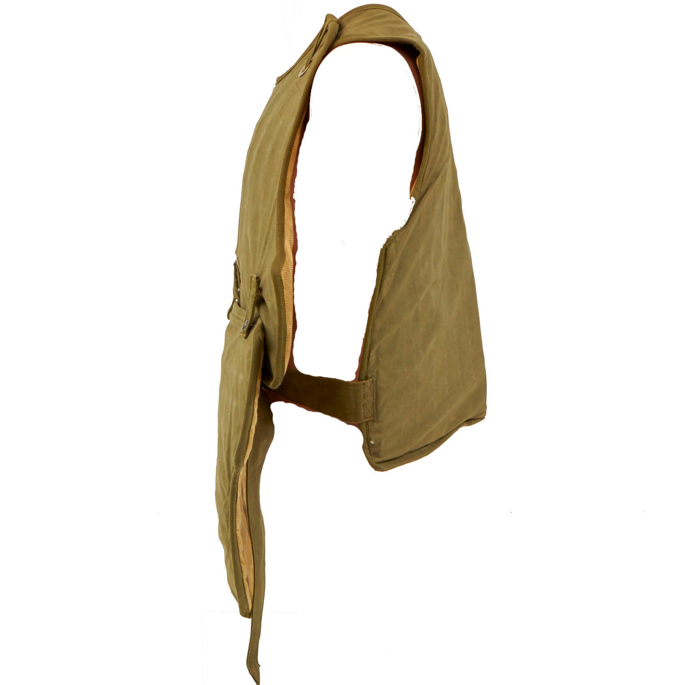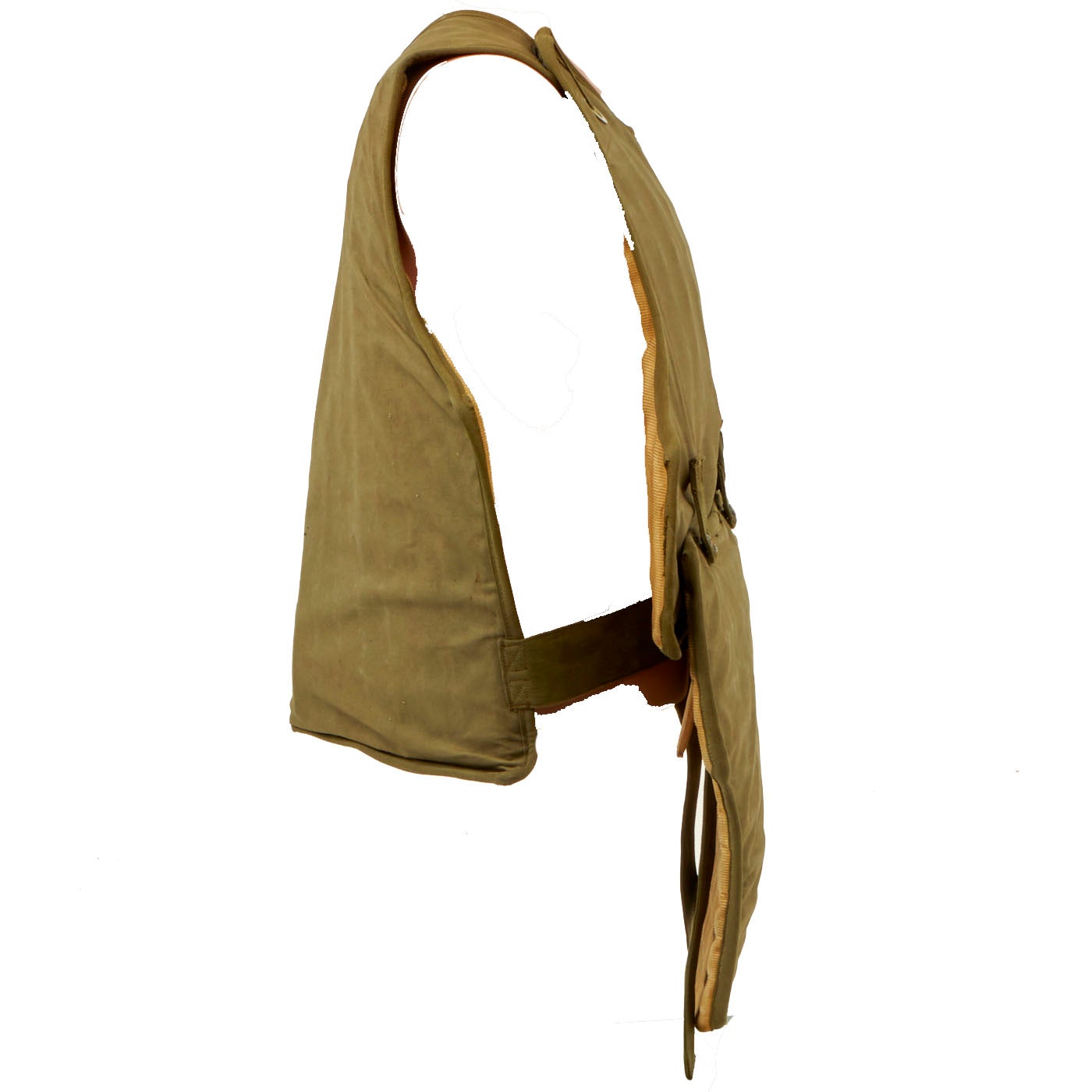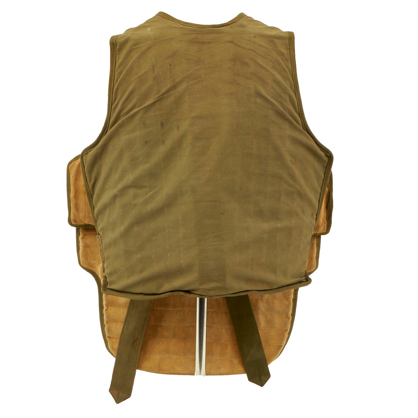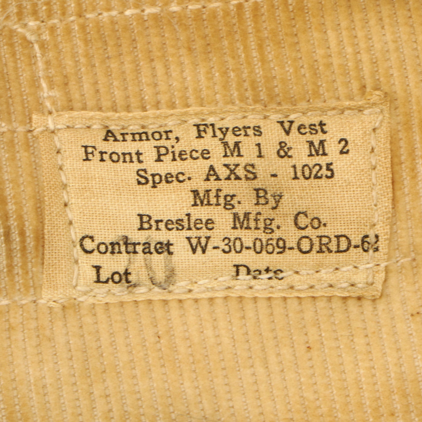 This is a genuine, very good condition mostly complete USAAF Armor, Flyer's Vest, M1 & M2 complete with data labels, though they are faded. This flak vest is made up of both armored front and back pieces, so it was intended for a crewman, and not a pilot. The condition is very good, though there is a bit of paint missing on the snaps. It appears as if all of the snaps, buckles and belts are present and they are complete and without damage. As stated this is a very cumbersome, bulky and heavy piece of equipment. The following is the information for each piece of the jacket: