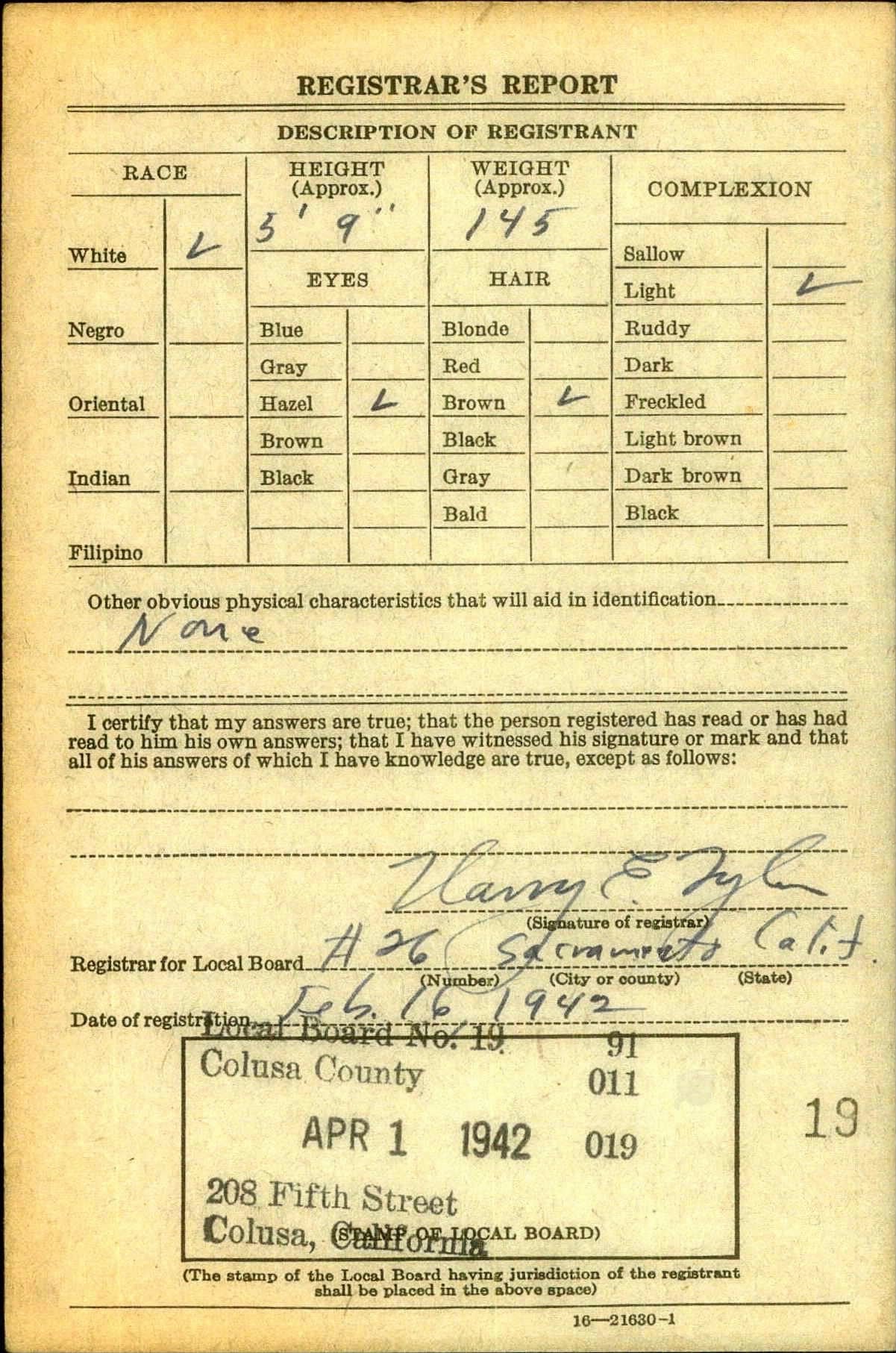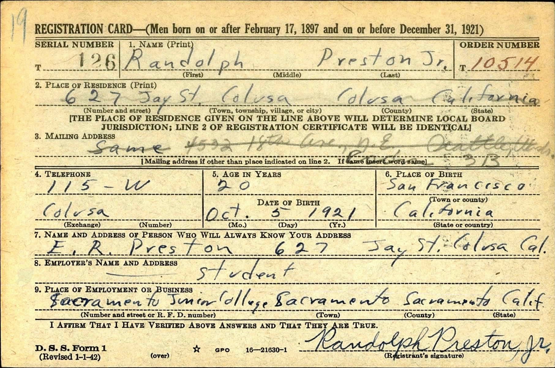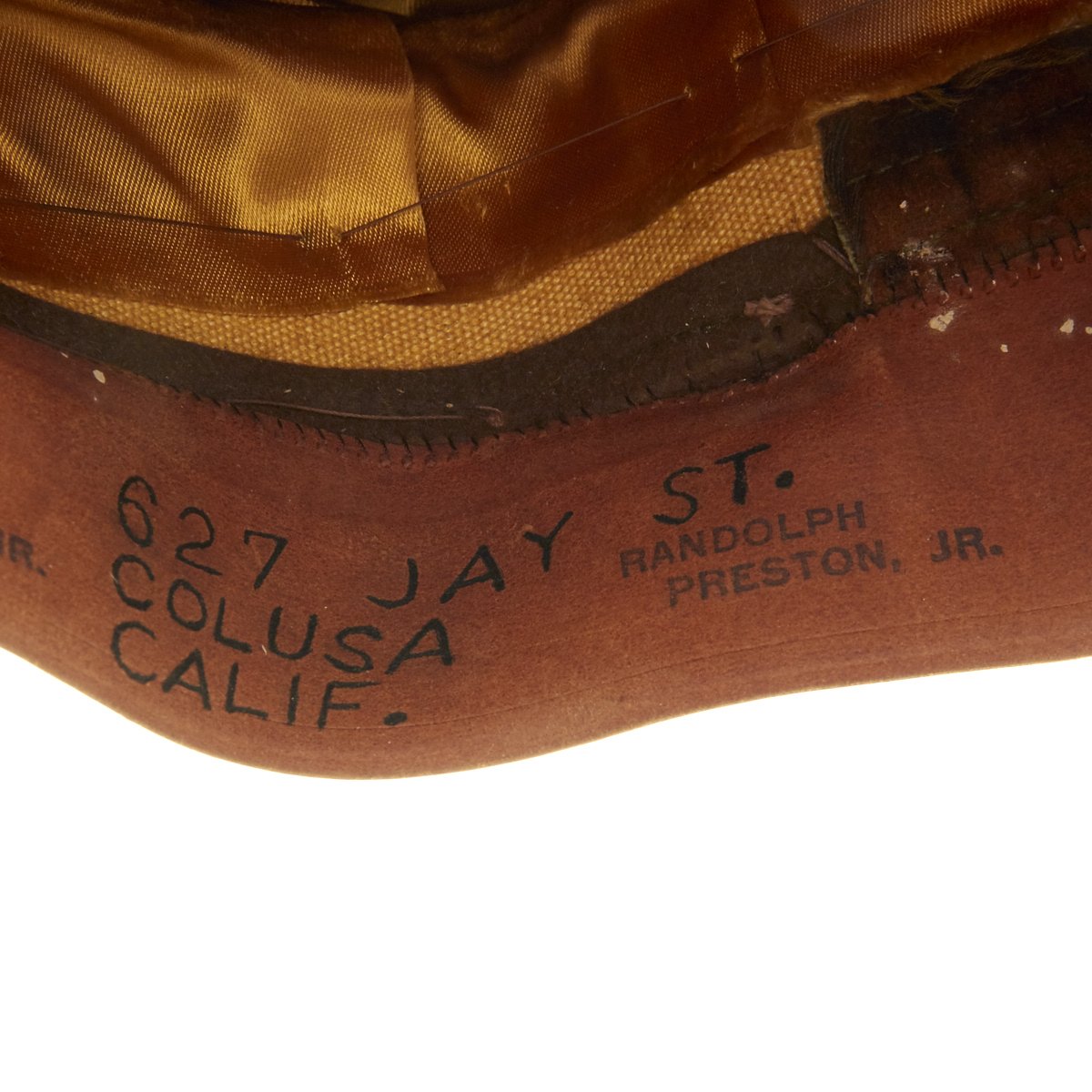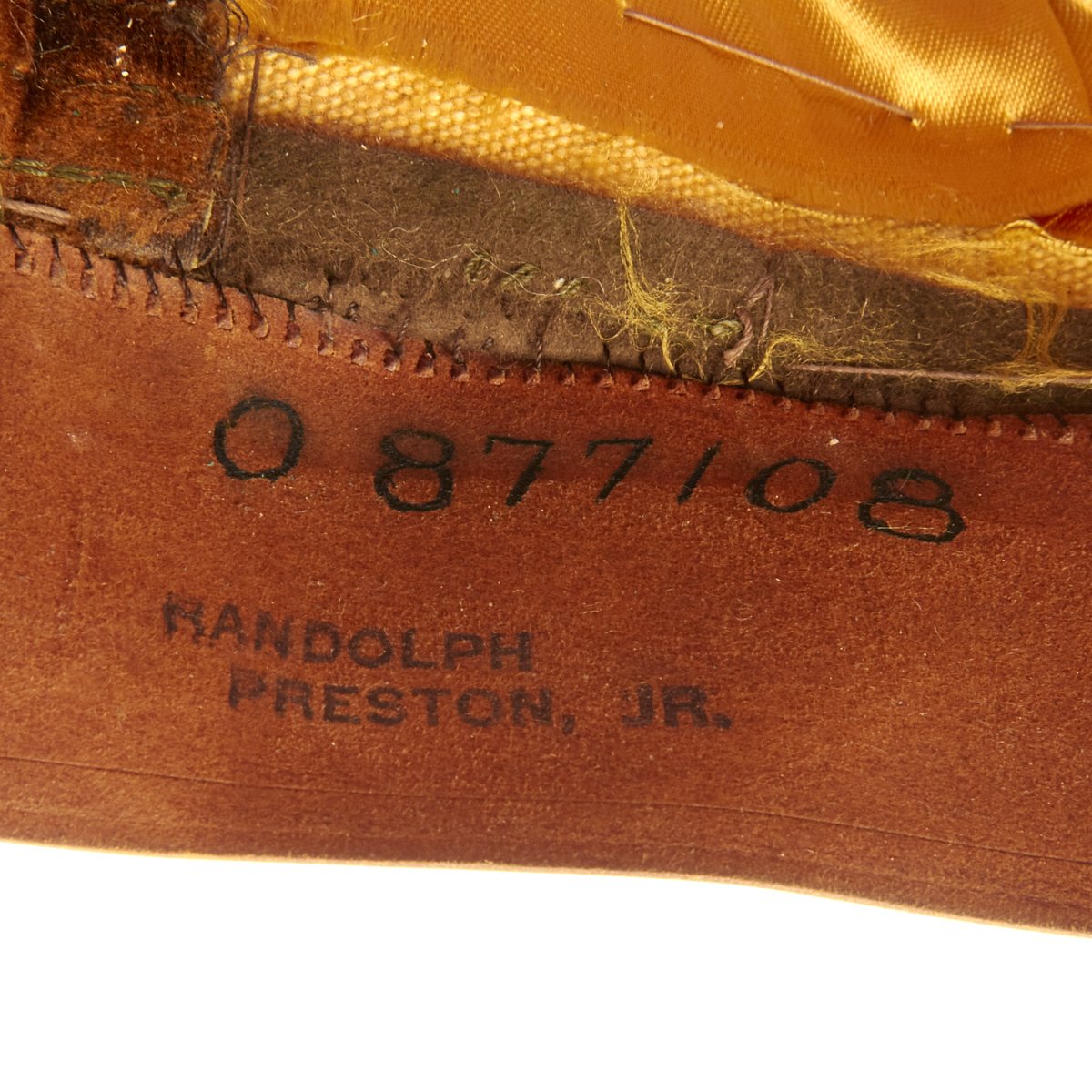 The cap is of the highest quality and in very good condition with the iconic crush shape. On and underneath the sweat band are multiple ink stamps that read Randolph Preston Jr along with his address which matches his draft registration card (copy included).