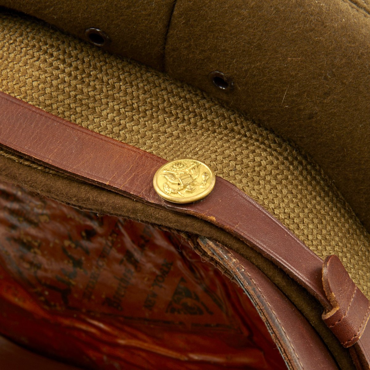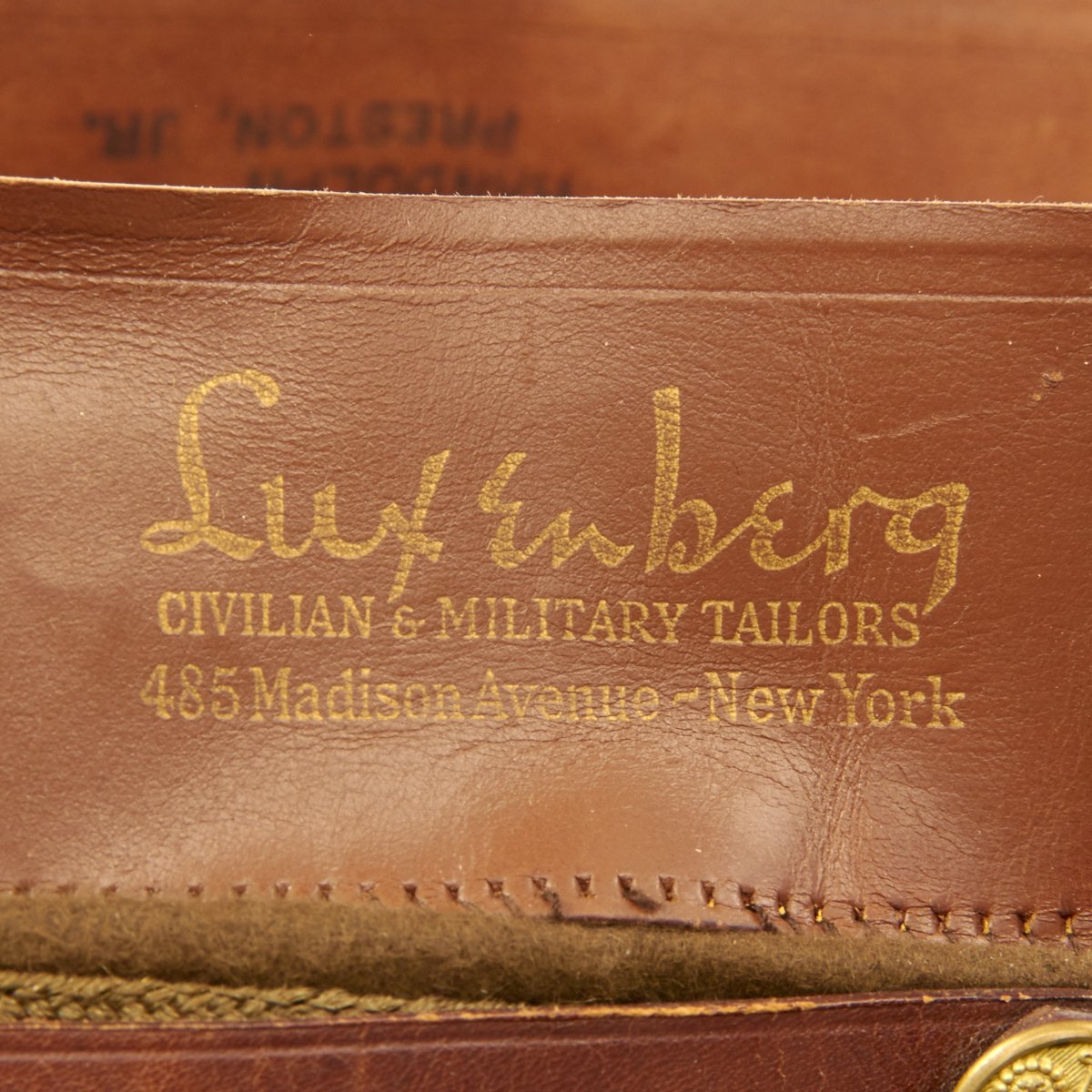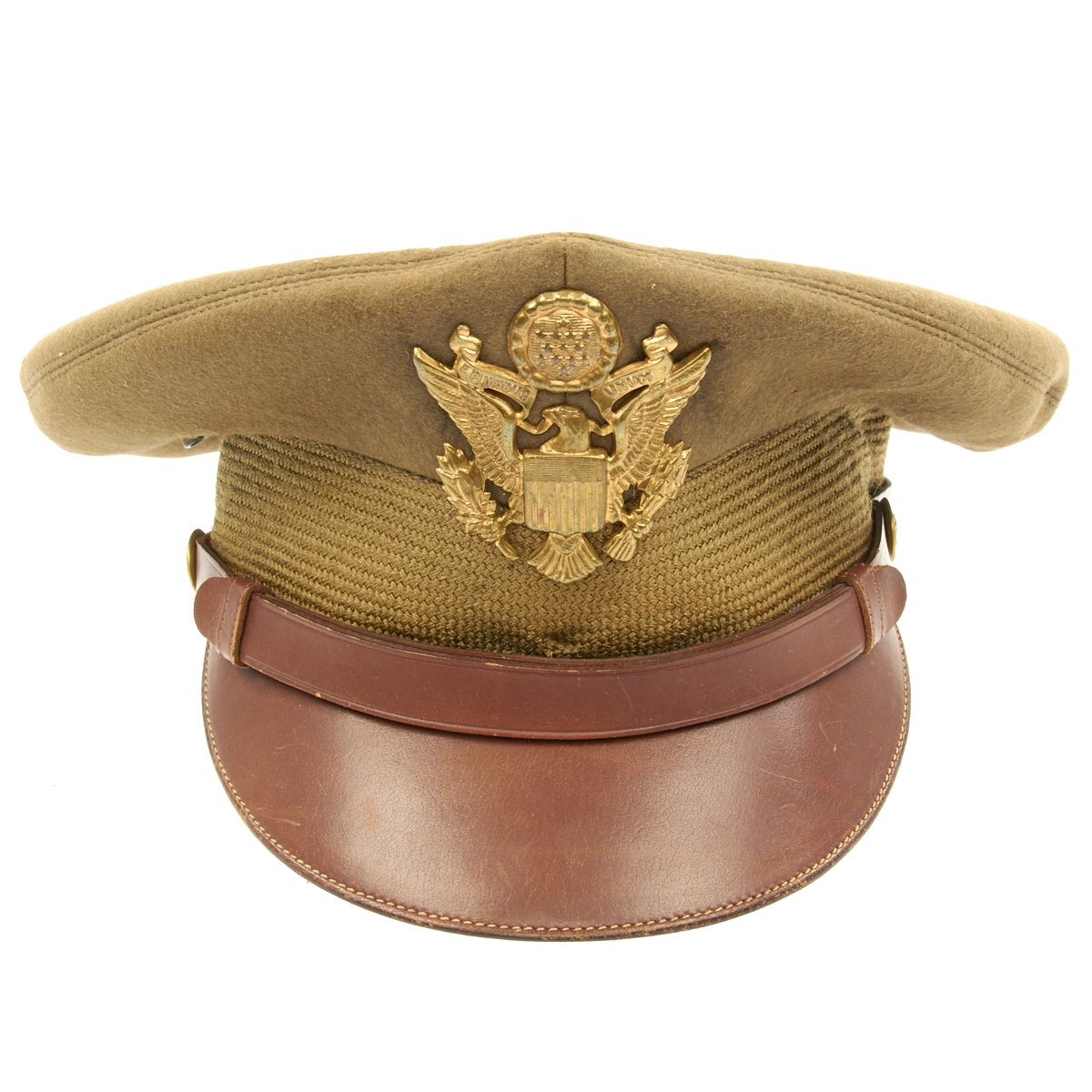 This visor cap, named to him in multiple locations, in winter green issue, was manufactured by Luxenberg Military Tailors located at 485 Madison Avenue, New York.