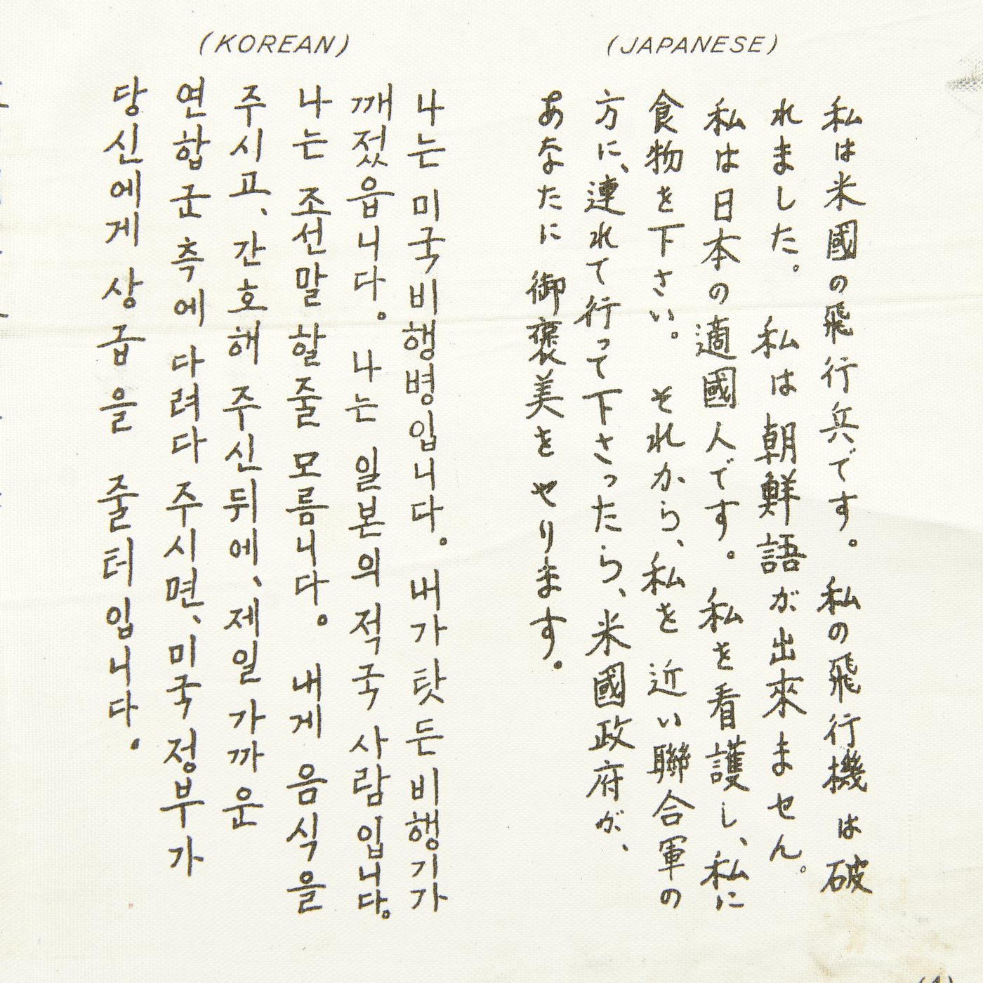 I am an American airman. My plane is destroyed. I cannot speak your language. I am an enemy of the Japanese. Please give me food and take me to the nearest Allied military post. You will be rewarded.