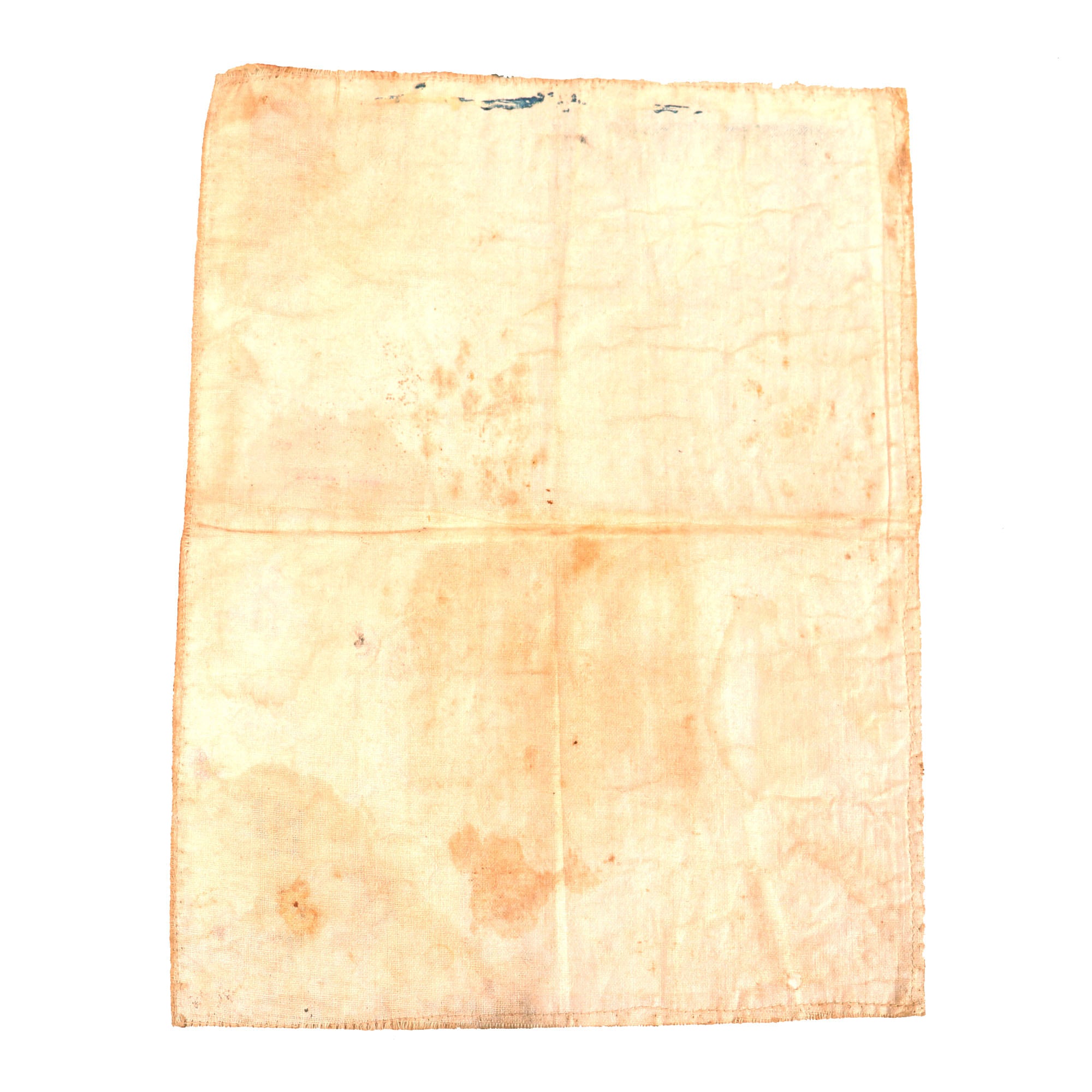 The blood chit consists of a rectangular piece of fabric bearing the Chinese National Flag printed with Chinese Characters. Measuring around 10 ¾ inches by 8 inches, it was designed to be stitched on the back or inside lining of a U.S. Aviator flight jacket. Despite its age, the chit still bears visible signs of use, such as staining and hard fold lines, which give us a glimpse into its rich history. Sadly, the chit is in a very worn condition with some tearing damage, making it extremely fragile. Despite its delicate state, it remains a valuable reminder of the sacrifices made by the brave pilots who once wore it.