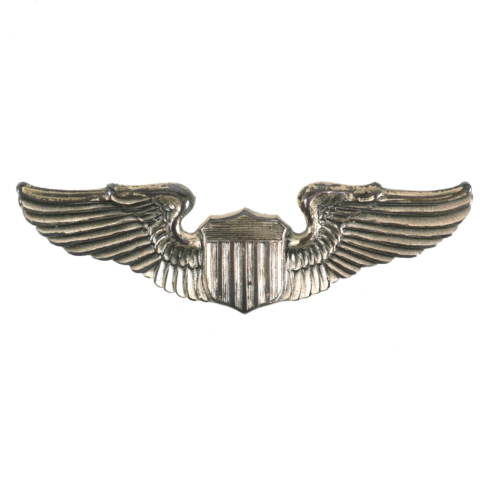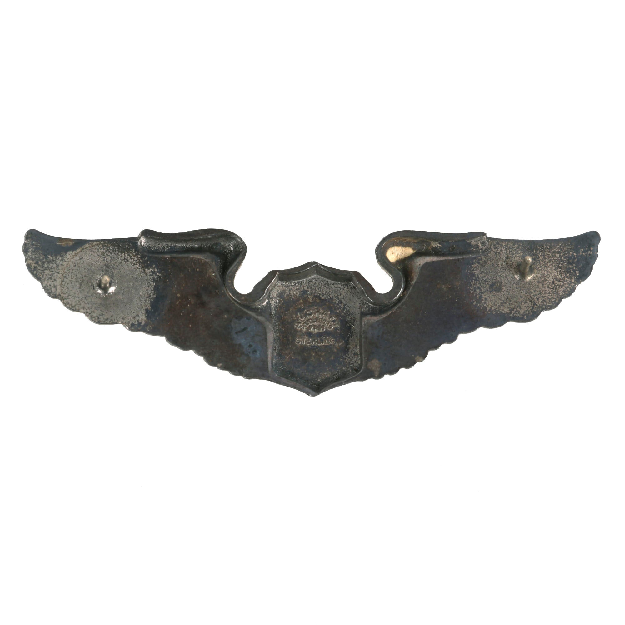The collection consists of several items that are of great interest to military history enthusiasts and collectors. Included in the set is a Flighter brand crusher cap, which has been well-worn and appears to have seen a lot of action. There are also a pair of Sterling Pilot Wings, which appear to be in excellent condition, and a worn, stained Blood Chit as well as (2) shoulder sleeve insignia.