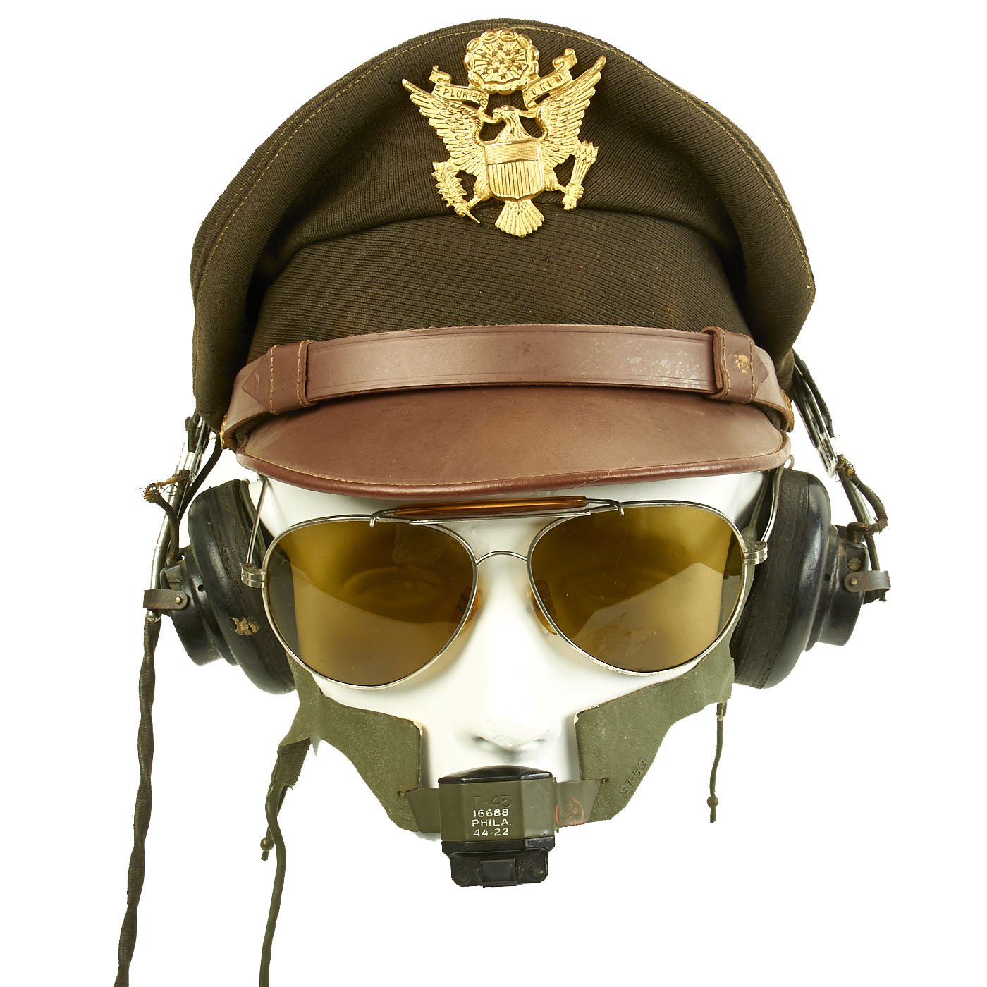 Original Items: One-of-a-kind set. This entire set was purchased from one collection and was together on display. We liked the way it looked that we decided not to break it up into individual pieces and sell it as a WWII pilot's headgear set. The set consists of the following items: