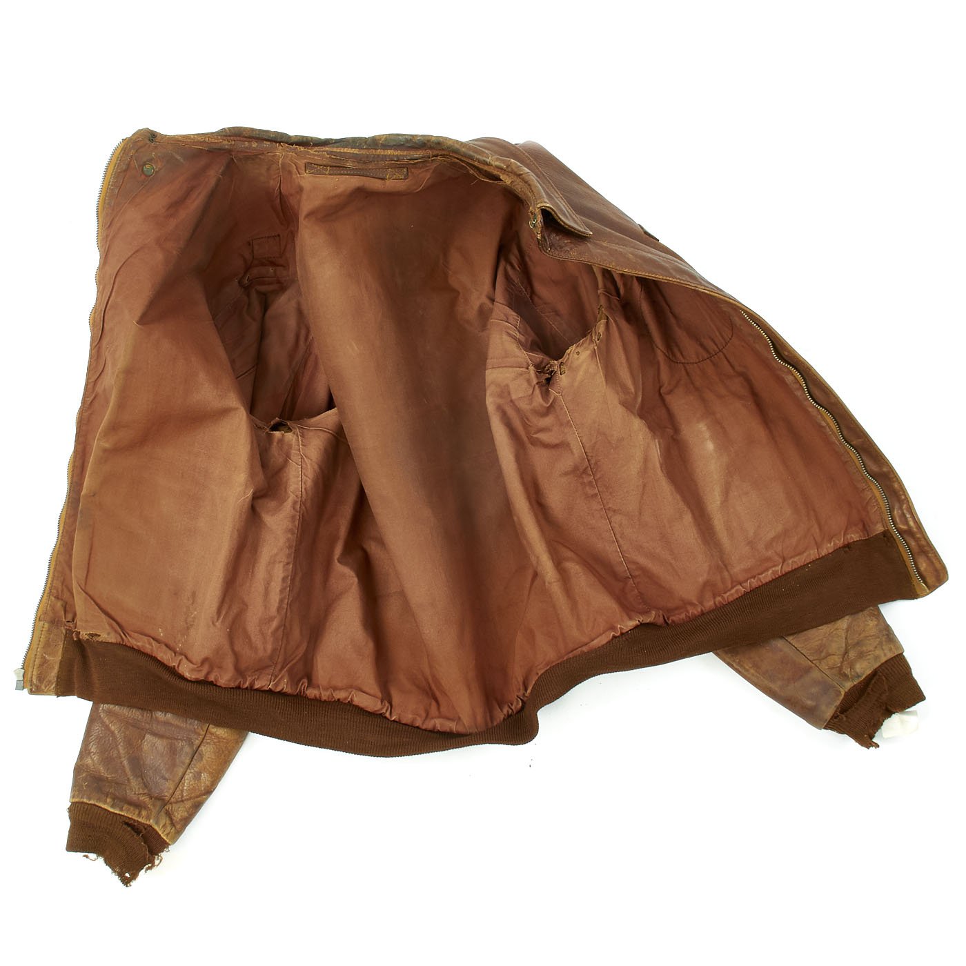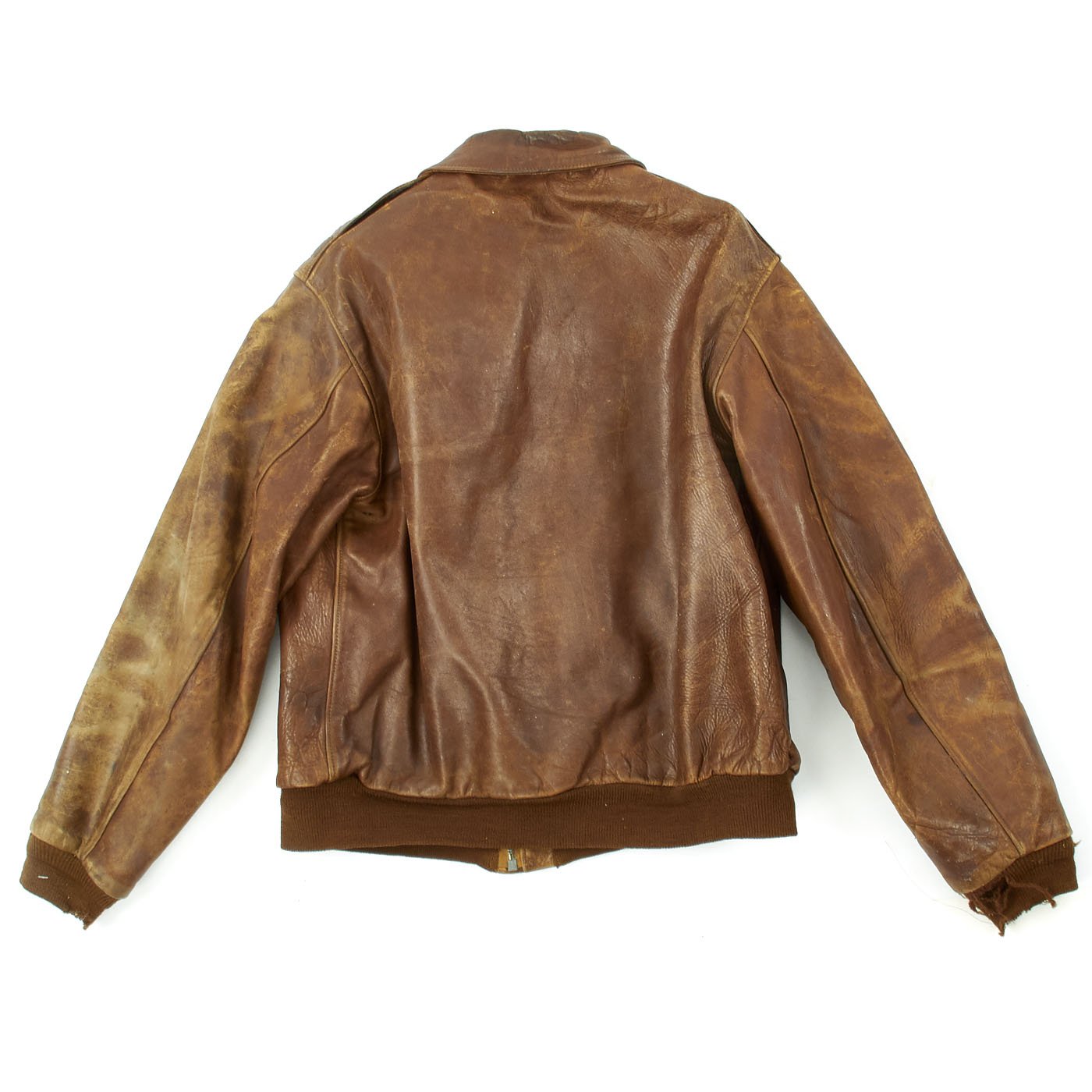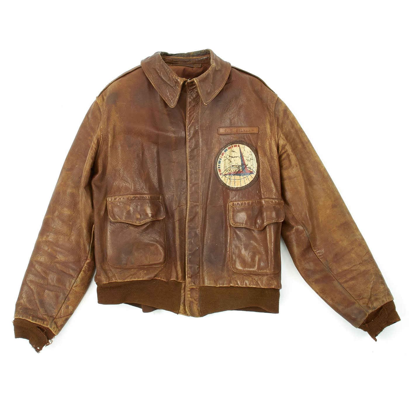 - Original U.S. WWII USAAF Type A-2 flight jacket is named to C.U. Culmer branded on the leather name tag on the left chest above a hand painted leather Air Transport Command insignia patch. The jacket is in very good condition with supple leather and in approximate size US 42. The original data label is gone but the liner, knit cuffs and knit waistband are all original.