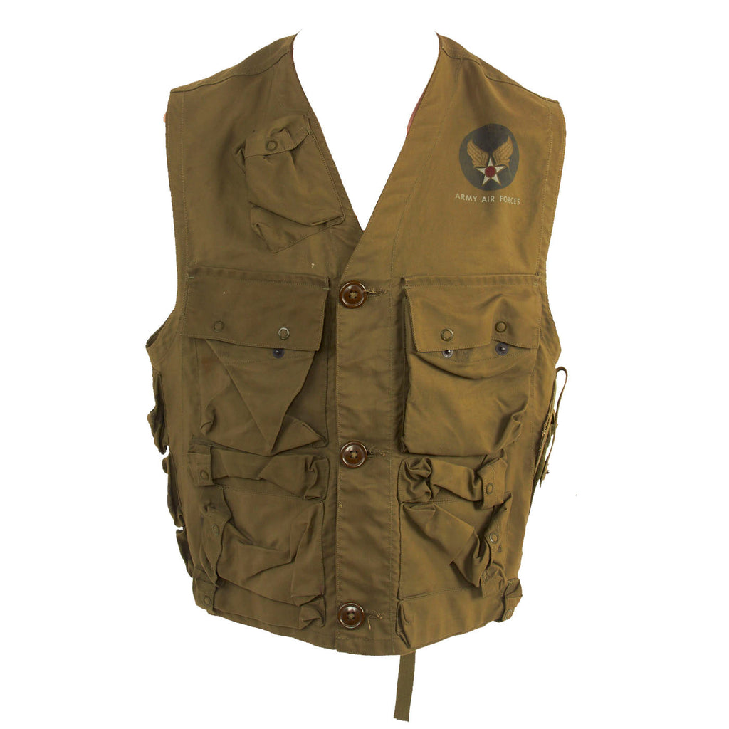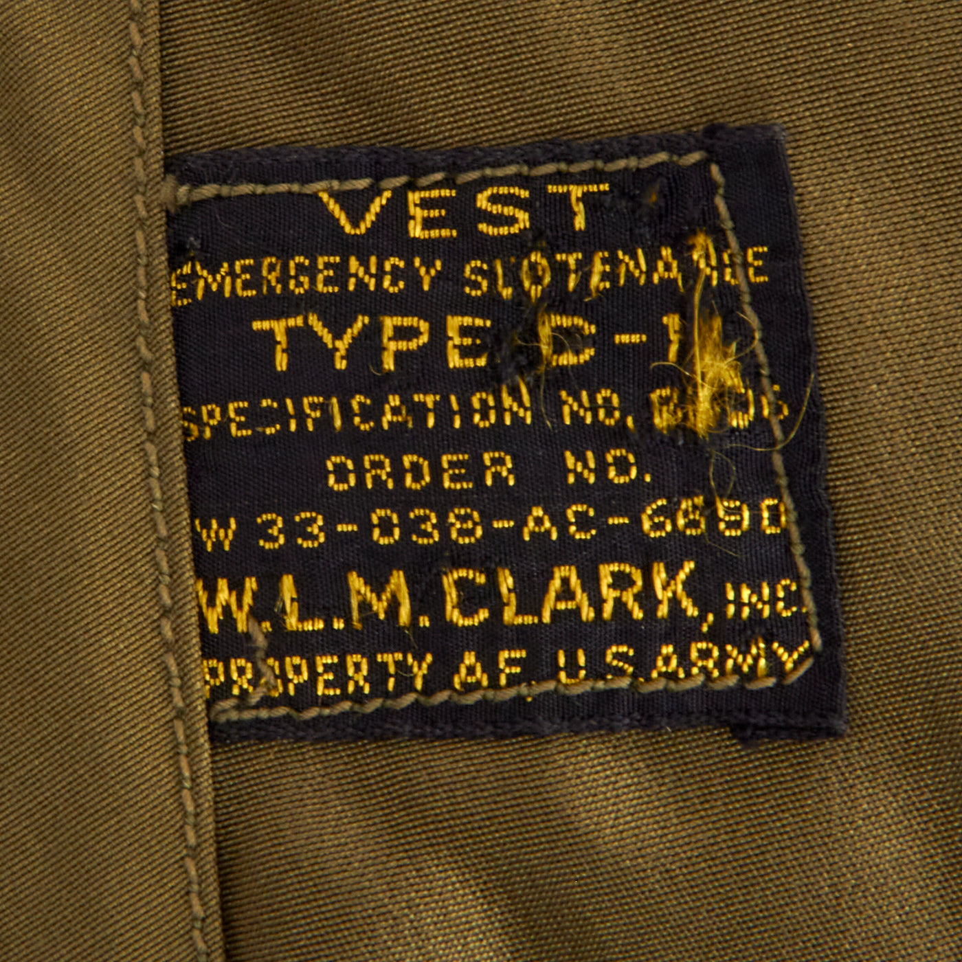 Original Item: Only One Available. The C1 survival vest was developed during World War two for use by the Army Airforce. The C1 vest has seen service by both Air force and navy personnel from World War Two through Korea and to a limited extent in Vietnam. The vest was made of dark olive colored green tackle twill and weighed 11 pounds when complete with survival contents. There were three large buttons on the front for closure. The vest was used alone and in conjunction with various seat and back pad survival kits which were also initially developed during World War Two. The C1 vest was designed for use in all parts of the word, however, the C1 proved better suited to the tropical and Arctic regions.
