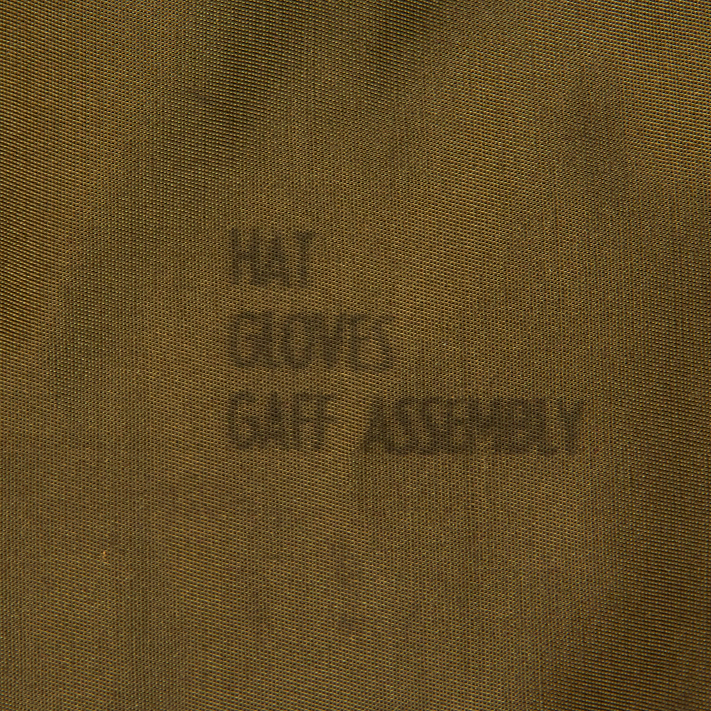 All components are carried in the specifically labeled and numbered outside and inside pockets. A leather and canvas holster with one securing strap is located on the left side of the vest for a standard issue .45 calibre automatic pistol.