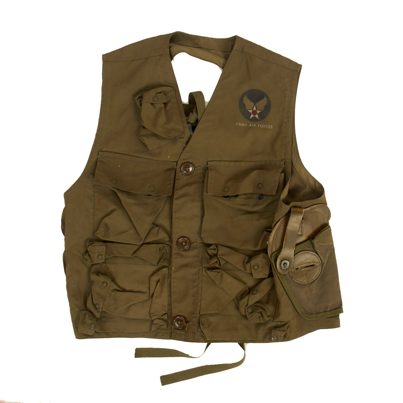 This genuine U.S. Army Air Force Type C-1 Emergency Sustenance Vest with .45 cal 1911 Pistol Holster is offered in mint unissued condition.