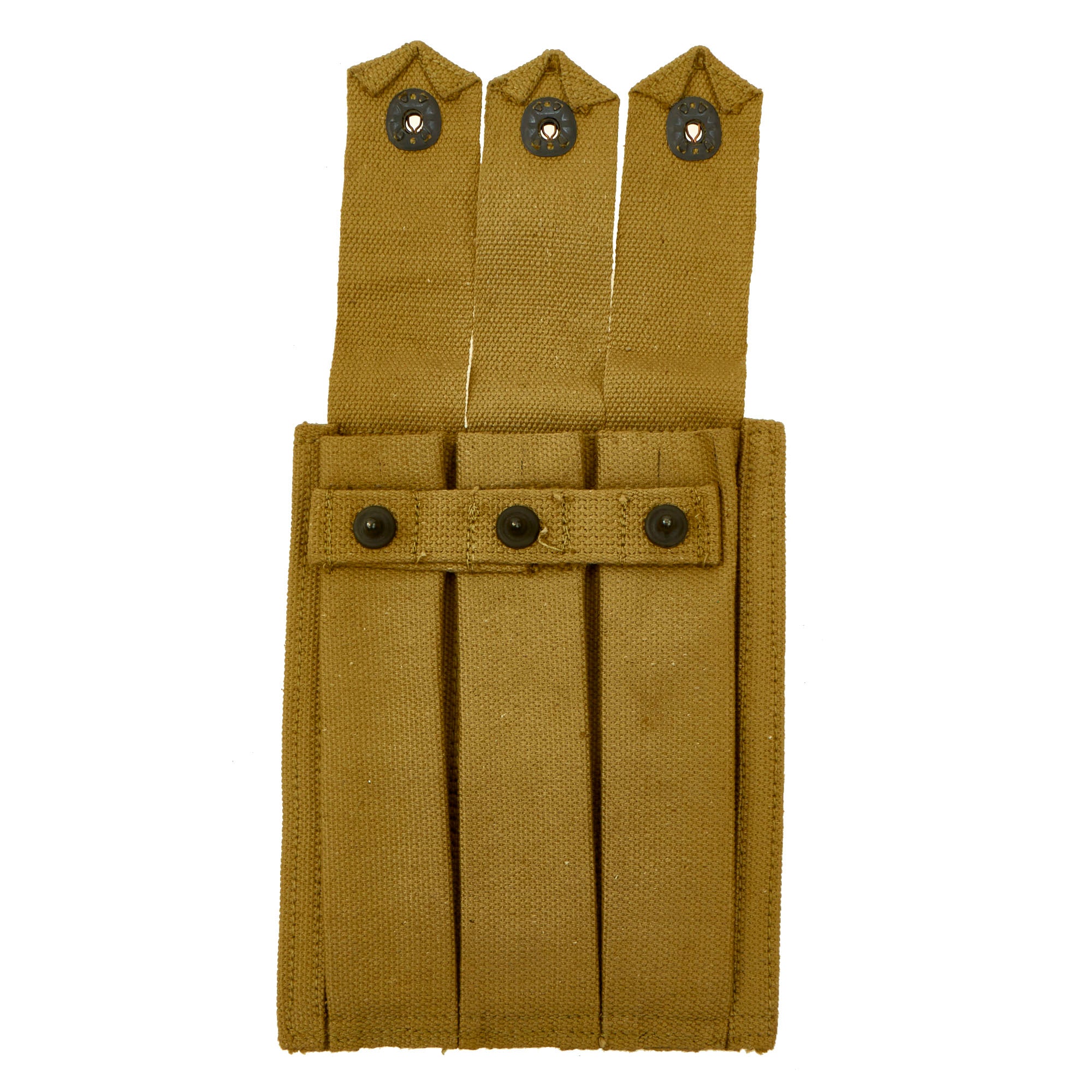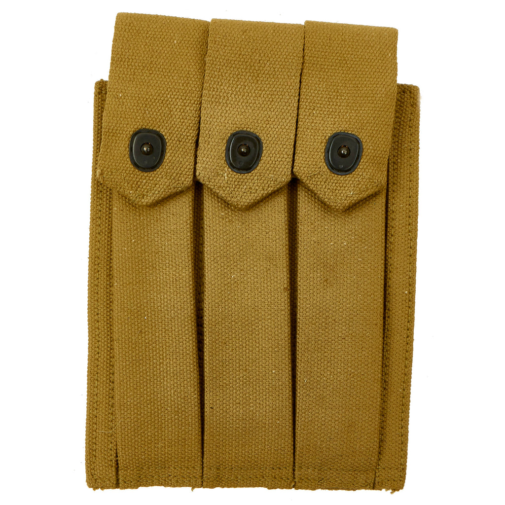 Original Item: Only One Available. This is a lovely original 1944 U.S.M.C. Thompson .45 Submachine Gun 30 round Magazine Pouch. The Thompson was used in World War II in the hands of Allied troops as a weapon for scouts, non-commissioned officers (corporal, sergeant, and higher), and patrol leaders, as well as commissioned officers, tank crewmen, and soldiers performing raids on enemy positions.