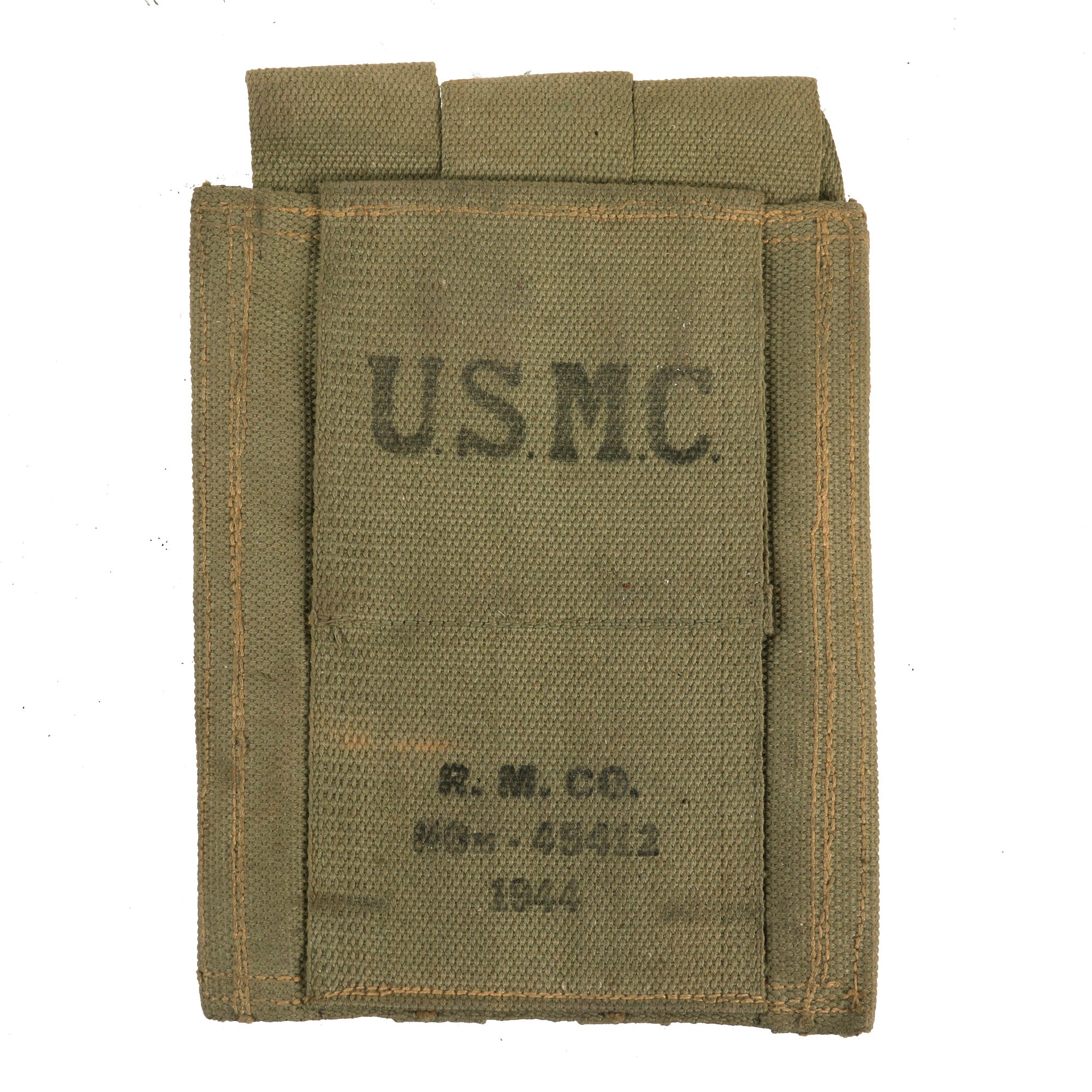 Genuine U.S. Marine Corps WWII dated material has become very hard to find on the market today. This pouch is in very nice condition, with only a bit of wear and staining from the decades from storage. This will only appreciate in value over the years to come.