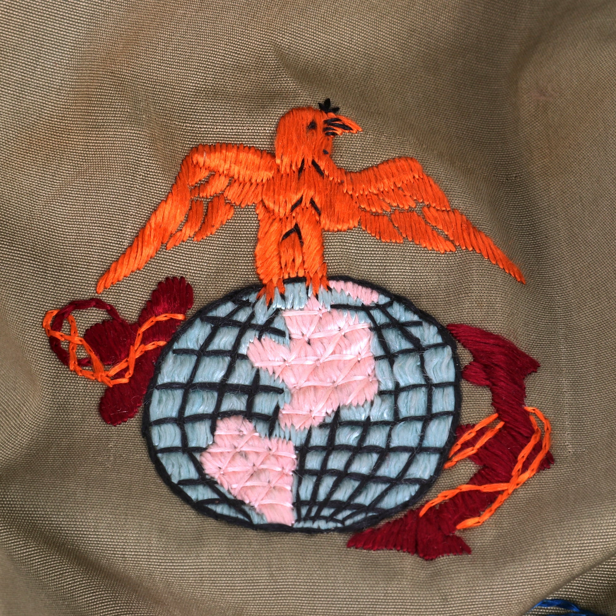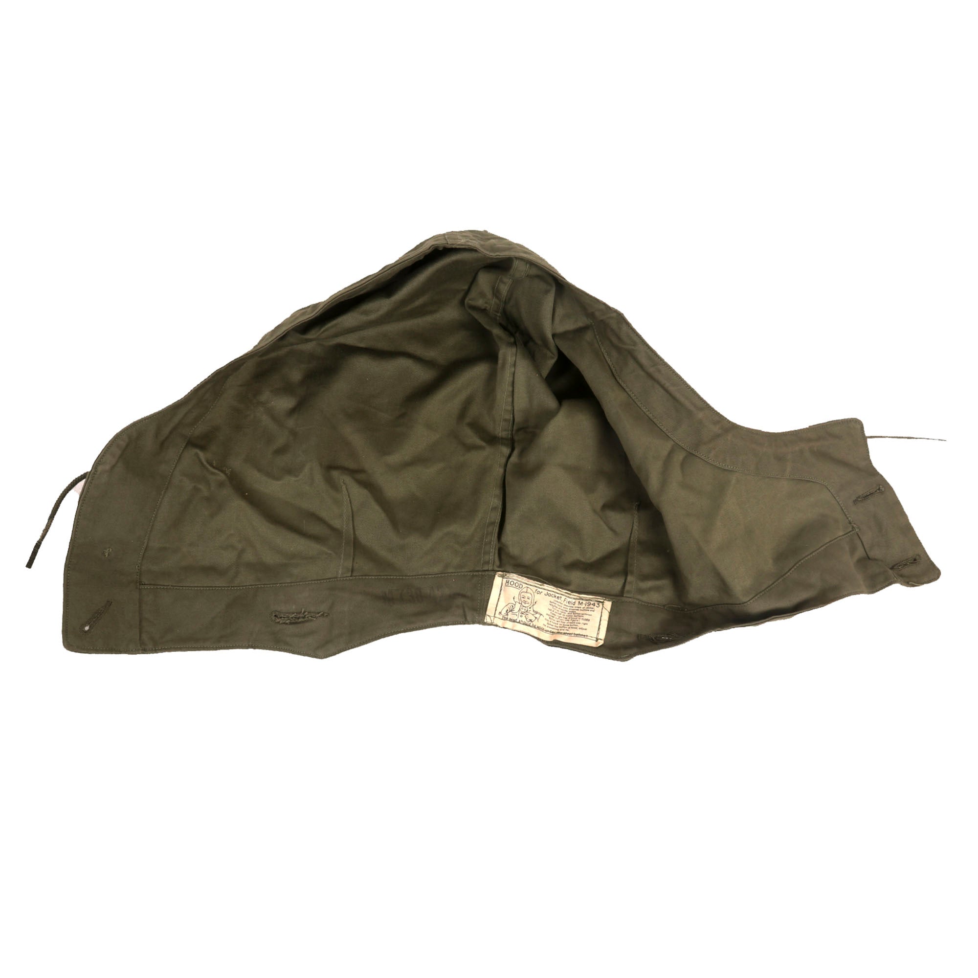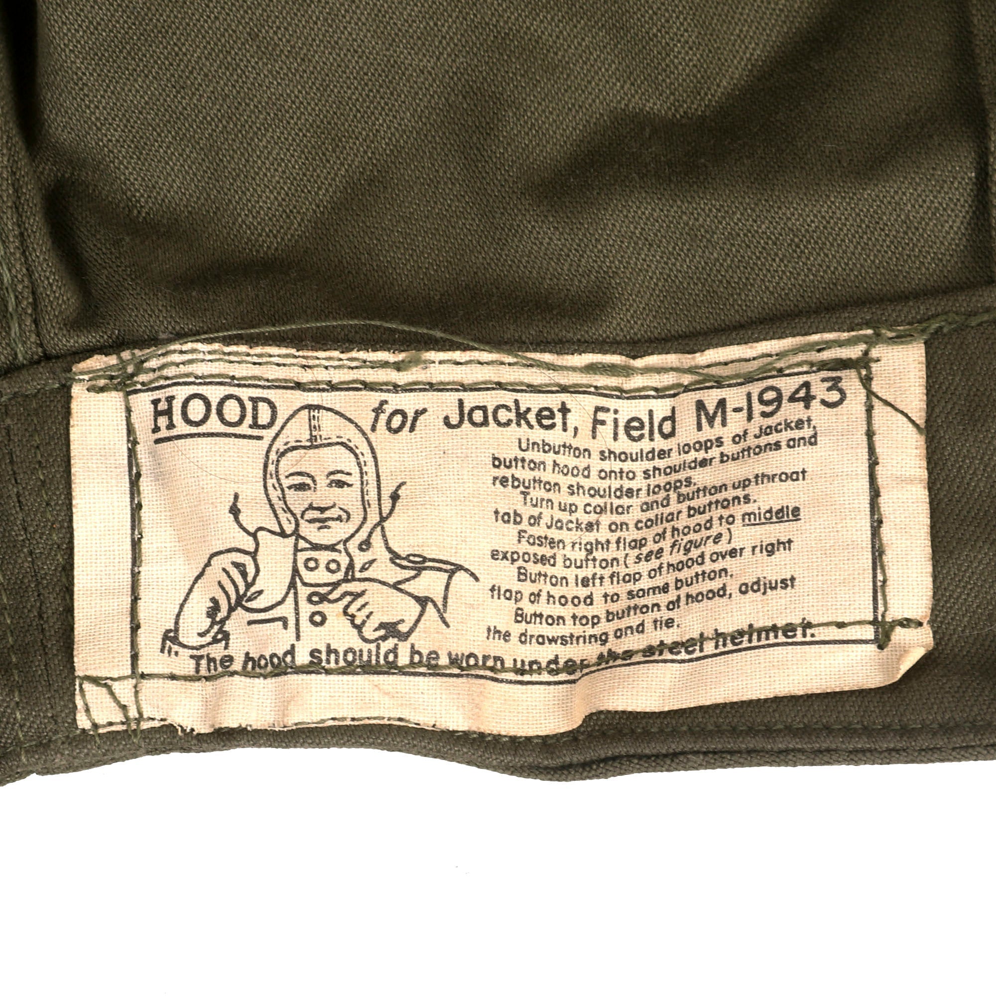 The 1st Marine Division insignia has GUADACANAL in the 1. The work is extremely well-done and thankfully doesn’t appear to have much if any wear, so this jacket was certainly put away once the soldier returned home. The jacket still retains the M43 field jacket hood in the pocket.