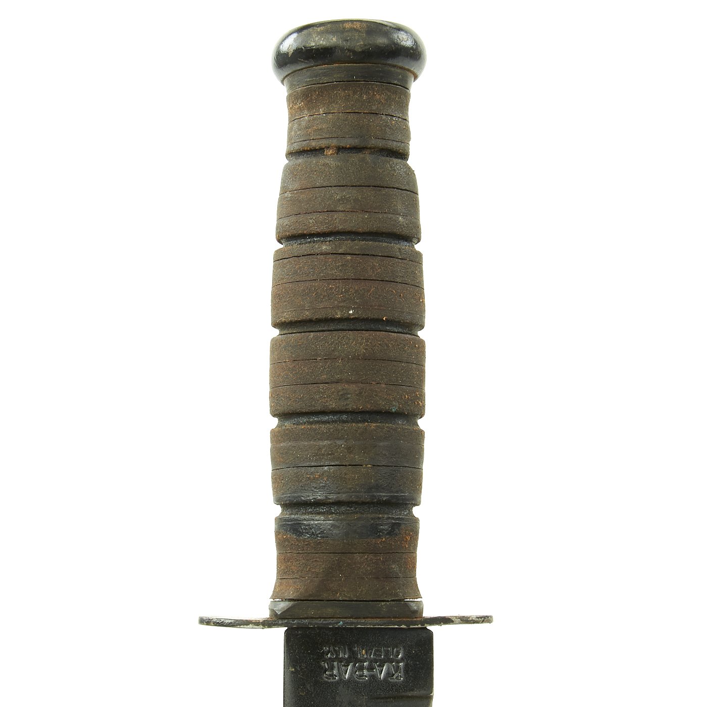 The Mk2 Knife was developed as an improvement over the Mk1 design, which had issues with blade snapping due to the thinner design. Working with Union Cutlery, USMC Colonel John M. Davis and Major Howard E. America contributed several important changes, including a longer, stronger blade, the introduction of a small fuller to lighten the blade, a peened pommel (later replaced by a pinned pommel), a straight (later, slightly curved) steel crossguard, and a stacked leather handle for better grip. The knife was officially known as the 1219C2, but it was commonly called the "Ka-Bar" after the trademark of Union Cutlery that was on the blades of early examples such as this one. The first production order went out to Camillus Cutlery Company, who produced the largest number of knives during WWII. The design was subsequently adopted by the Navy as the US Navy Utility Knife, Mark 2, and the USMC adopted it as the USMC Mark 2 Combat Knife, or simply the Knife, Fighting Utility.
