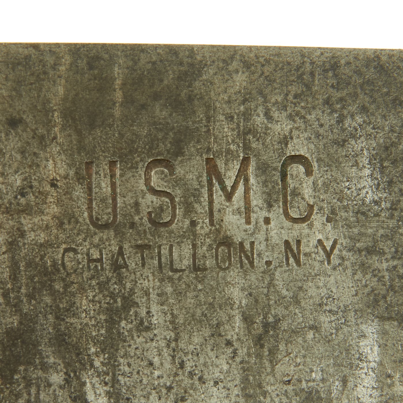 Original Item: Only One Available. This is a very nice USMC Medical Corpsman knife by Chatillon with USMC marked and dated leather scabbard. The type used by the Marine Corps in the South Pacific, and like all "Bolo" type knives, were intended as utility tools for clearing brush and light construction. With this knife wood and bamboo could be fashioned into stakes, splints, etc. Though not originally intended as a fighting knife, the close tactics of the Japanese fighting caused these knives to be heavily relied upon by USMC soldiers and were used in many battles according to the marines that survived.