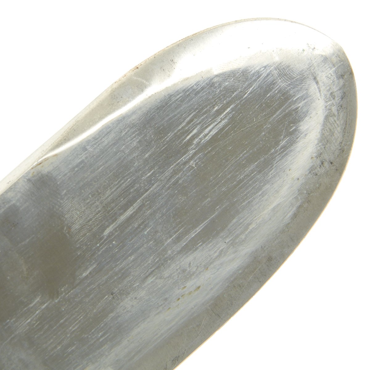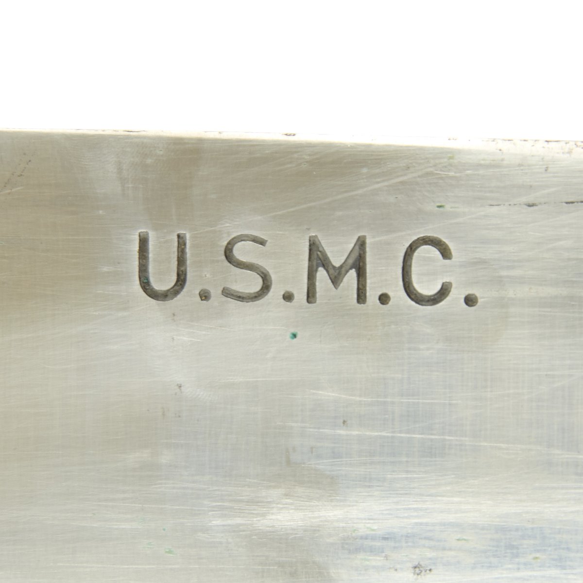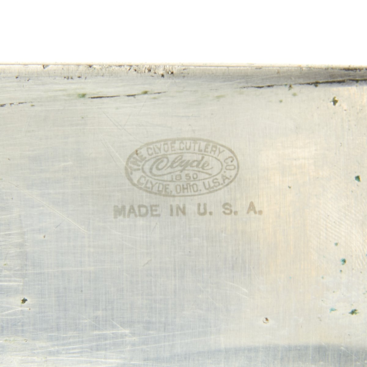 The blade on this example is in excellent condition, and is properly marked USMC along with the Clyde Cutlery Company logo on the blade body. The blade blade is bright and nick free. The edge is smooth and sharp. The grip scales are also in excellent condition, with all rivets intact, and no chips. Color indicates that the knife was rarely used.