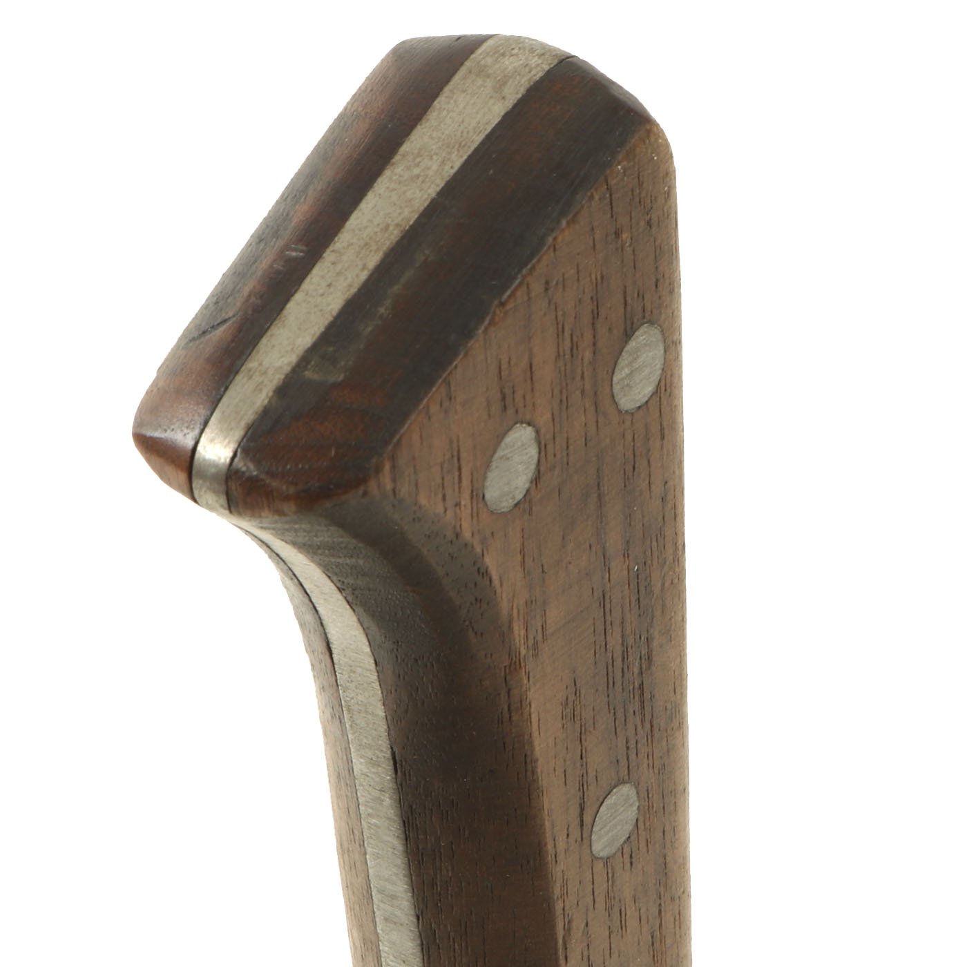 The blade does have small areas of light staining in areas, from being kept in the leather scabbard for decades. The edge is great, and quite sharp, with no nicks or other damage to the edge. The grip scales are also in very good condition, with all rivets intact, and no cracking, just some dents and scratches.