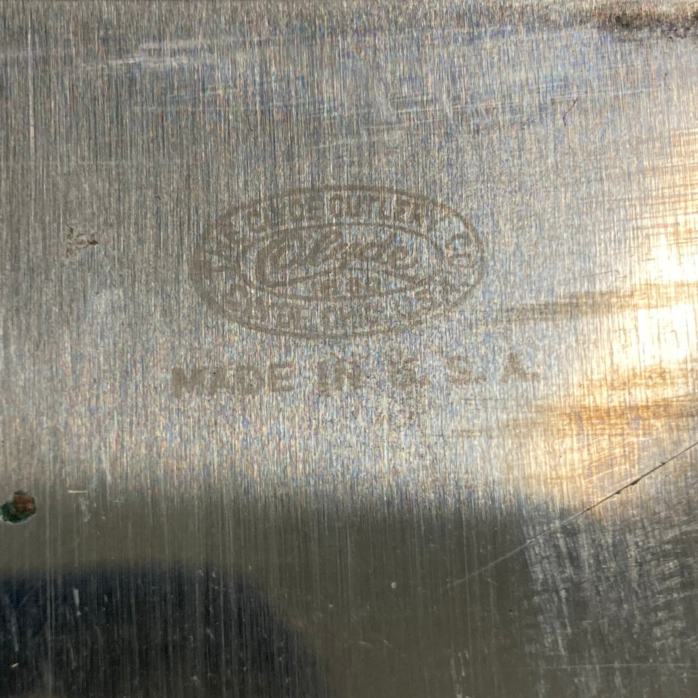 The blade on this example is in excellent near mint condition, and is properly marked U.S.M.C. on the left blade body. To the right of this is the very faint etched Clyde Cutlery trademark logo: