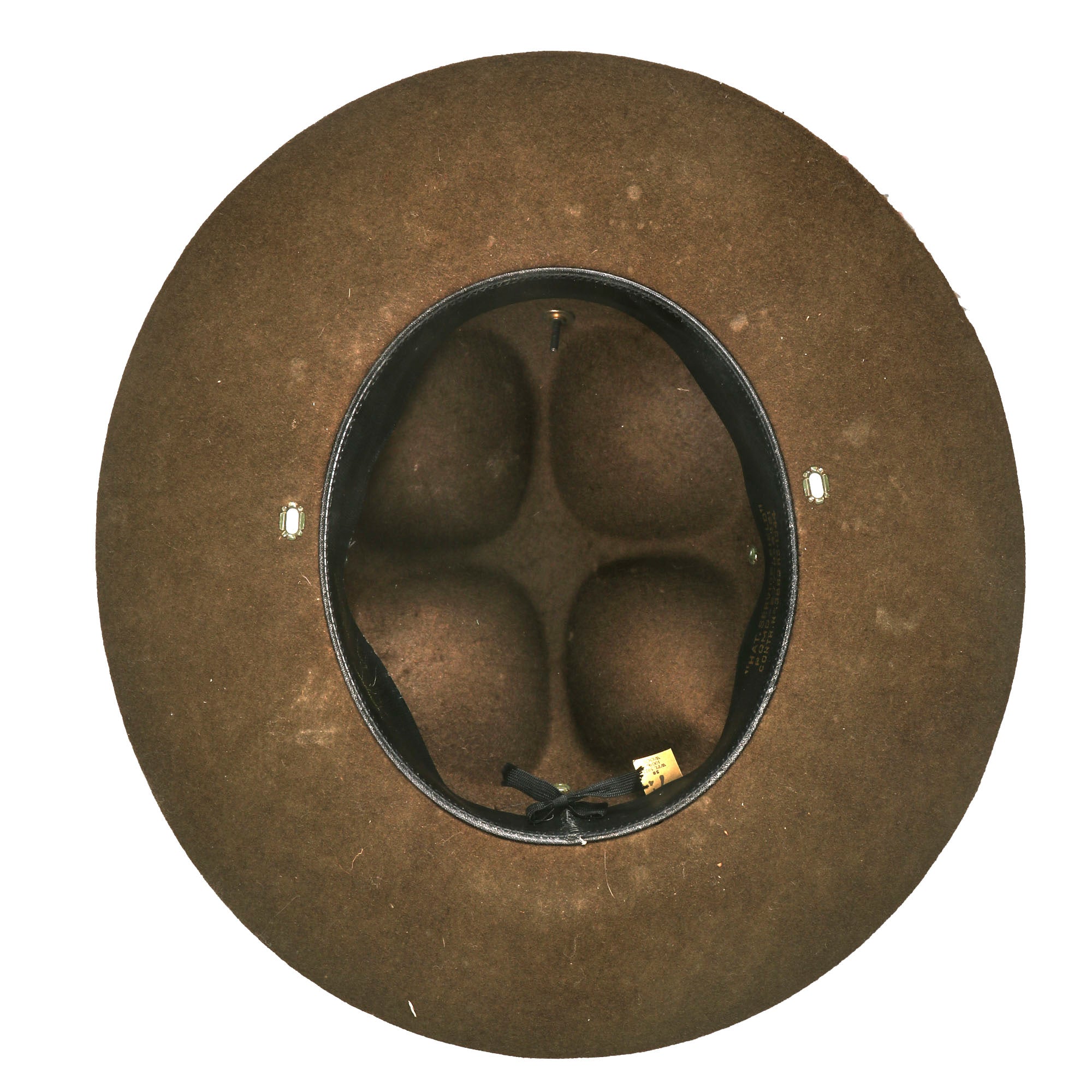 The Campaign Hat is in very good condition considering its age. The leather sweatband is intact, and in fair condition. Size is 7¼. The sweatband is marked: