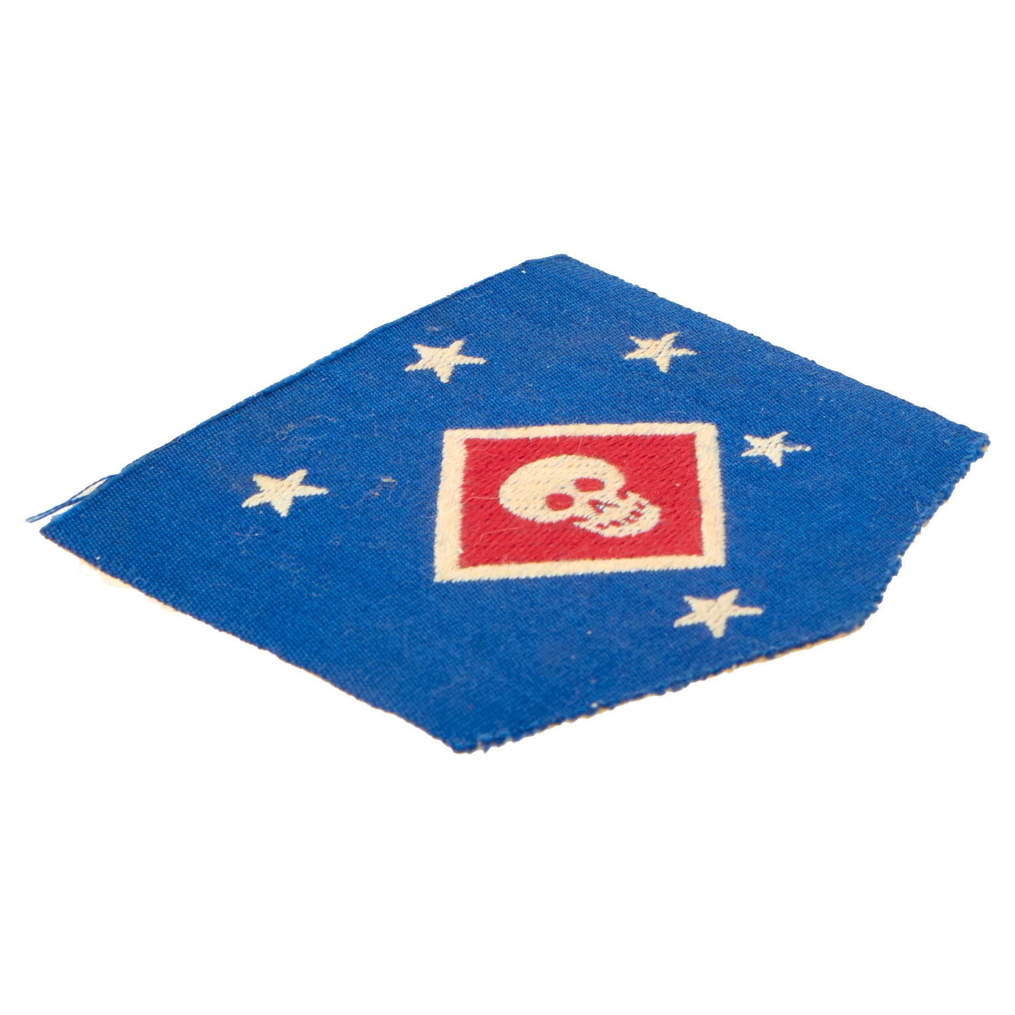 Original Item. Only One Available. This is an extremely scarce Australian-Made Marine Raider patch made in the well-known Bevo Weave style. The "Raiders" formed an elite corps that participated in amphibious warfare starting in World War II. The patch is blue with a 'Smiling Skull' in the center of a red diamond surrounded by five stars. This style is associated with Australian makers.