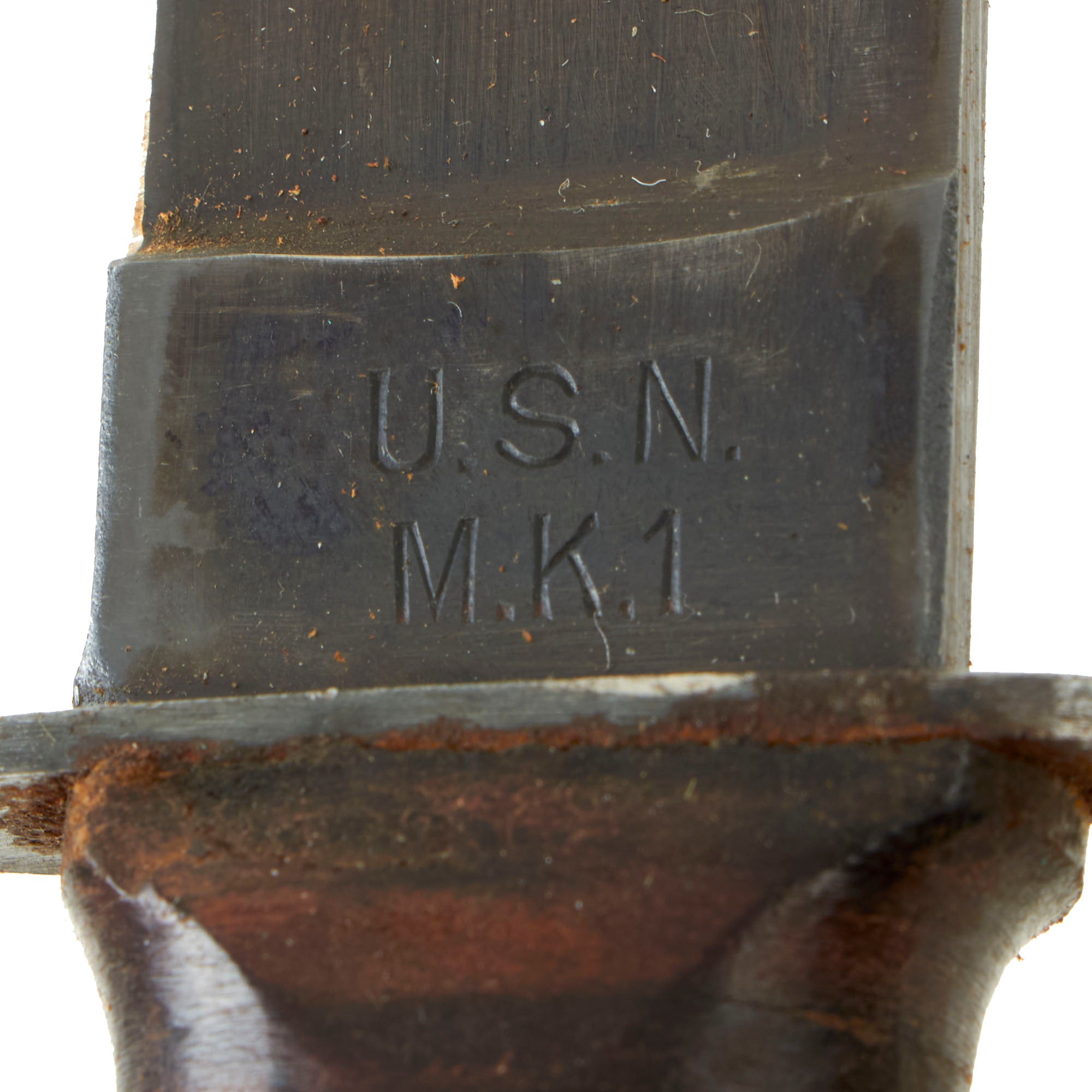 Original Item: Only One Available. The Navy MK1 knife was used as both a utility knife and a fighting weapon. While some undoubtedly saw combat, particularly with Naval Aviators, these blades were mostly used for everyday functions aboard ship and ashore. The Mark I knives were Navy issue throughout WW2 and remained in inventory through the Vietnam war. They were purchased in huge quantities so replacements were not needed for many years.