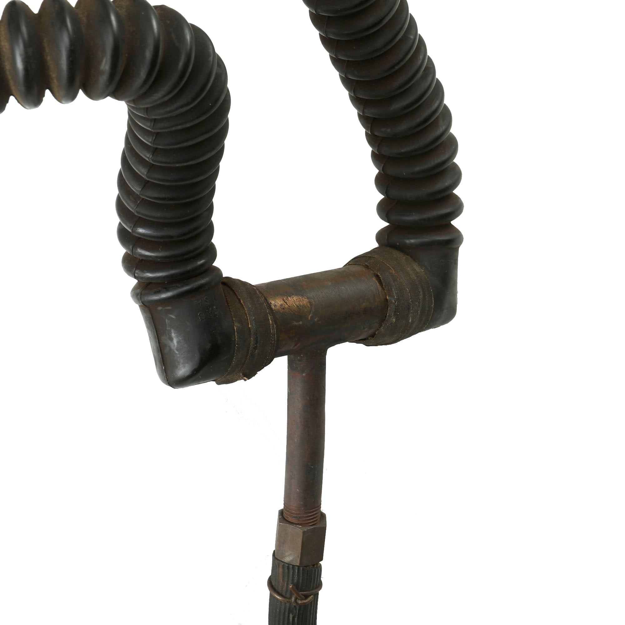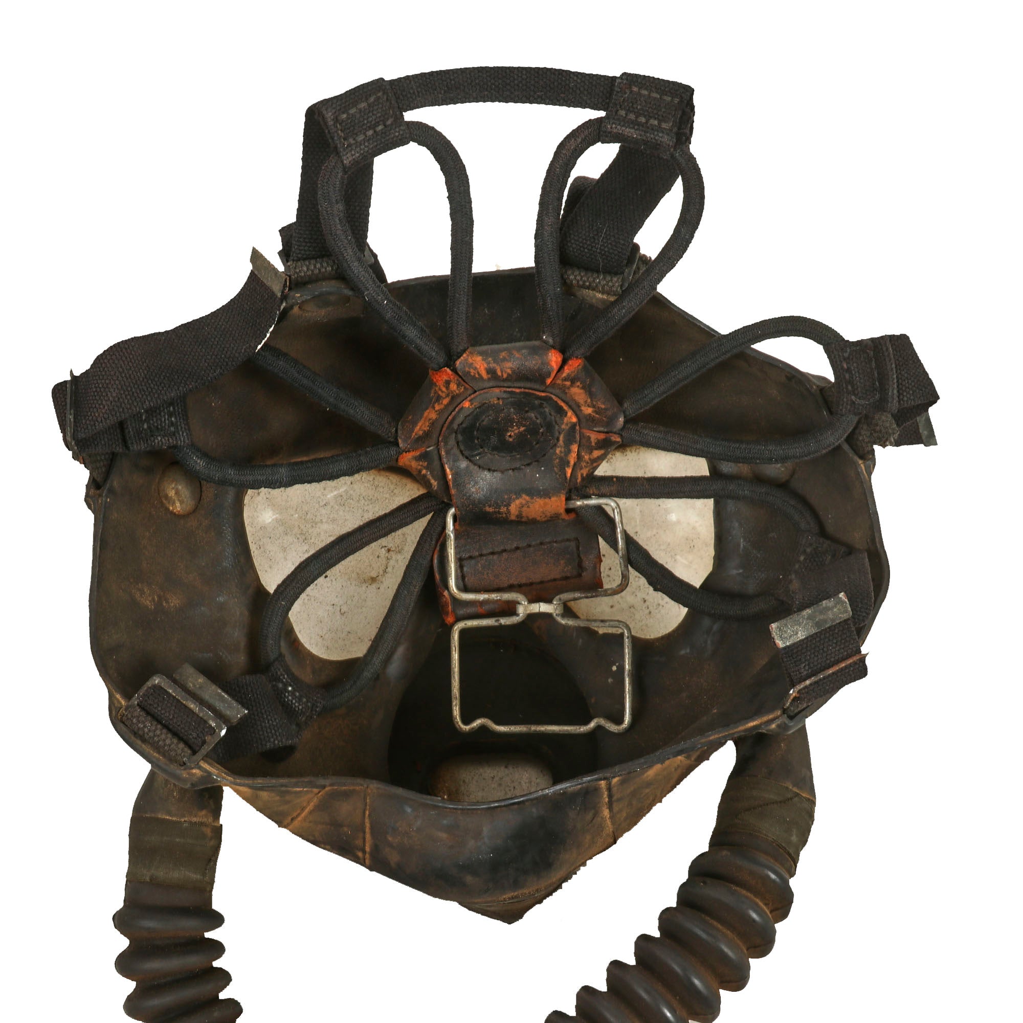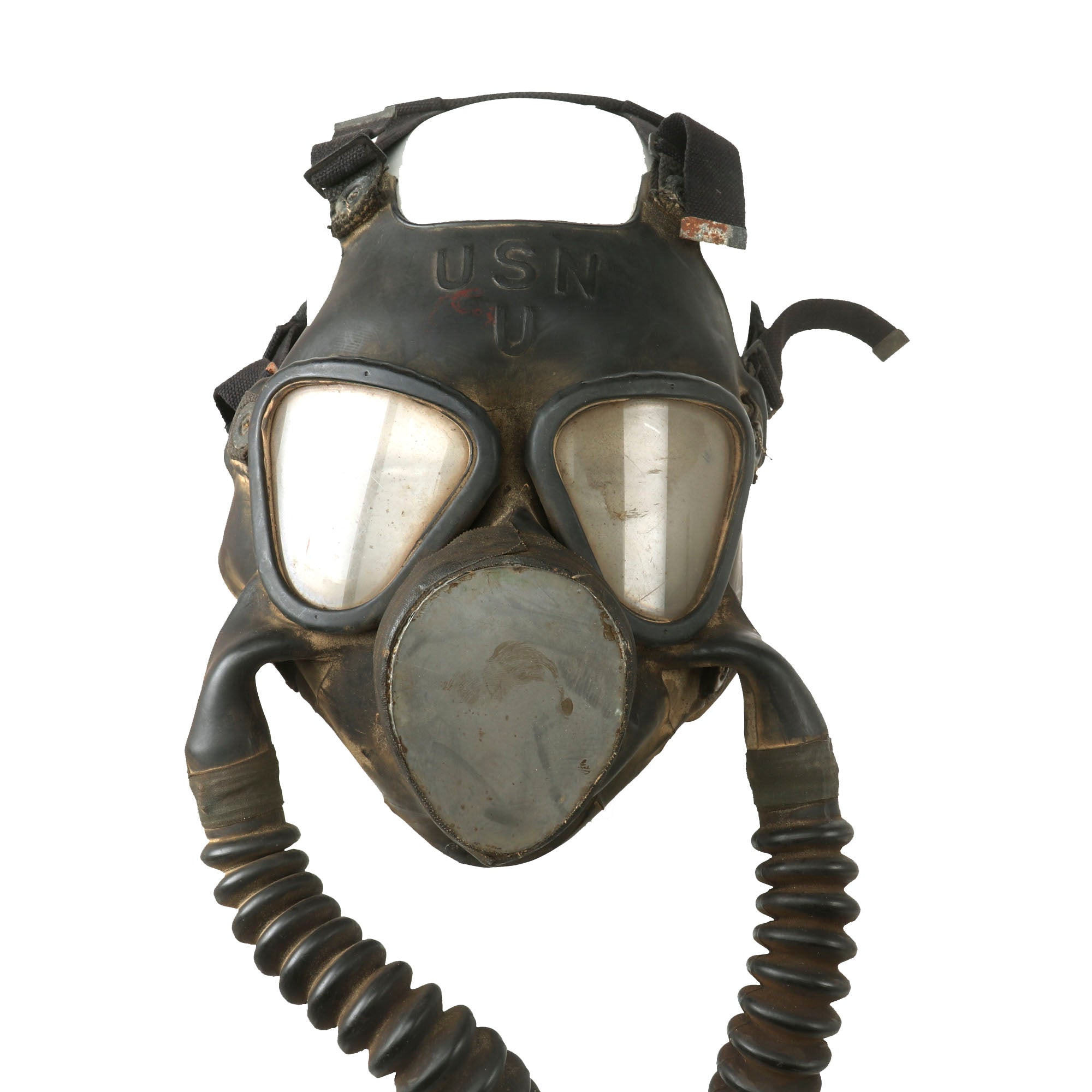 Original Item. One-of-a-Kind. This is a very interesting example of the U.S. Navy Diaphragm Mk IV Gas Mask, which has the canister entirely removed with a new tube and valve attached for attachment to an oxygen tank. Additionally, the vent on the front has been entirely closed off, so that the mask could be used for shallow diving and likely ship repair.