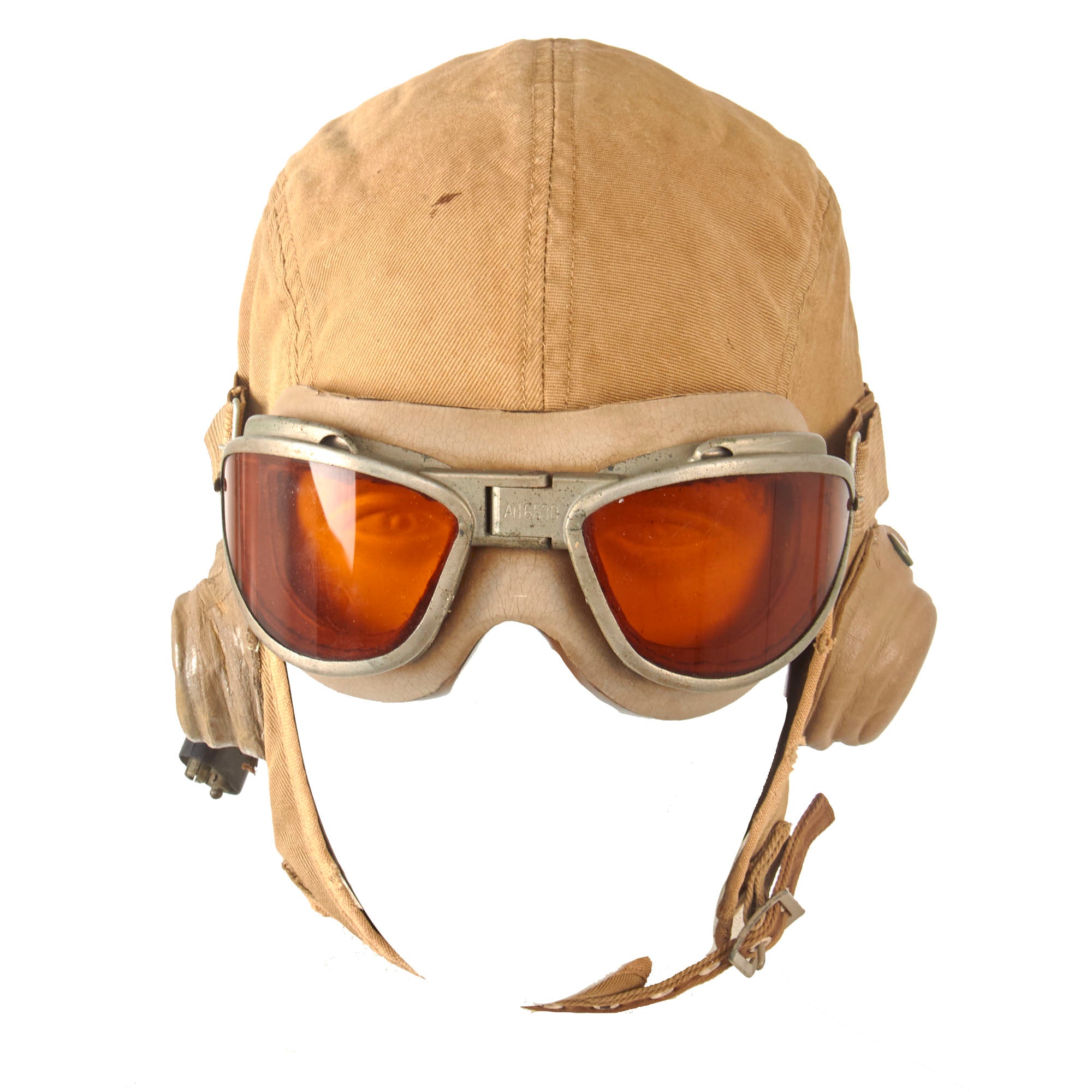 Original Items: Only One Set Available. This is a very nice, if not somewhat rare, USN or USMC Summer Aviator helmet set, complete with receivers and goggles. The NAF (Naval Air Forces) 1092S helmet was the standard Navy flight helmet early in WWII, and was the summer (Hence the "S") version of the lined leather 1092. The interior has a maker’s tag for BECK.