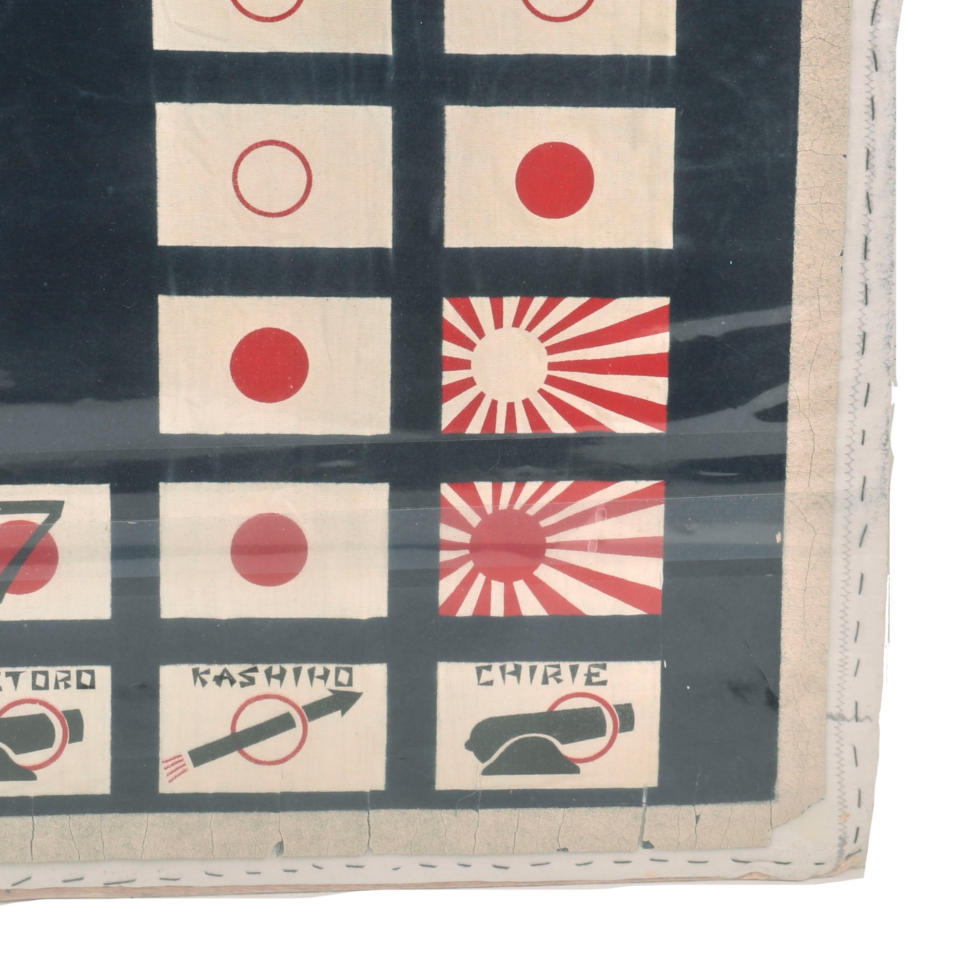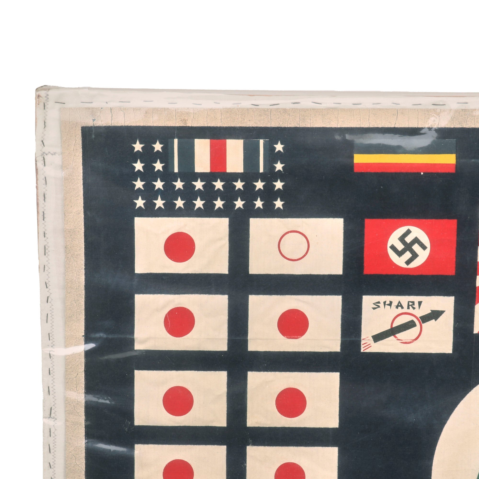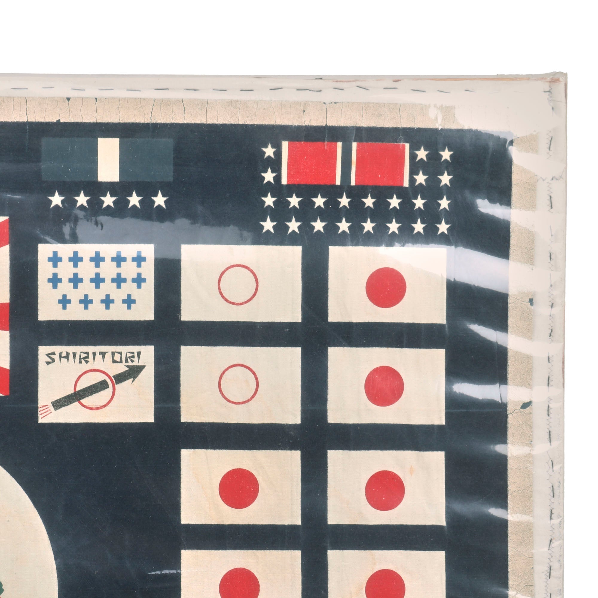 The flag, which measures 30" x 27”, is in phenomenal condition, and is mounted to a board and sealed behind plastic. The paint is spectacularly preserved, with the only serious wear being to the edges which show cracking. The top of the flag has the awards received by the Submarine & its crew, including the Medal of Honor received by its commander, Eugene B. Fluckey. These also include 6 Navy Crosses, 23 Silver Star Medals, 23 Bronze Star Medals, and a Presidential Unit Citation for the Barb. The center depicts a Barbus, the fish for which the submarine was named, wearing a bandolier of dynamite and holding a lit stick. This is the greatest & most attractive Submarine battle flag we’ve ever had. The Medal of Honor ribbon at the top really ties it all together.