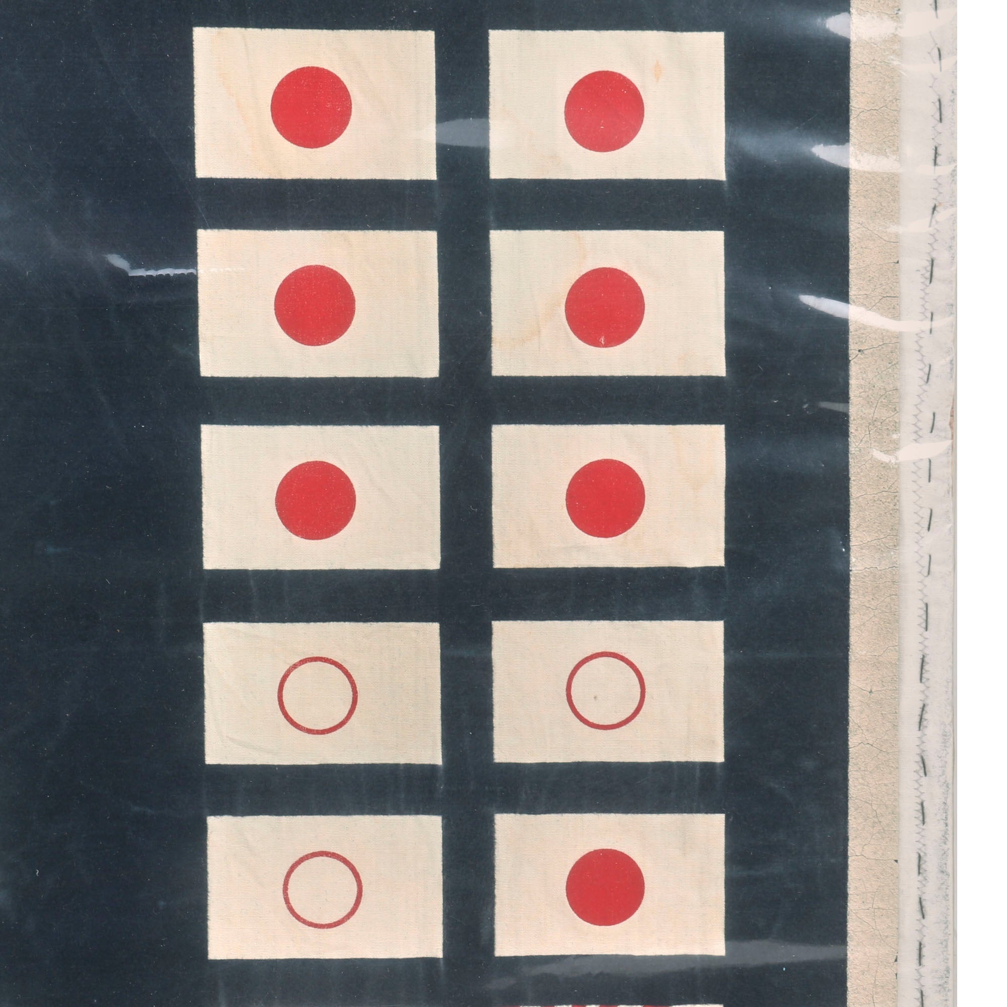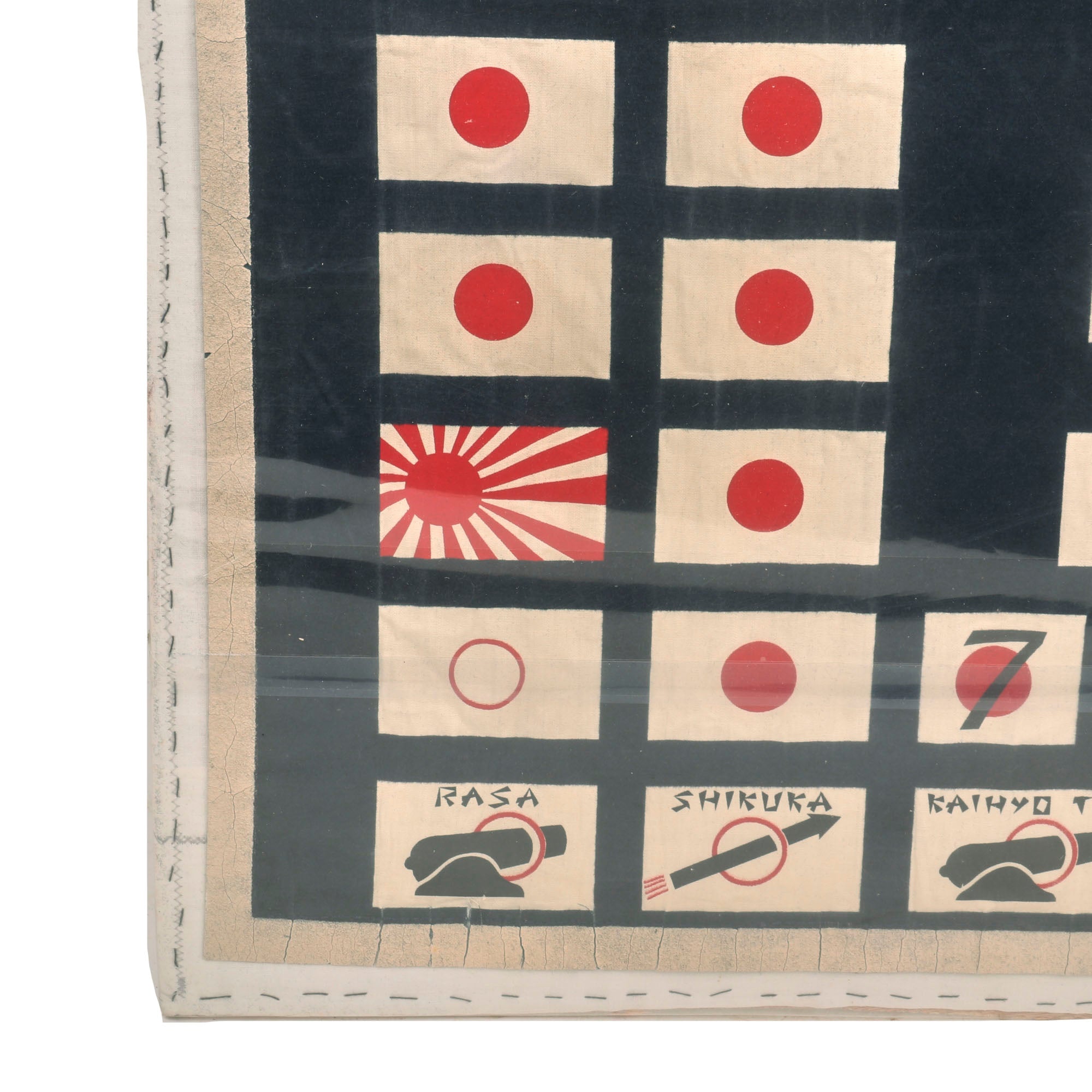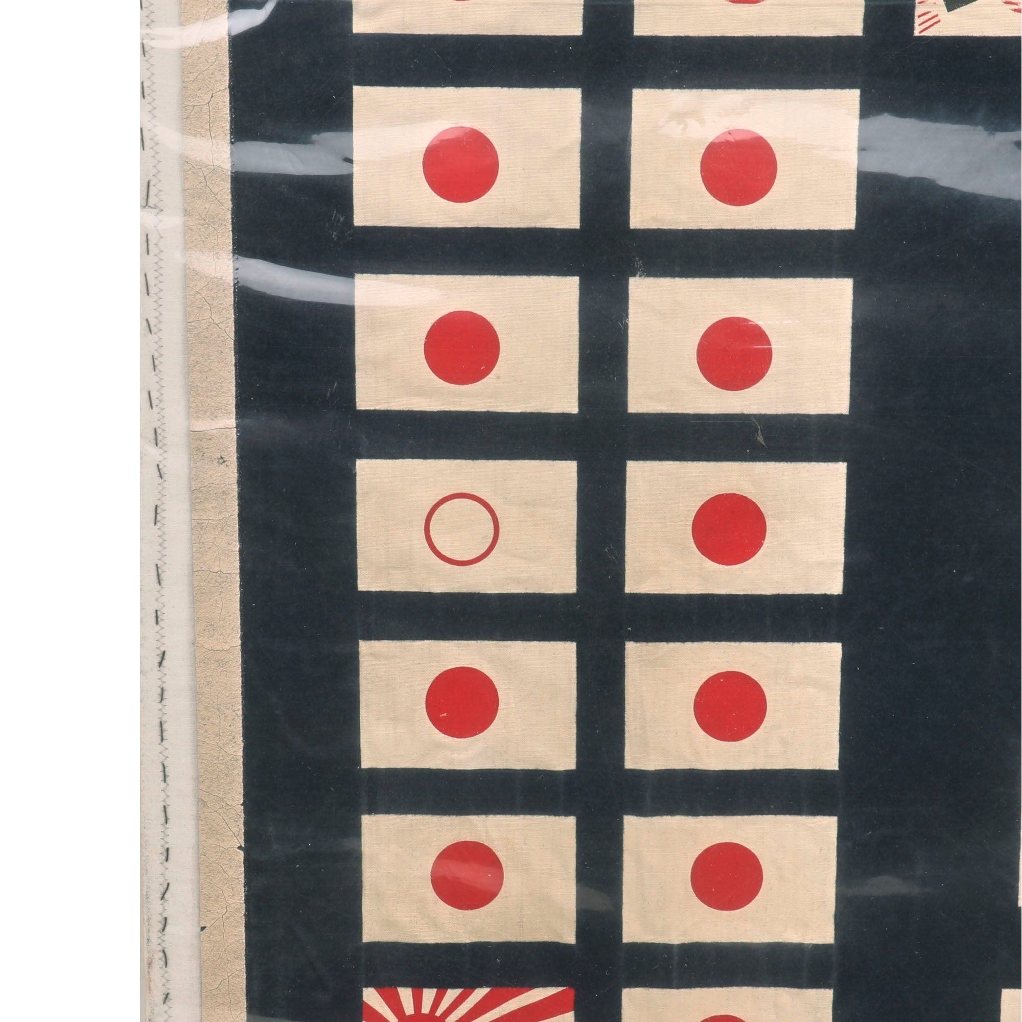 The flag, which measures 30" x 27”, is in phenomenal condition, and is mounted to a board and sealed behind plastic. The paint is spectacularly preserved, with the only serious wear being to the edges which show cracking. The top of the flag has the awards received by the Submarine & its crew, including the Medal of Honor received by its commander, Eugene B. Fluckey. These also include 6 Navy Crosses, 23 Silver Star Medals, 23 Bronze Star Medals, and a Presidential Unit Citation for the Barb. The center depicts a Barbus, the fish for which the submarine was named, wearing a bandolier of dynamite and holding a lit stick. This is the greatest & most attractive Submarine battle flag we’ve ever had. The Medal of Honor ribbon at the top really ties it all together.