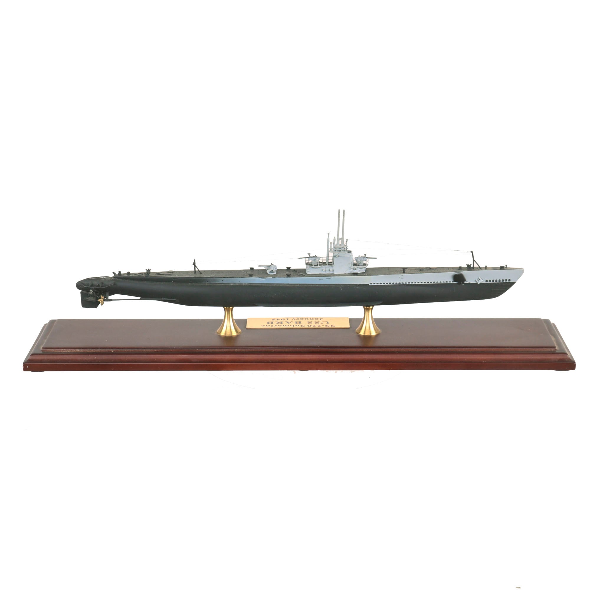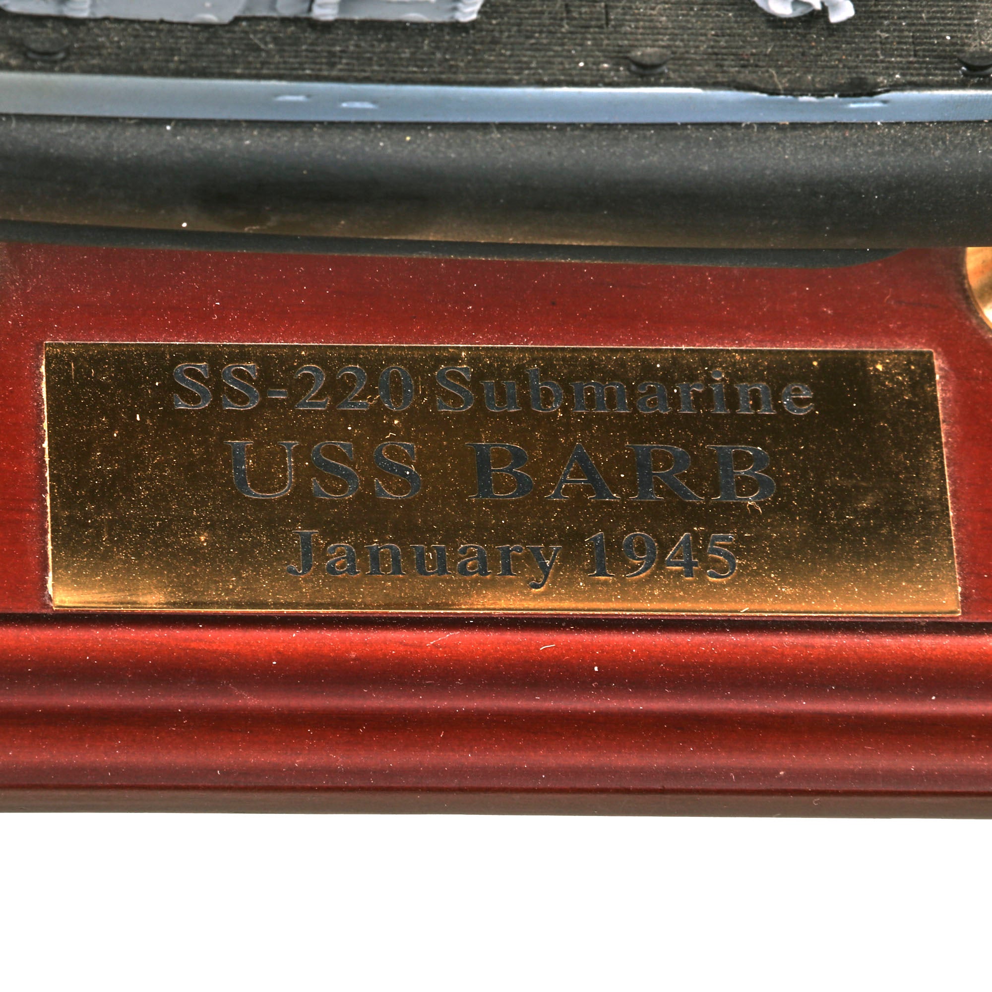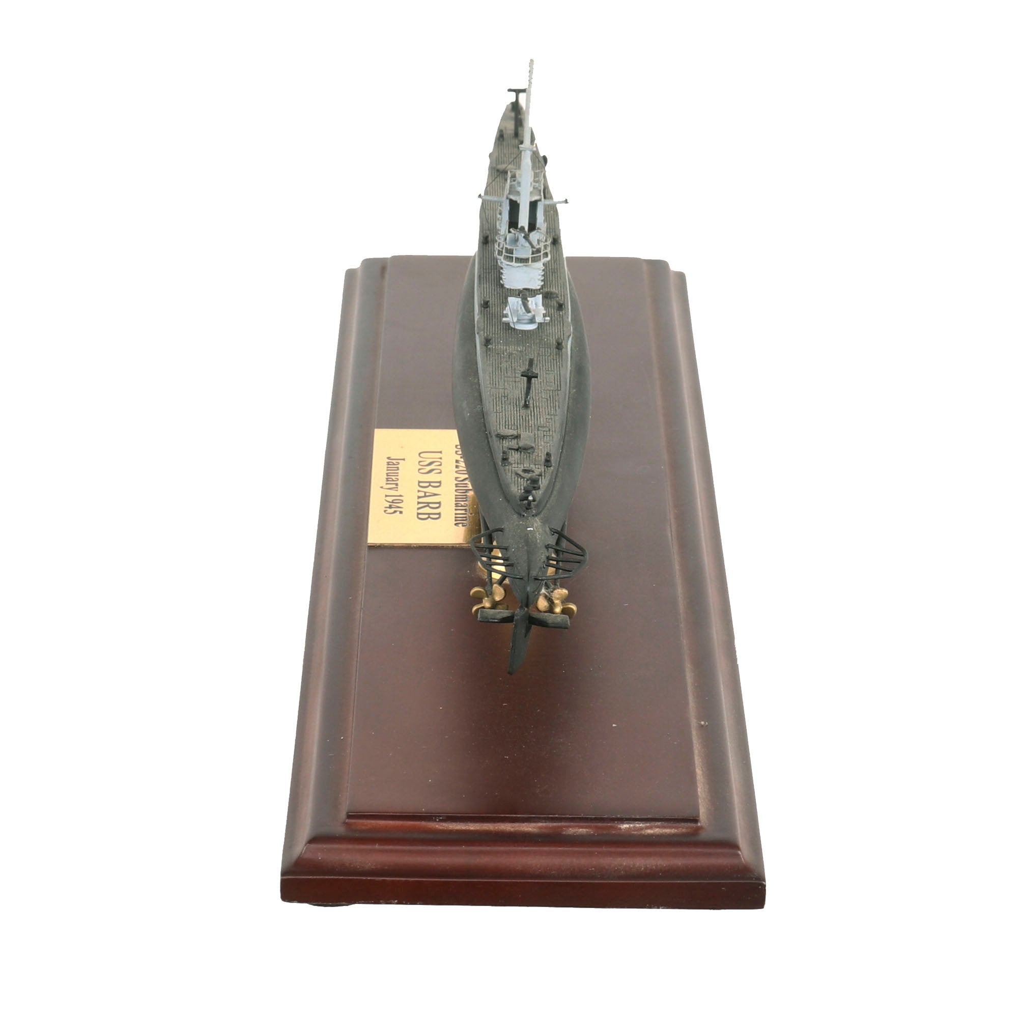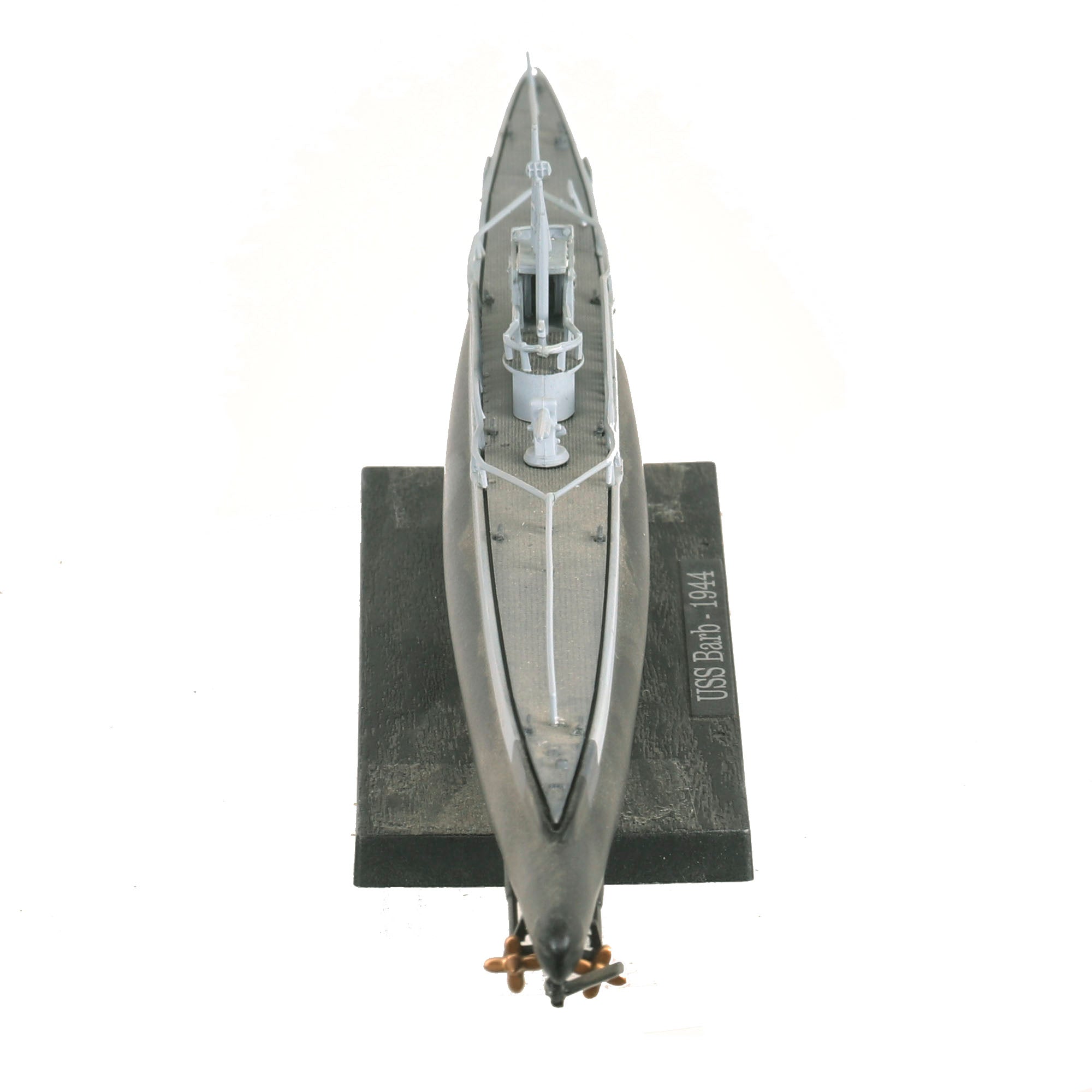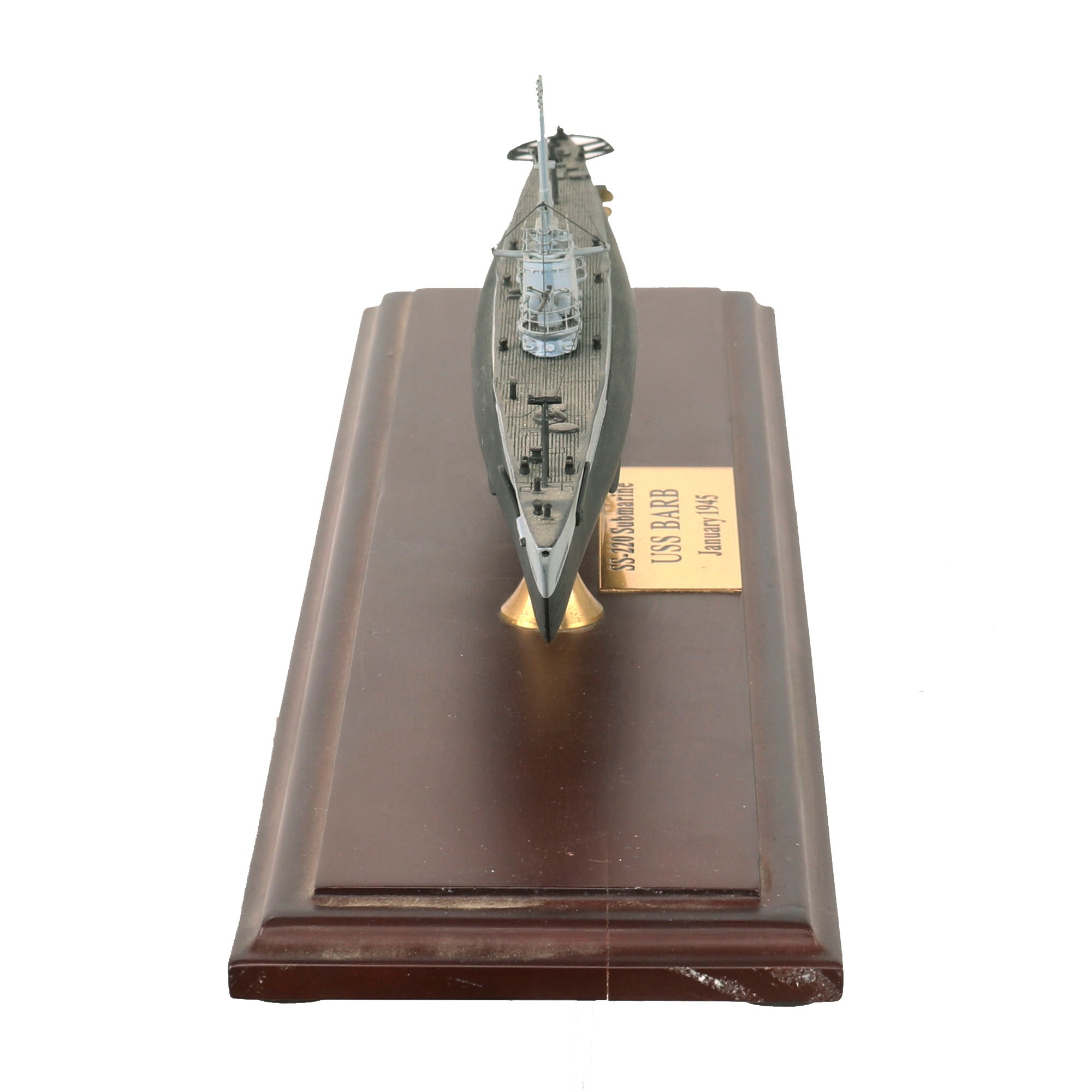 • Small scale model of the USS Barb also showing part of her interior with USS BARB - 1944 on a small plaque. Model is roughly 11” long and is in its original box. From the Editions Atlas Collection.