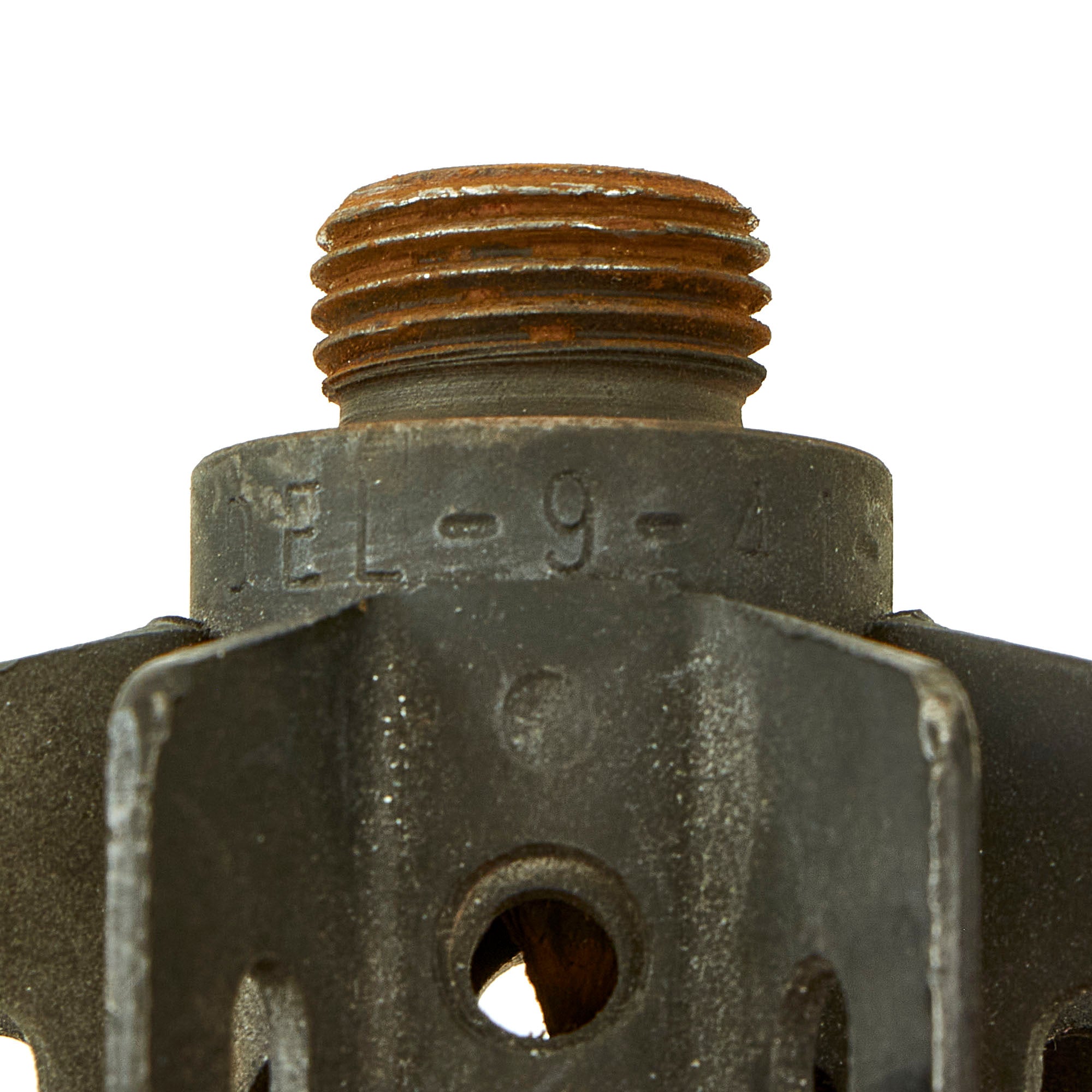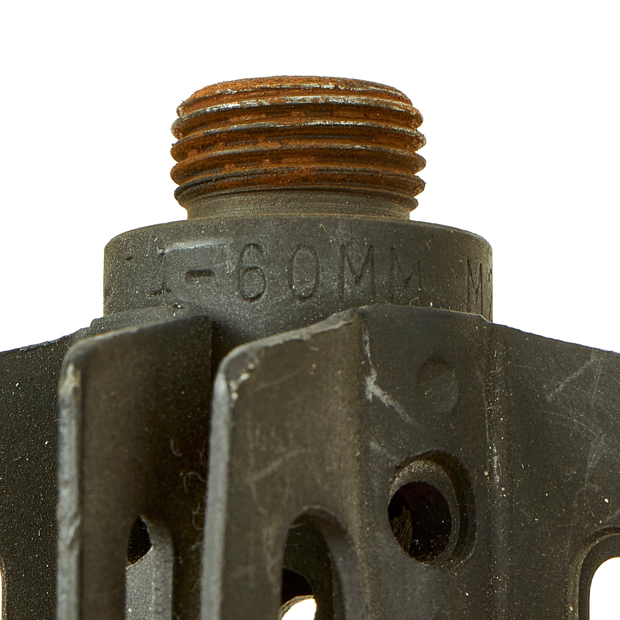 This is a hard to find WWII Era M69 Training / Practice Cartridge, as used with the U.S. WWII issue M2 60mm & M19 Mortar Systems. This TP round also continued to be used during the Korean war, and into the Vietnam era. The M69 Training/Practice Cartridge (TP) weighs approximately 4.43 lbs (2.01 kg) and is composed of a shell with a cast iron body, inert filler, and detachable fin assembly used to train recruits in firing the M2 & M19 mortars. The cast iron body is reusable and the fin assembly can be replaced if damaged.
