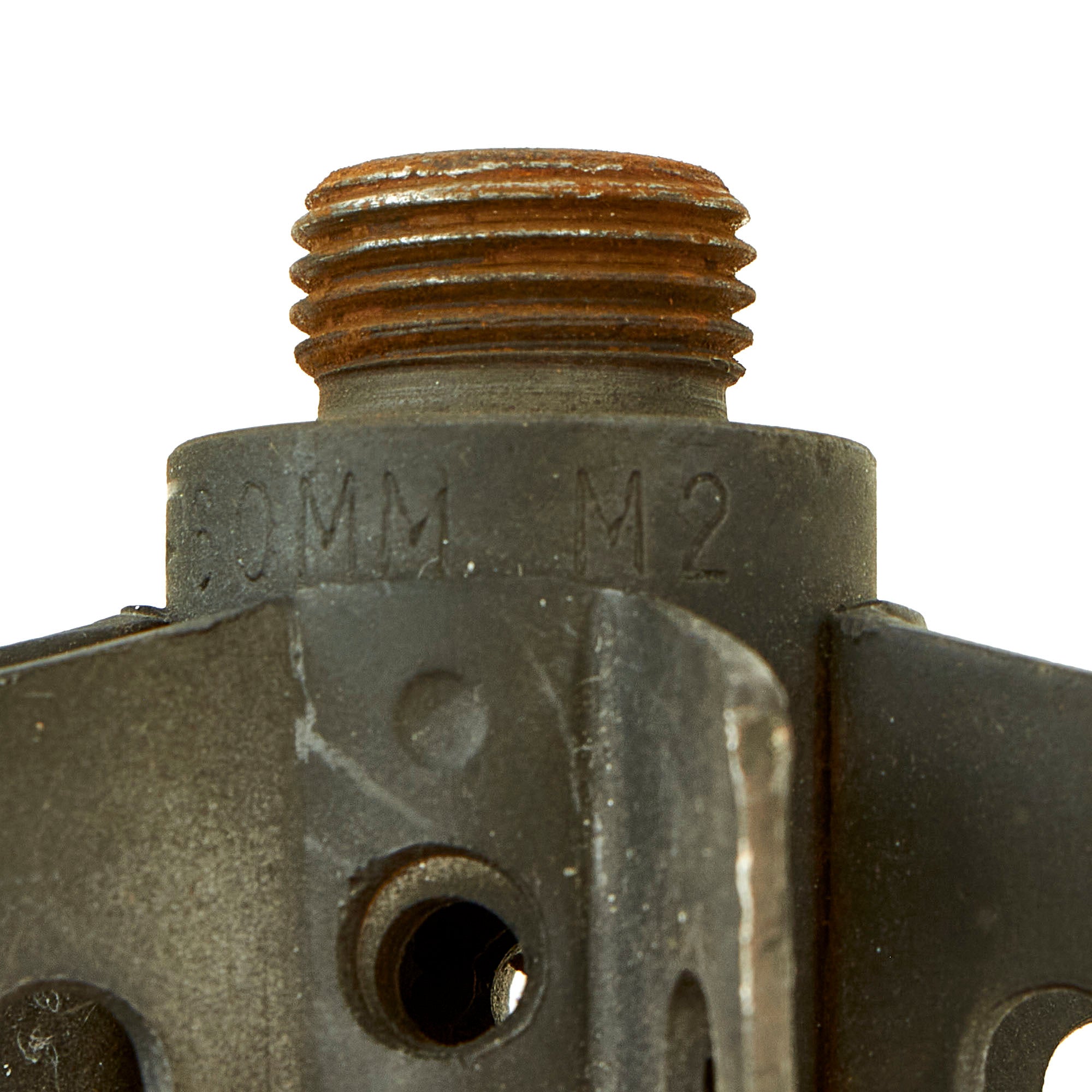The M2 Mortar is a 60 millimeter smoothbore, muzzle-loading, high-angle-of-fire weapon used by U.S. forces in World War II, the Korean War, and the Vietnam War for light infantry support.