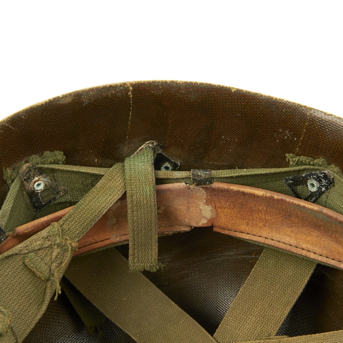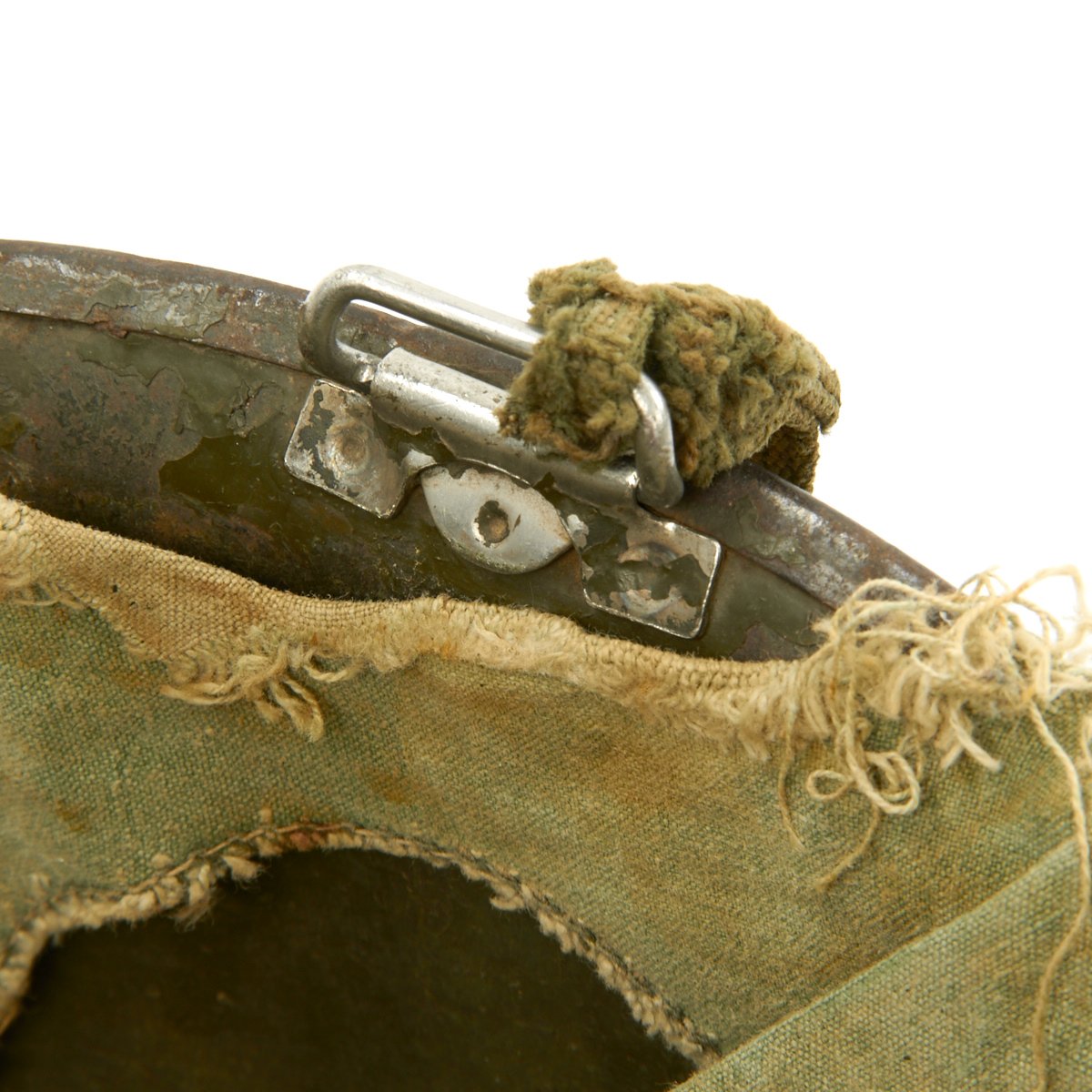 Vietnam War era M-1 helmet shells have a set of swivel (movable) chinstrap loops called bales and a stainless steel rim. These rims were both rust resistant and had non-magnetic qualities that reduced the chance of error readings when placed around certain sensitive equipment (such as a compass).