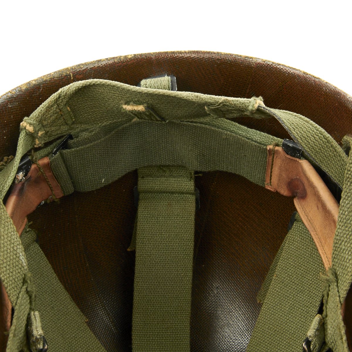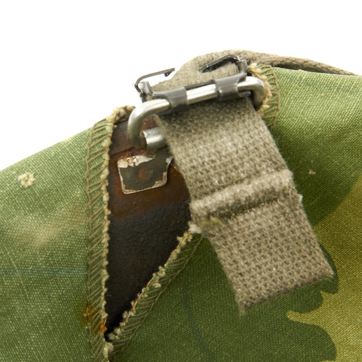 This helmet is a fine example and still retains all of its original Vietnam War parts and the shell has all original corked grain paint. The inner shell though has suffered some corrosion from moisture and age.