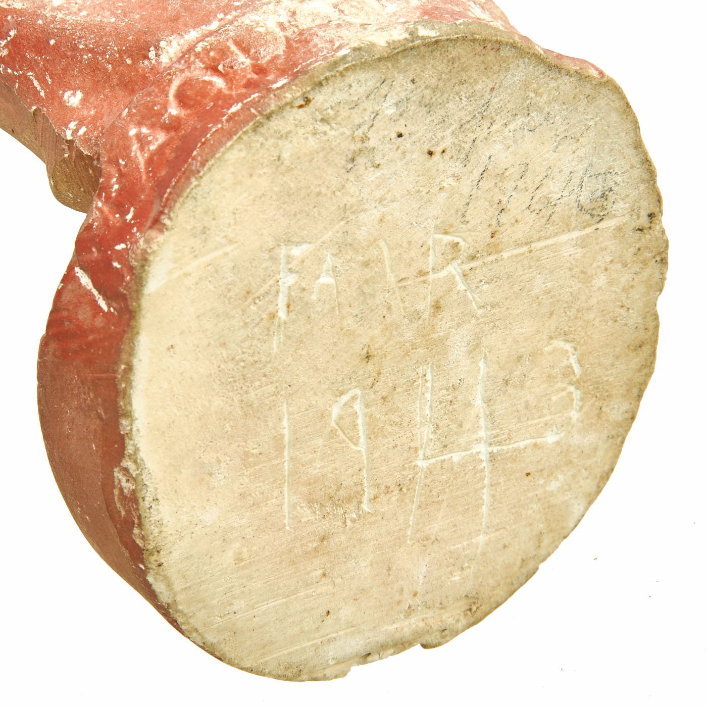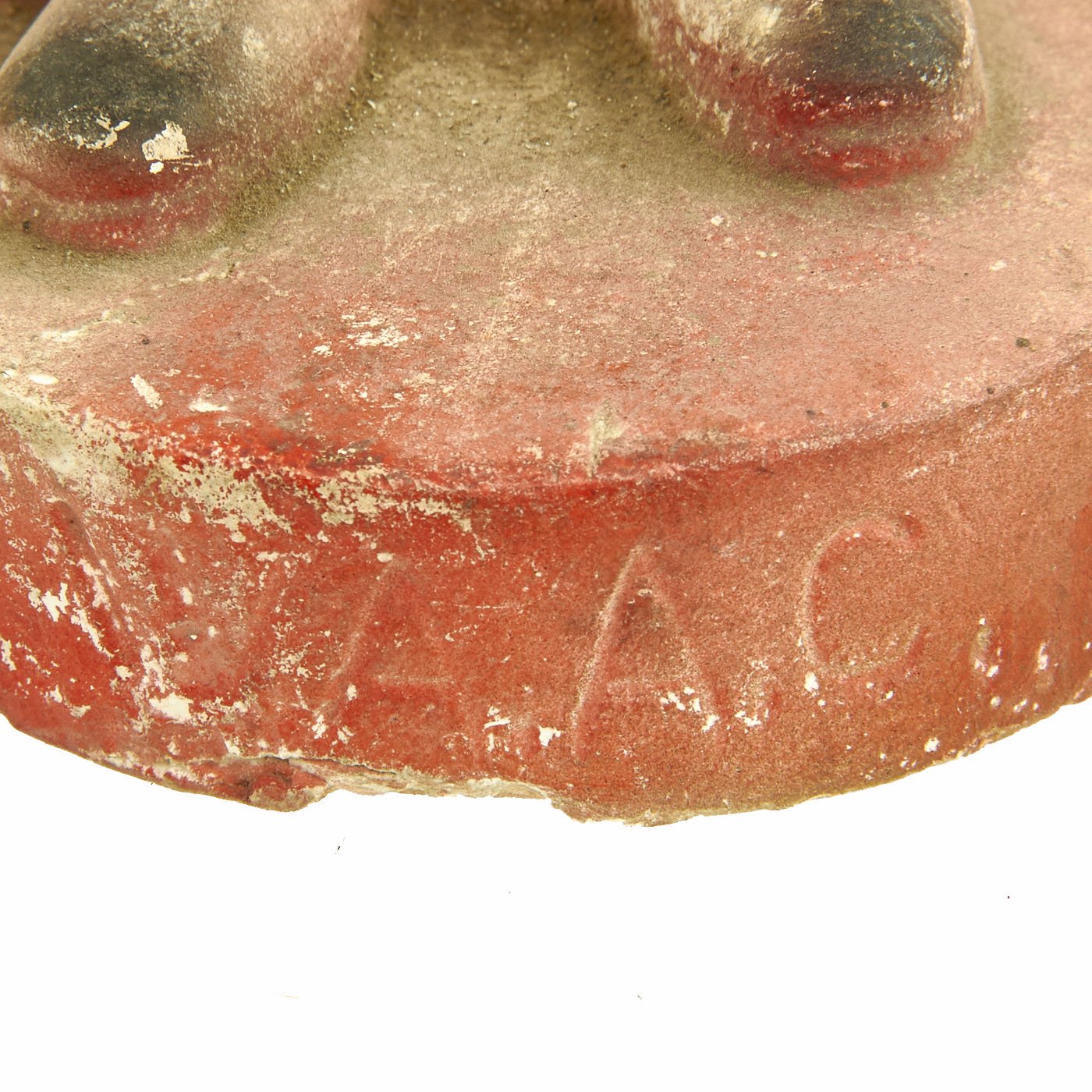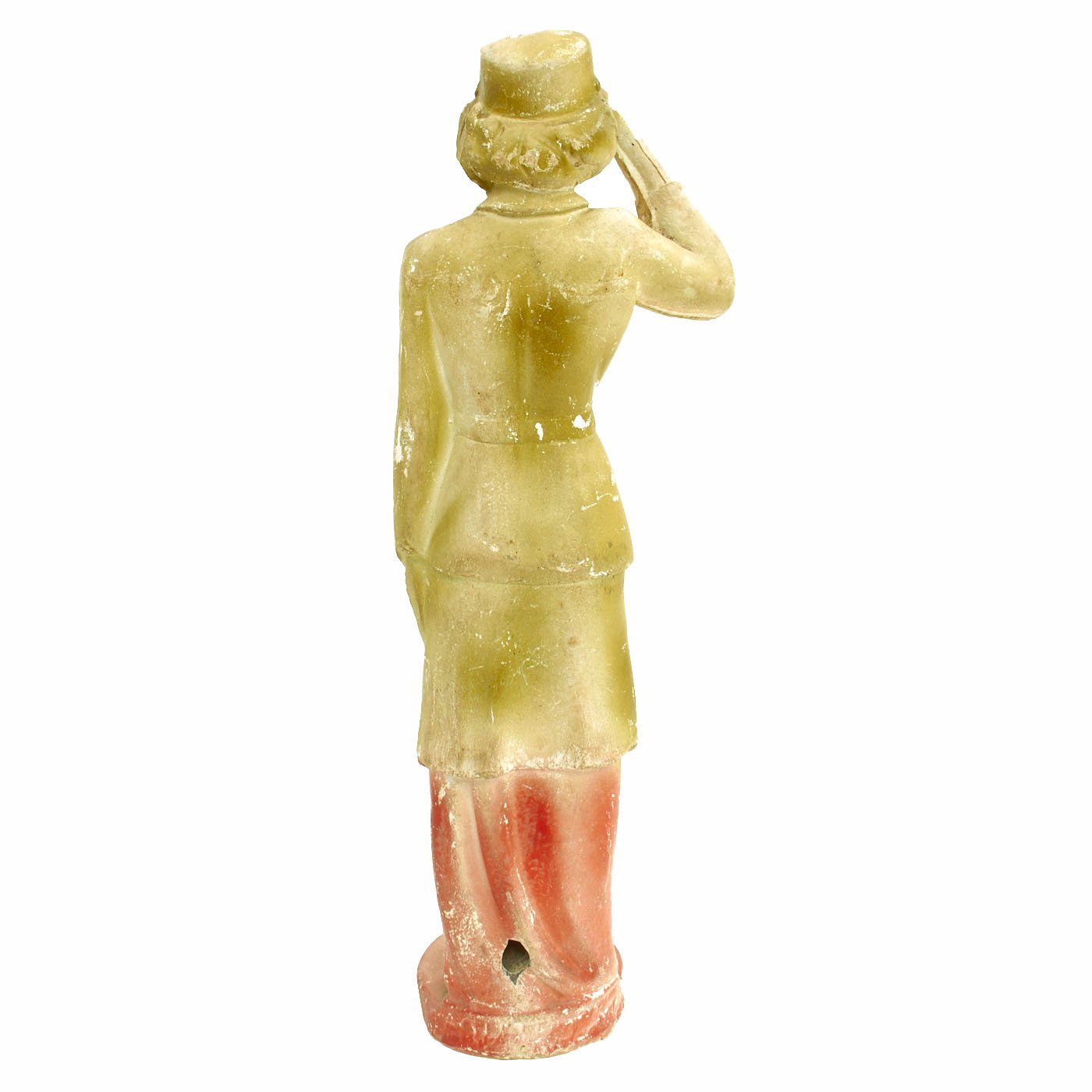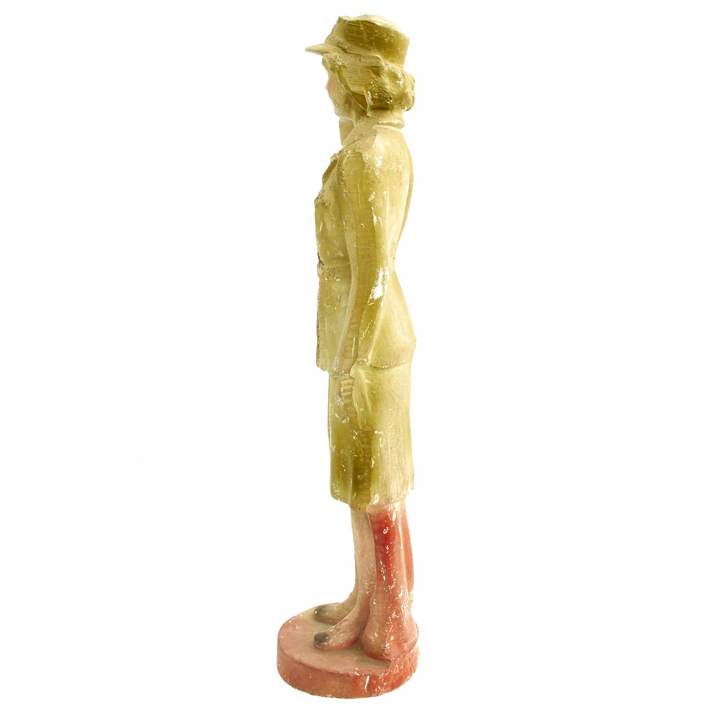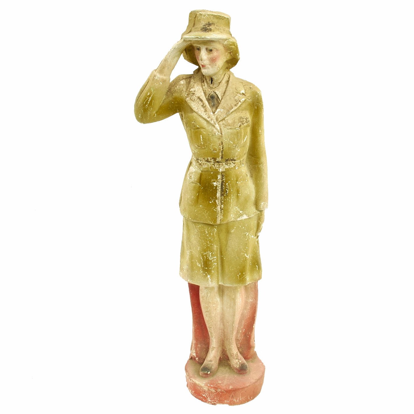 This chalk figurine of a Women's Army Auxiliary Corps lady stand 16 inches tall, is offered in very good condition with only minor defects and has held its color exceptionally well. The base is marked W.A.A.C. for Women's Army Auxiliary Corps.