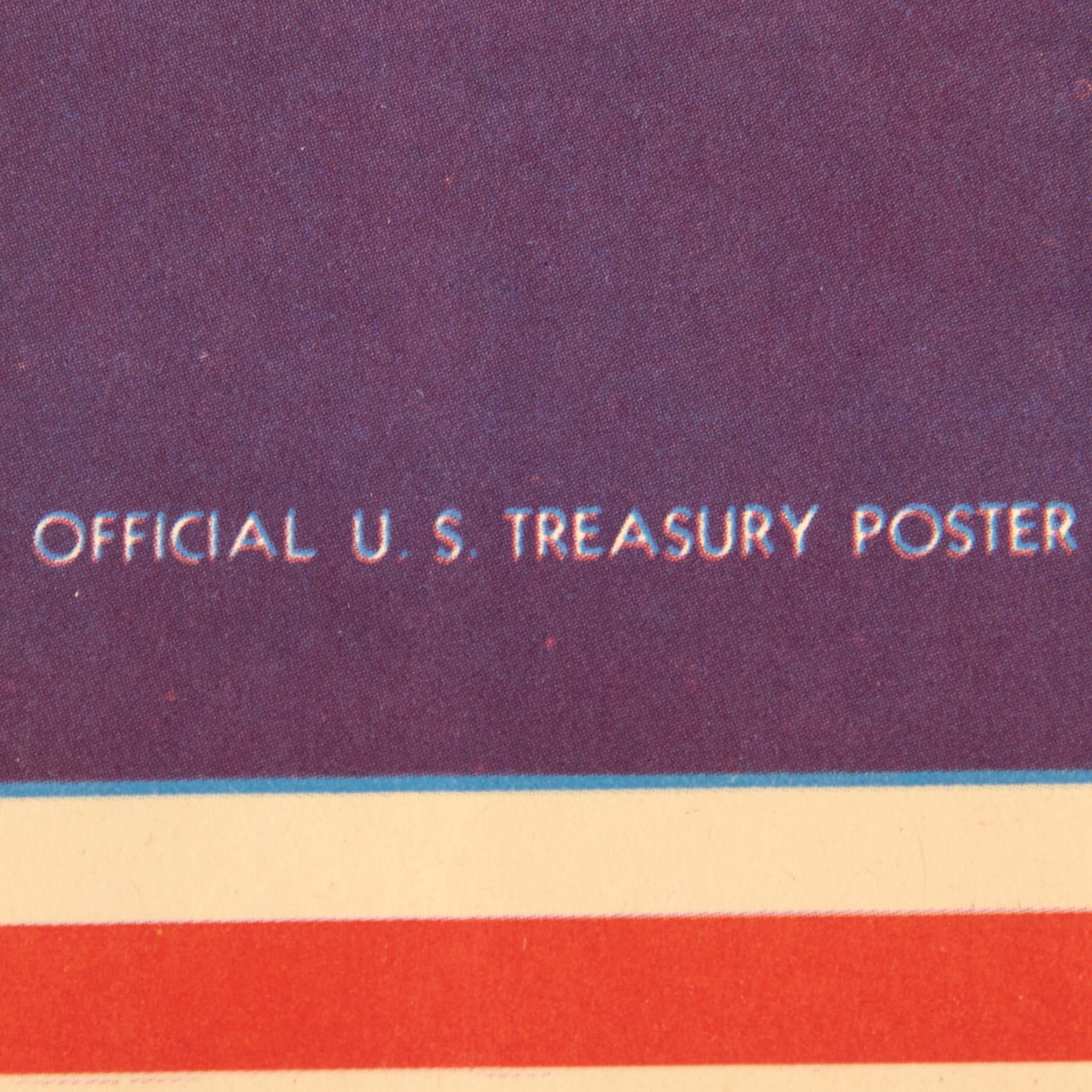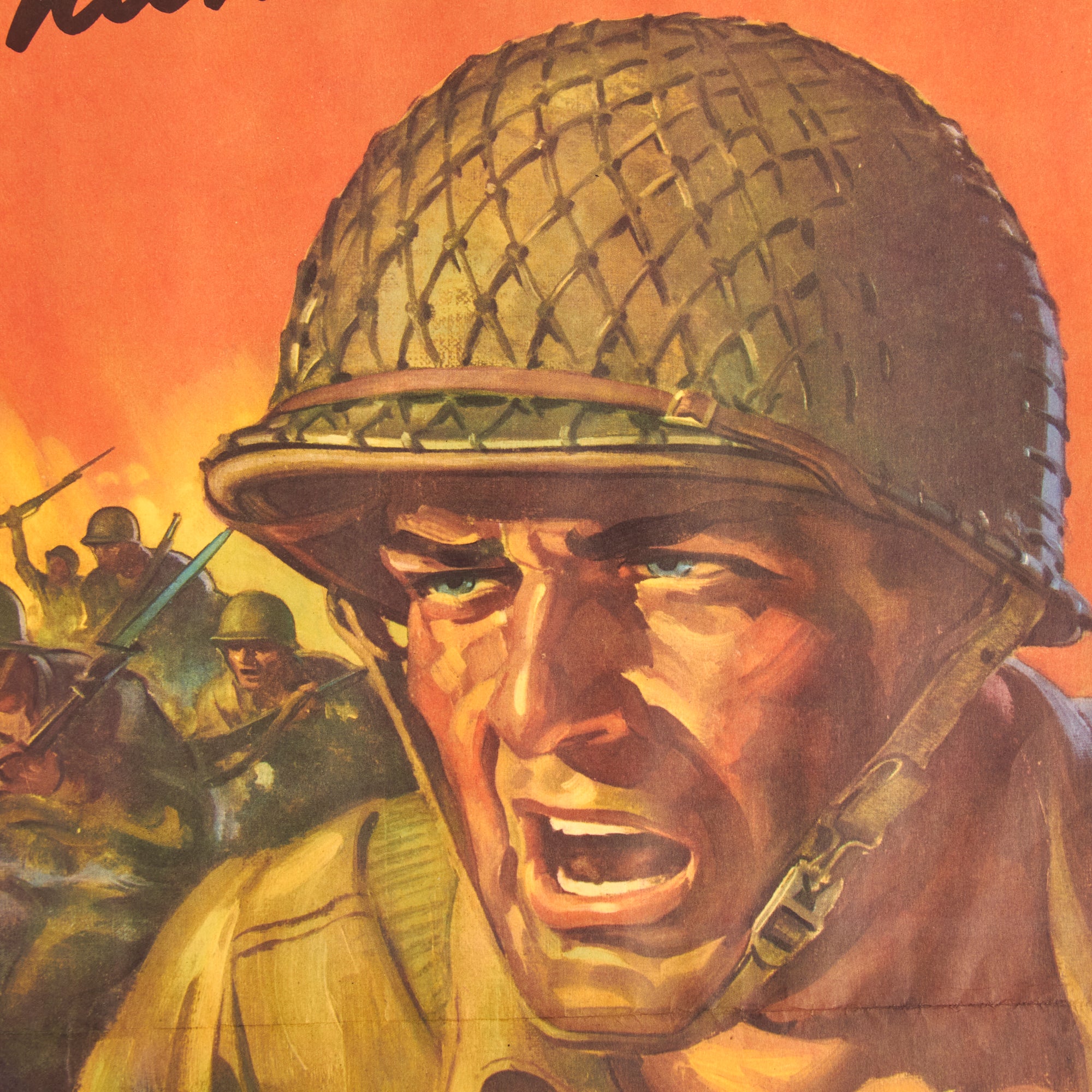Original Item: Only One Available. This is a lovely, still vibrant poster featuring and image of an intense battle being fought with ground infantry as well as tanks, charging towards the enemy. The artwork was done by John Newton Hewitt and is an Official U.S. Treasury Poster.