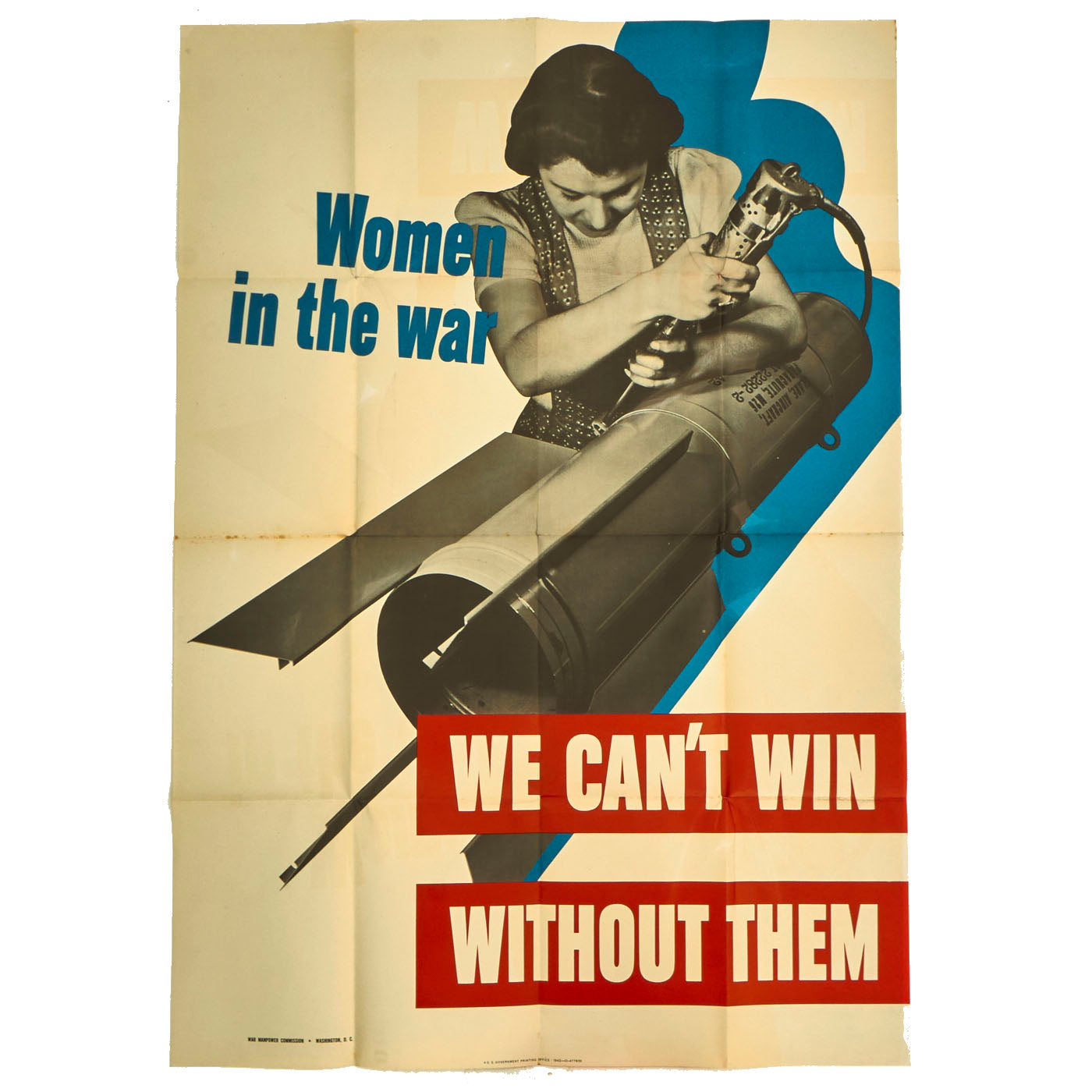 Original Item: Only One Available. In the face of acute wartime labor shortages, women were needed in the defense industries, the civilian service, and even the Armed Forces. Despite the continuing 20th century trend of women entering the workforce, publicity campaigns were aimed at those women who had never before held jobs. Poster and film images glorified and glamorized the roles of working women and suggested that a woman's femininity need not be sacrificed. Whether fulfilling their duty in the home, factory, office, or military, women were portrayed as attractive, confident, and resolved to do their part to win the war.