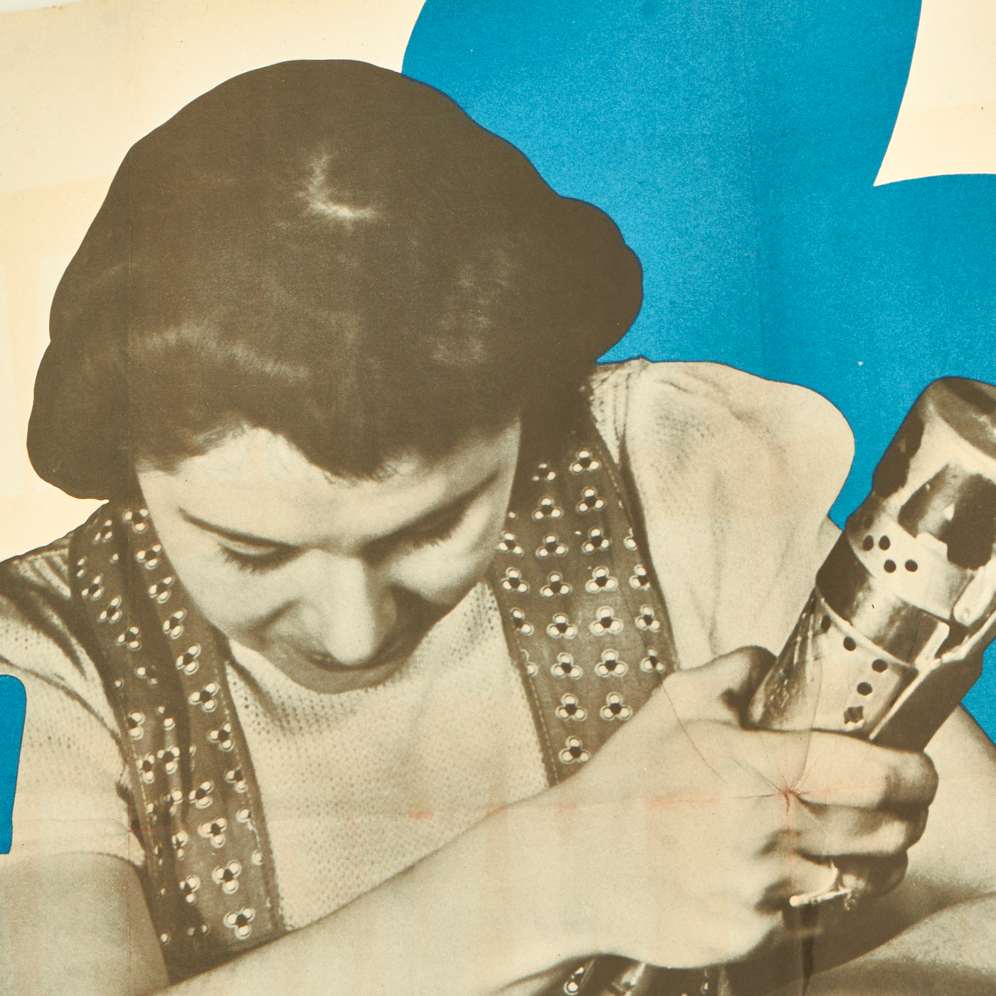 This is a lovely Second World War poster promoting women in the wartime workforce, produced in 1942 by the War Manpower Commission. At the time, “Women in the War” was one of the most widely distributed images of a woman laboring in war production, unlike the “We Can Do It” poster, which was produced only for Westinghouse plants during a few weeks in 1943 and did not become iconic until the 1980s.