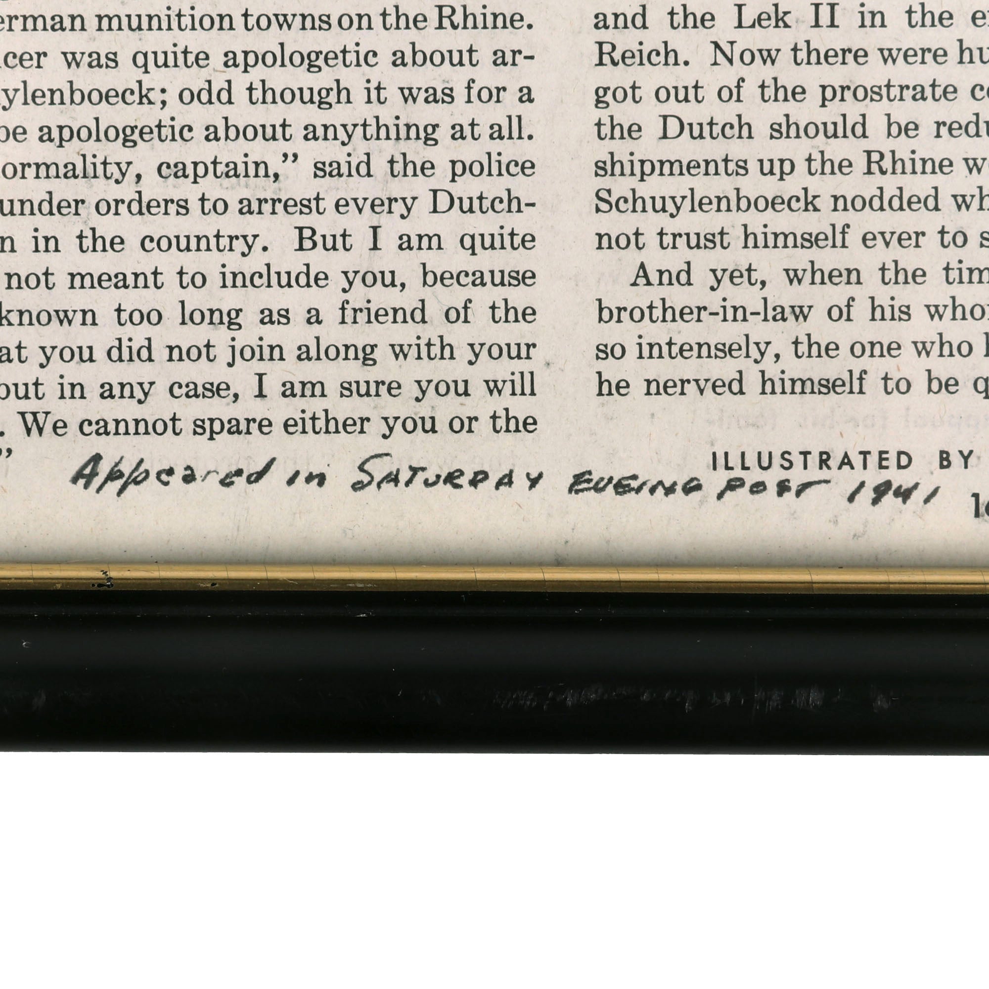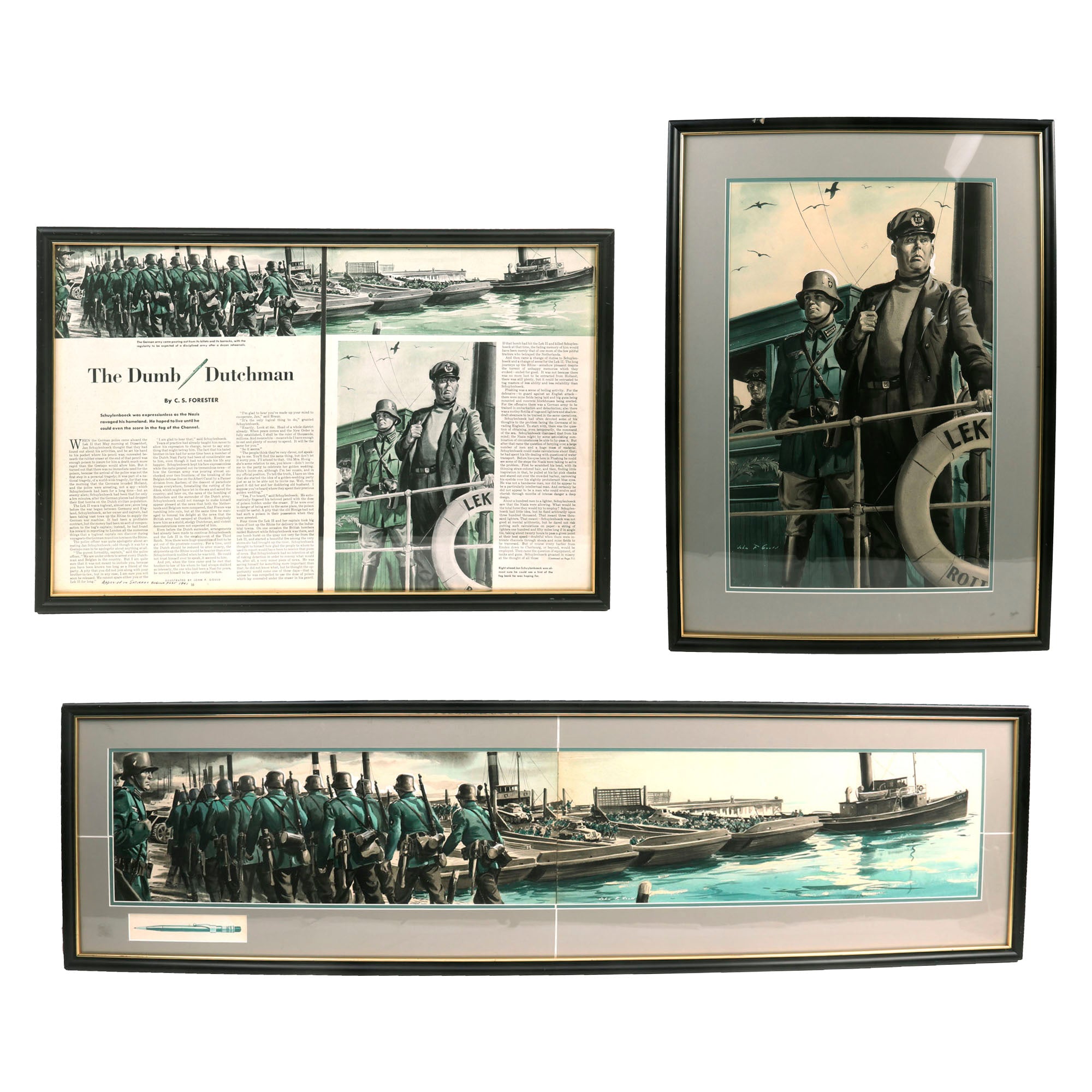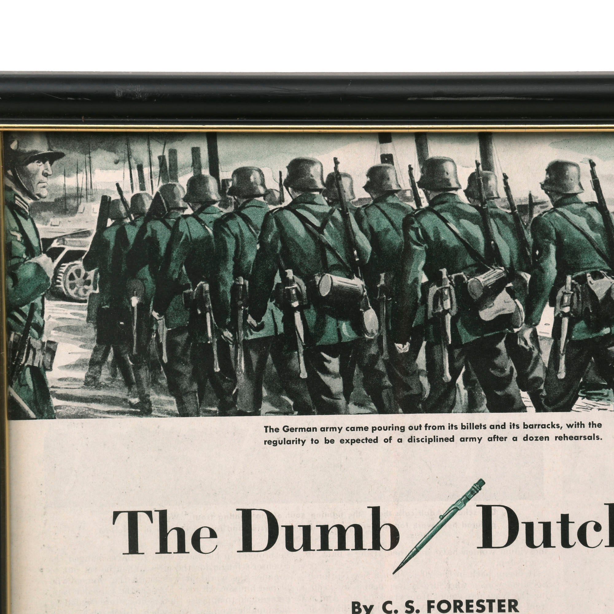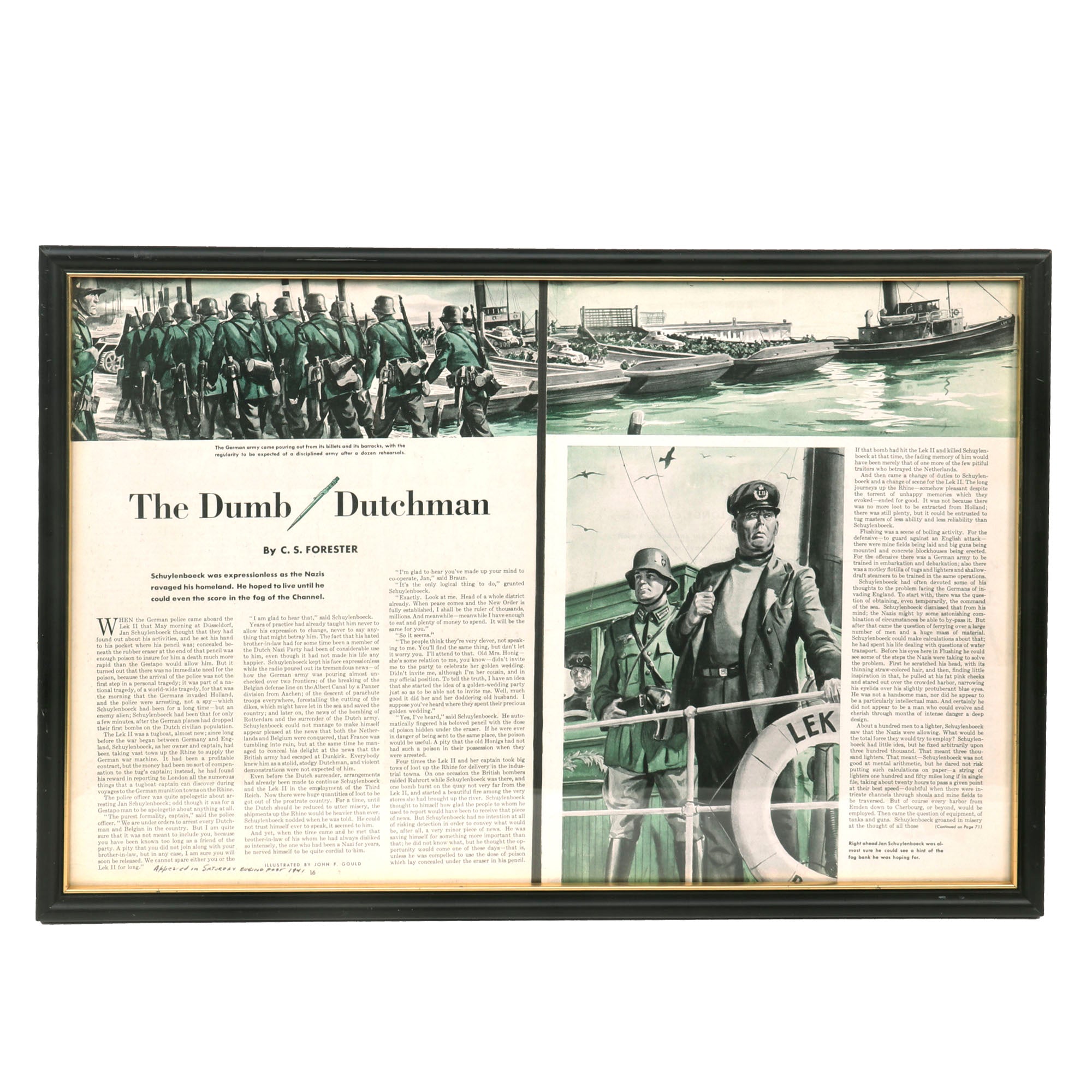 Original Items: Only One Set Available. We are thrilled to share with you an extraordinary discovery - an original article from The Saturday Evening Post, Volume 214, Number 2; July 11, 1942, a short story titled "The Dumb Dutchman". This article is a fascinating piece of history, capturing the spirit of the times during the World War II era and the comedy that ensued. What makes this find remarkable is that it comes complete with the original watercolor artwork used in the magazine - a stunning and vibrant illustration that brings the story to life. The artwork and article are beautifully framed together, creating a stunning display that is sure to impress any collector. It's truly a once-in-a-lifetime opportunity to own a piece of history with such a unique and fascinating story.