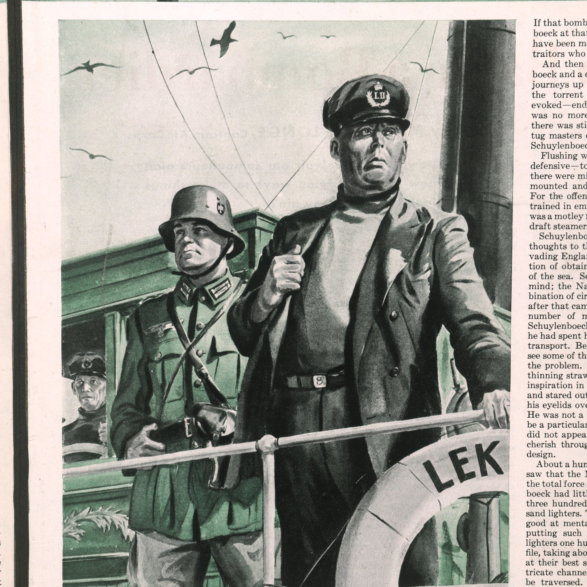 The Lek II was a tugboat, almost new; since long before the war began between Germany and England, Schuylenboeck, as her owner and captain, had been taking vast tows up the Rhine to supply the German war machine.