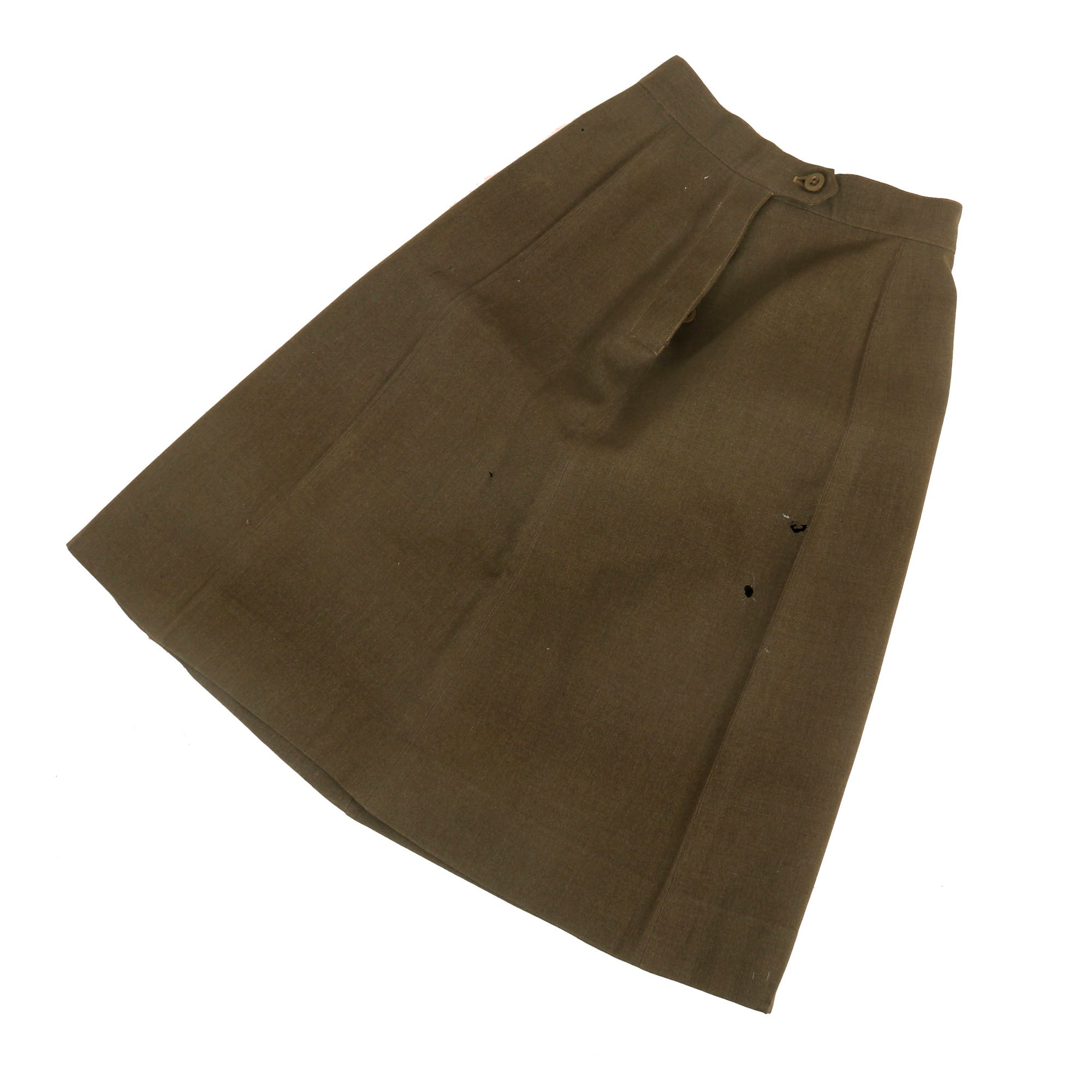 - 3 Female Olive drab skirts, two of which are British Made with 1944 dated tags, one featuring a broad arrow. One by Polikoff, another by Steinberg & Sons.