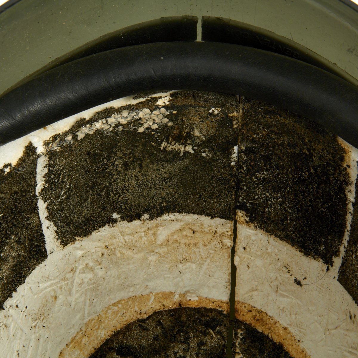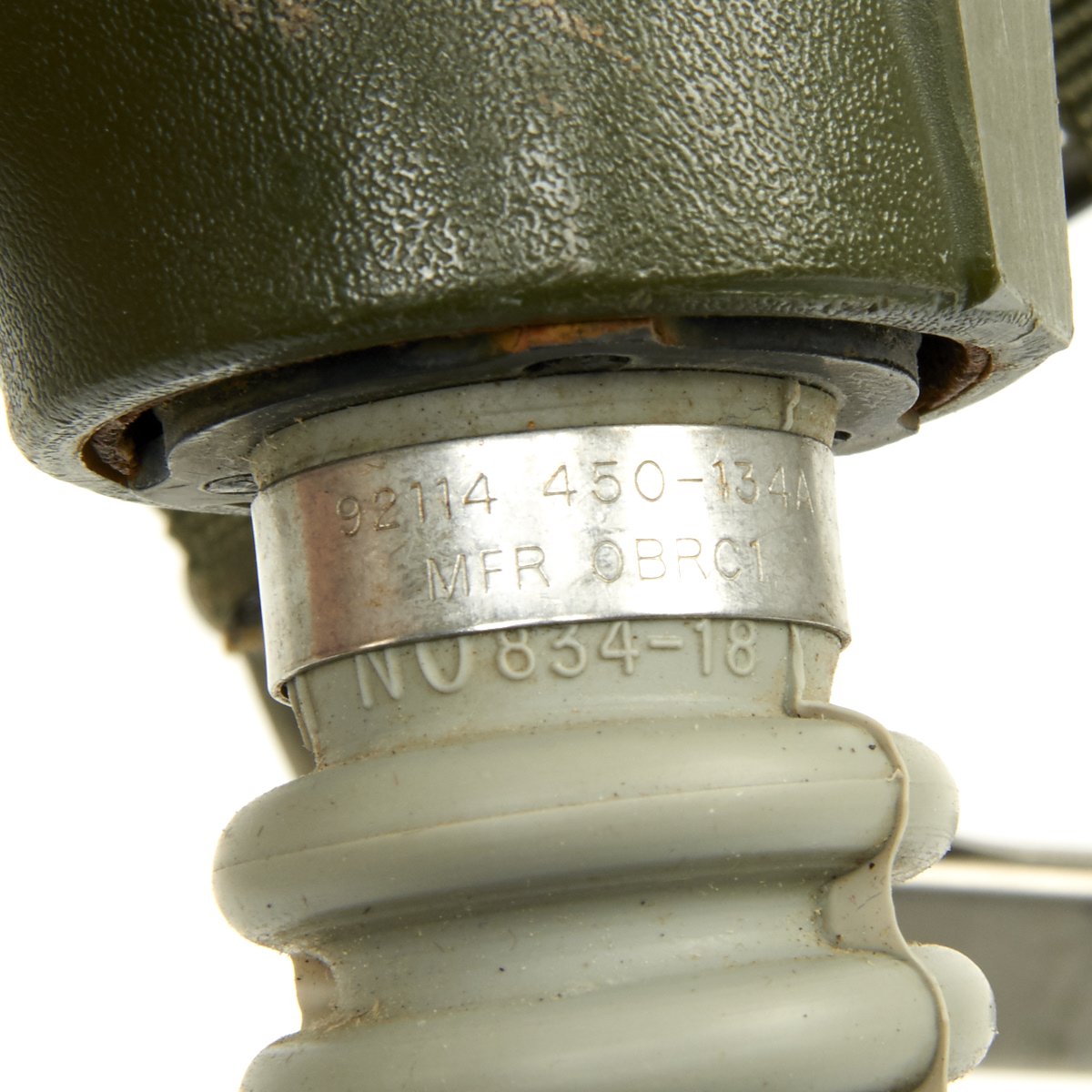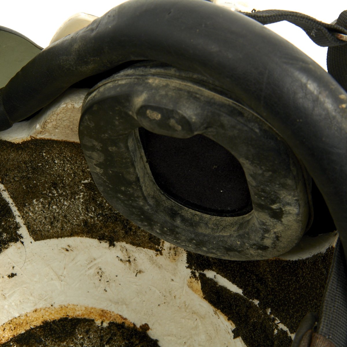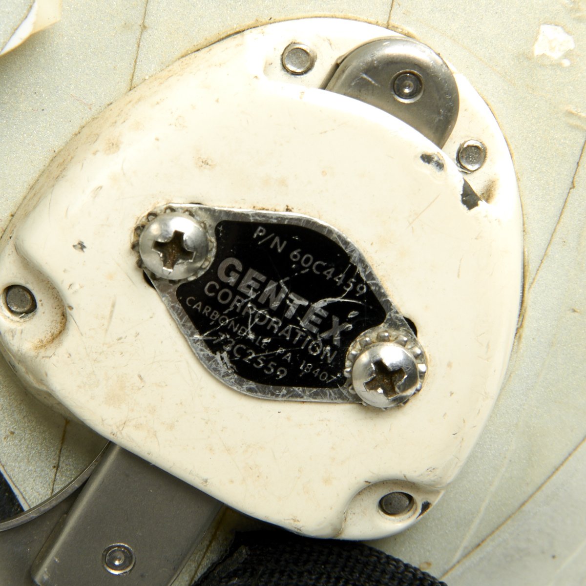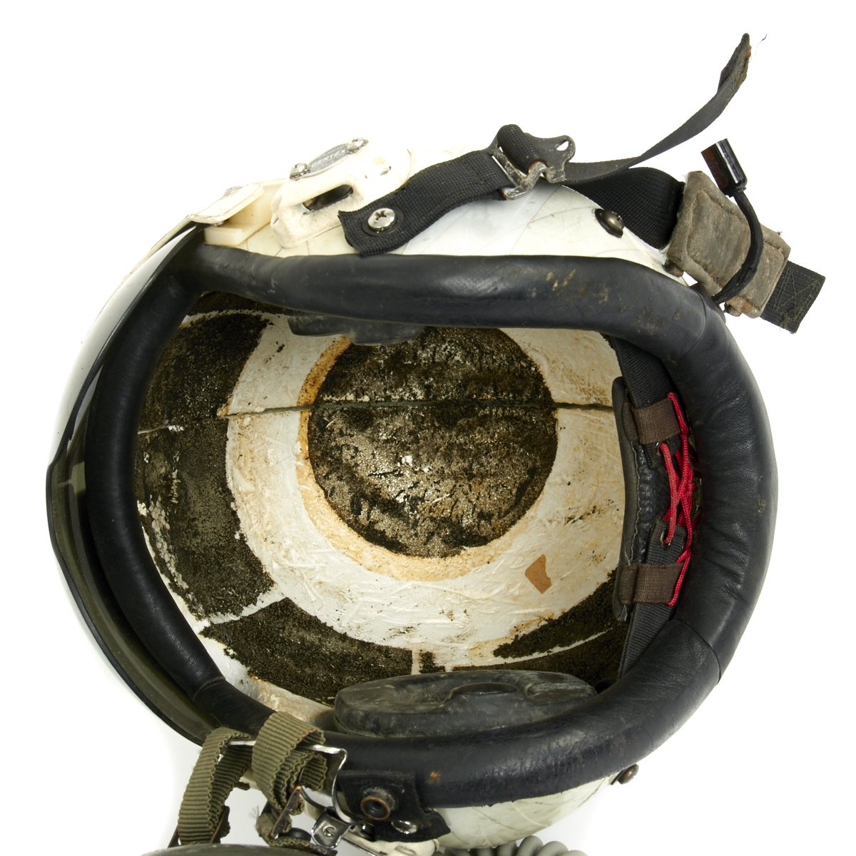 Original Items: Only One Available. This is a nice condition genuine 1980s era U.S. Navy Aviator size medium HGU-33/P flying helmet that comes with ear phones, high altitude oxygen mask and tinted visor. This is the same model helmet that was used in the Tom Cruise film Top Gun. It was manufactured by Gentex and bears multiple data plates as well as classic reflective tape, a rooster insignia and and an F-14 Tomcat on the side of the helmet.