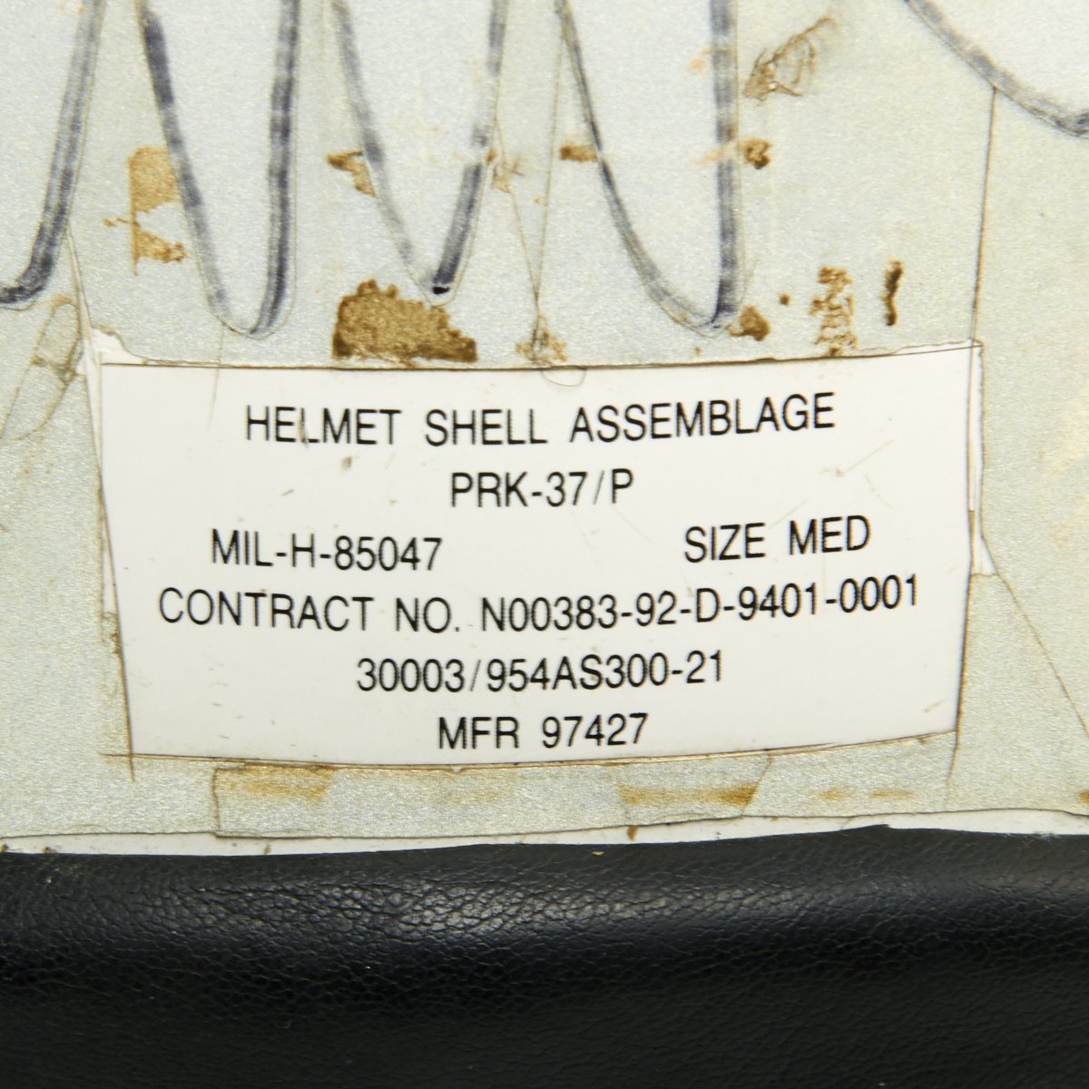 The U.S.N. HGU-33/P flight helmet was designed as lightweight replacement to the APH-6 series. The HGU-33/P is based on the PRK-37/P shell assembly constructed of fiberglass cloth molded with epoxy resin. A foam edge roll around the periphery is covered in black leather. The standard HGU-33/P uses the VTEC form fit liner and the EEK-4 A/P visor assembly. The helmet incorporates the communication system with H-87B/U earphones and external oxygen mask receivers.The HGU-33/P and 34/P are identical except for the inner liners. The HGU-33/P uses a form fit liner v.s. a styrofoam liner in the HGU-34/P. These helmets were utilized with the NAVY oxygen mask MS22001, MBU-14, 15, 16, 17 but the US NAVY version of MBU-5/P were sometimes also used by U.S.N. pilots during the 70's. MS22001, MBU-14, 15, 16, 17 but the US NAVY version of MBU-5/P were sometimes also used by U.S.N. pilots during the 70's and early 1980's.