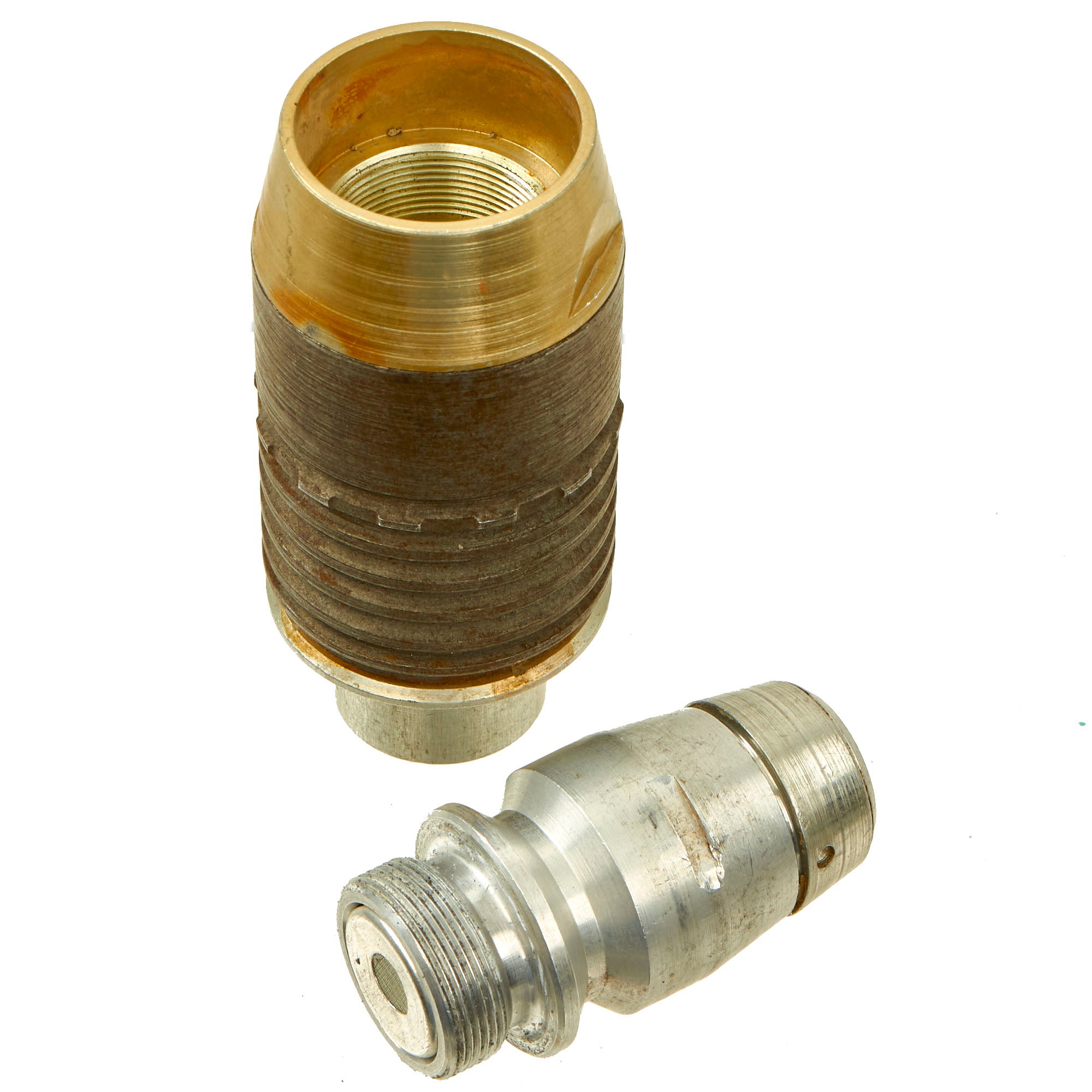 This example appears to retain all components apart from the explosive content. It can be fully disassembled for inspection. The grenade shows a bit of light oxidation on the exterior, but is otherwise in excellent condition. Ready to add to your collection and display!
