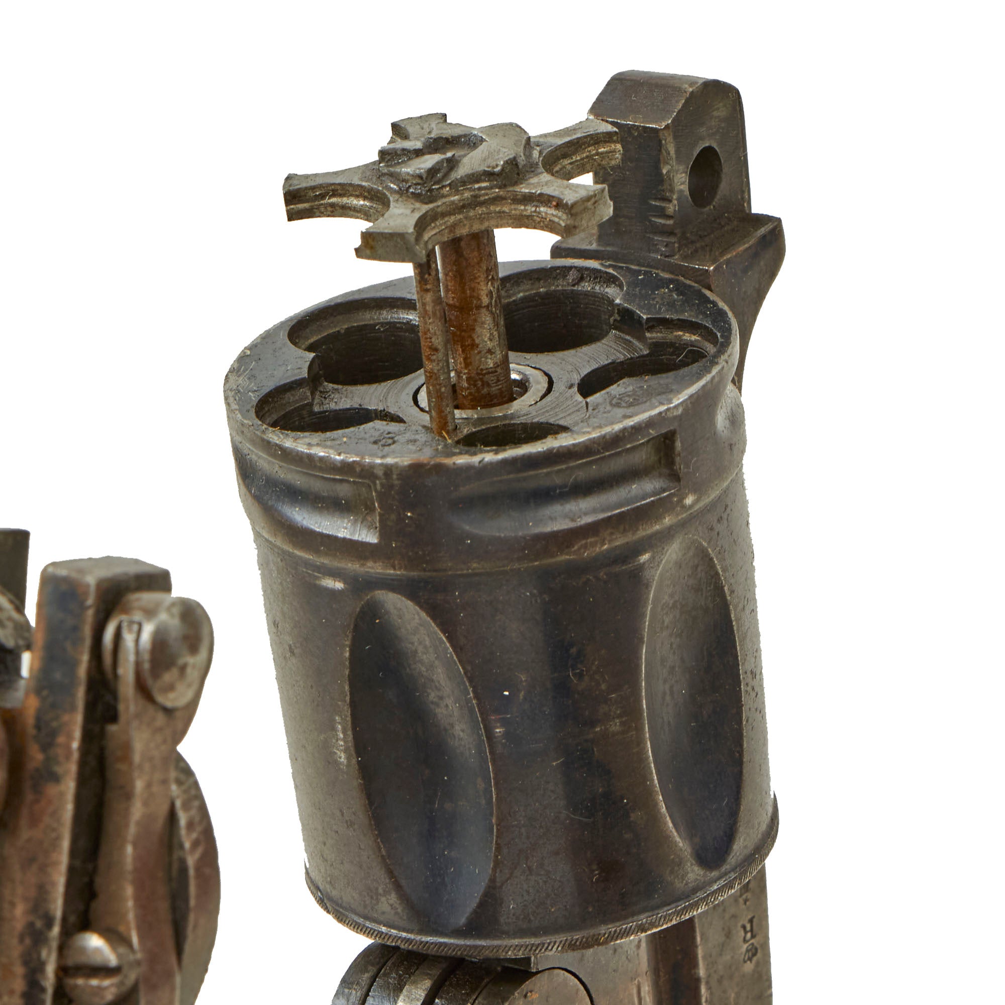 These antique guns are not sold in "live" condition, and are not tested for the the ability to feed or load any type of cartridge. They are sold as collector's items or as "wall hangers" not for use, and we make no guarantees regarding functionality aside from what is stated in the description. Any attempt at restoring an antique gun to be operational is strongly discouraged and is done so at the risk of the customer. By purchasing an antique gun from IMA you thereby release IMA, its employees and corporate officers from any and all liability associated with use of our Antique guns.