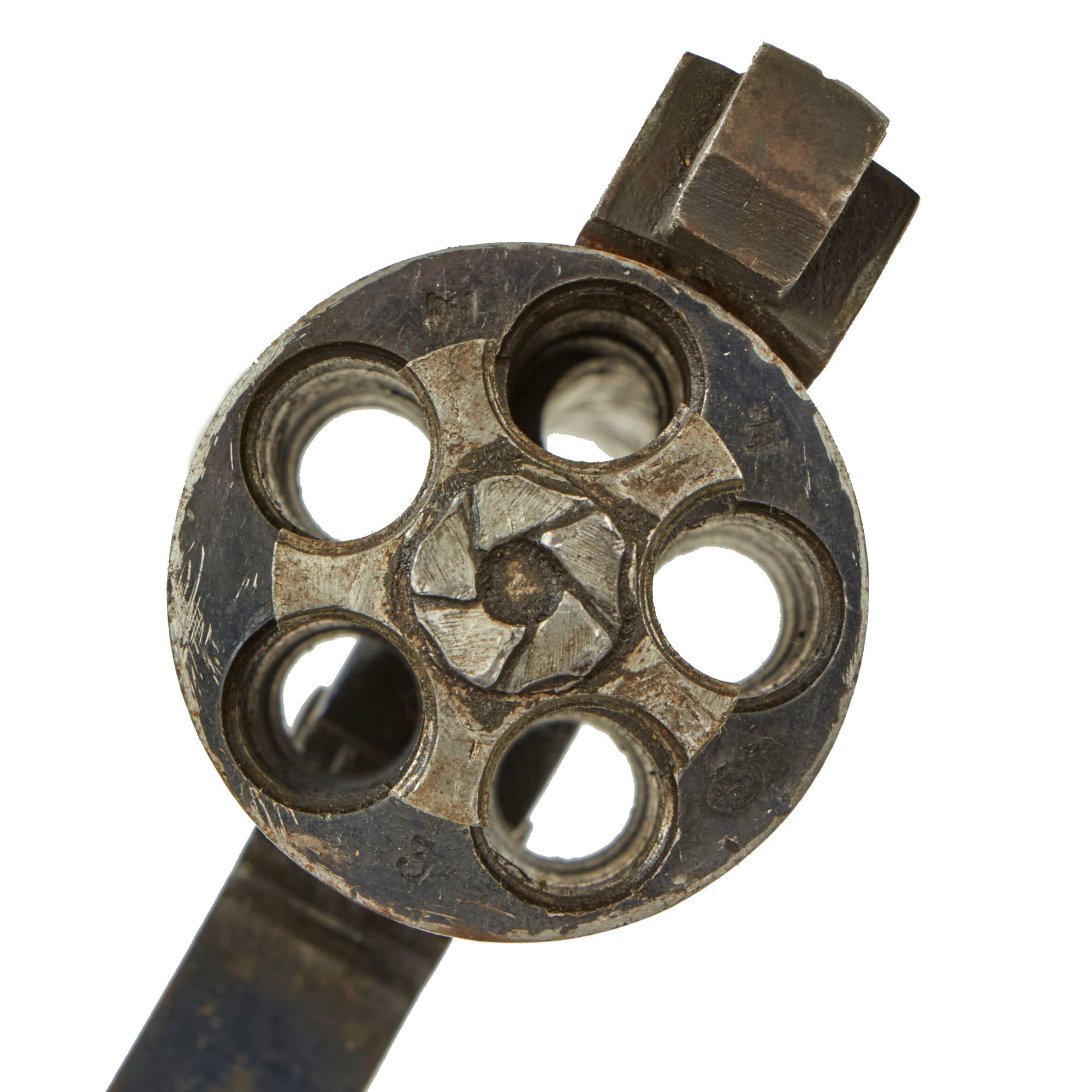 This wonderful revolver would have been appropriate for many of the late 19th Century Wars in the British Empire, or possibly for use on the American Frontier. Soon after this revolver was made, smokeless powder was introduced, which revolutionized firearms design, making revolvers like this a thing of the past. Ready to research and display!