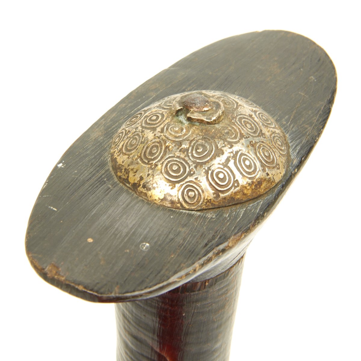 For years this sword has been on display next to it's scabbard rather than in it resulting in it being best left that way due to the leather shrinking. A very interesting unique design of blade from the Eastern Horn of Africa.