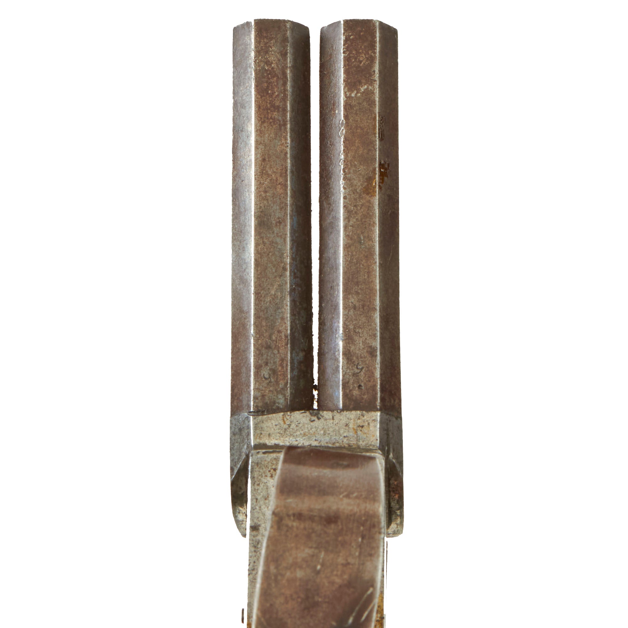 Condition of the pistol is very good, still showing a good amount of bluing on the barrels, with the designs on the frame still well retained. As expected, there is some powder burn around the cap nipple cones, both of which look to be original. Both hammers will cock and dry fire, but only the right side will hold correctly at the half cock position.