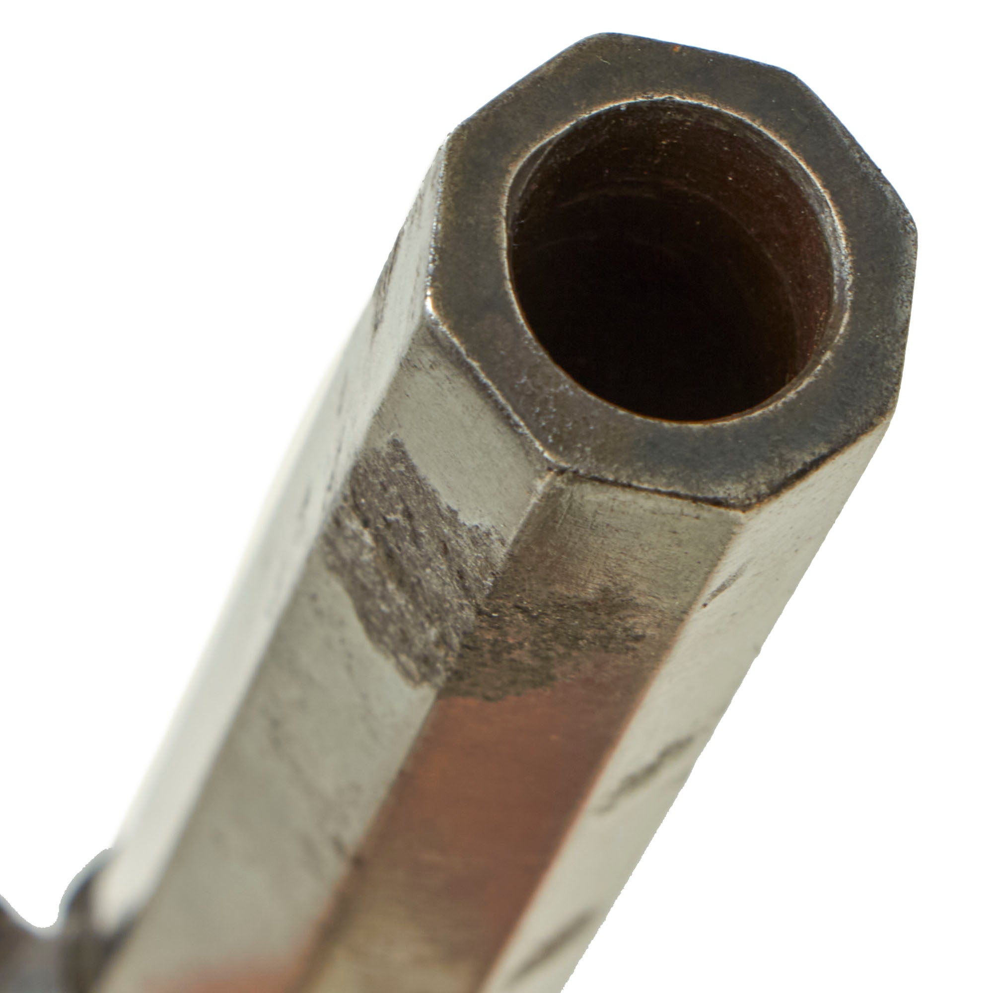 Condition of the pistol is very good, looking to have been blued at some point, which was definitely long ago. Since then the finish has worn in areas, and there is a bit of surface oxidation near the muzzle of the barrel, particularly on the right side. The lock is functional, however it will fire at both half or full cock with a strong trigger pull. The bag grip shows only light wear, with a few small dents and dings, and it looks to have been refinished relatively recently.