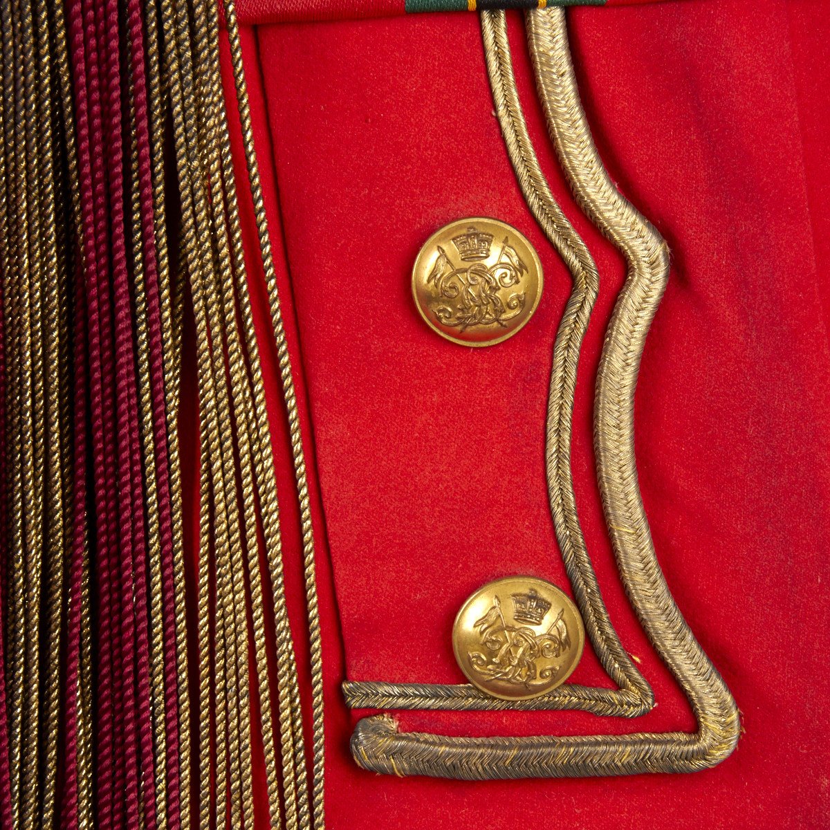 This uniform dates from as early as the 1890s with updating, after the death of Queen Victoria in 1901, with "King's Crown" buttons. It no doubt saw service at Lord Curzon's Great Durbar for the newly Crowned King Edward the Seventh and Queen Alexandra during their official visit to India in 1903 when all the various Indian Maharajahs gathered to swear fealty to the King of Great Britain, the Empire and Emperor of India.