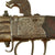 The smoothbore barrels measure about 2 1/2" in length, and look to both be "screw off" types, attached to a rotating breech / cap bolster. However, the screw joints at the breech are now seized. They have 8 notches around the muzzle end for attachment of a tool to unscrew the barrels. Both Barrels are marked on the side with the CROWN / CROSSED SCEPTERS / BPC marking from Birmingham, England, which produced large amounts of material for the London gun market. The pistol features a very nice finely checkered wooden "bag" style grip, which is very comfortable to hold, and has a silver escutcheon on the back.